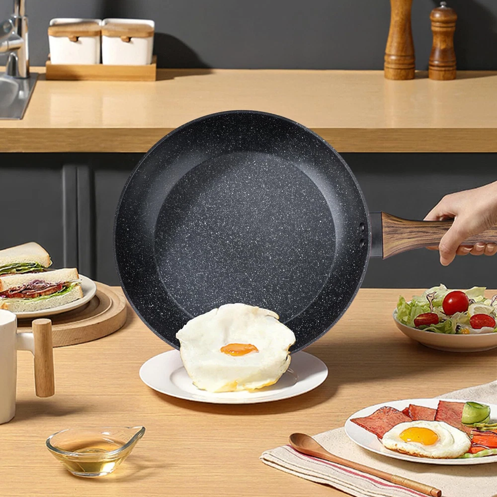 【11 inch Granite Non Stick Coating Frying Pan Skillet】What Is A Good nonstick Pan? Non-stick performance is the key. Compared to other ordinary non-stick pans, 's nonstick set adds 4 layers of non-stick coating, which means that the frying pans can better demonstrate long-lasting non-stick. Less oil or butter for cooking will release the food easily. Ideal for every cooking master. 【4 Layers of Non-stick Coating & Heats Quickly & Evenly】's nonstick set adds 4 layers of non-stick Granite coating, which can Heats Quickly and Evenly with precise temperature control and not hot spot. The Granite frying pan is designed for professional multiple cooking use, pans for cooking, egg pan, cooking pan, omelet pan, sauté pan, egg skillet, induction pan. 【Safety Healthy Cooking】This non-stick pan is pans for cooking with less oil needed and less smoke released. This nonstick frying pan is ideal for healthy cooking, less oil use for healthy diet. Choose Easy chef always Frying Pan for greener and healthier cooking. Our Chef Pan is 100% Free of PFOS, PFOA, PFAS. 【Easy To Clean】With the non-stick Granite coating, there are no more sticky or difficult-to-clean problems. Only by using a soft sponge or dishcloth, you can clear oil stains easily. Please do not use a sharp or pointy brush, which would do harm to the non-stick layer. Besides its wonderful nonstick and quick clean performance, this nonstick cooking pan is dishwasher safe. 【100% Satisfactory 】is happy to listen to what our customers really think, and our policy is to make our customers 100% satisfied with our goods and services. Please feel free to contact us if you have any questions.