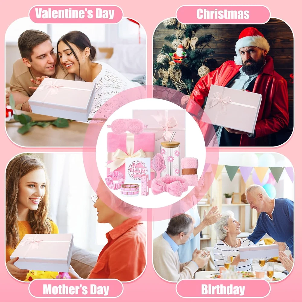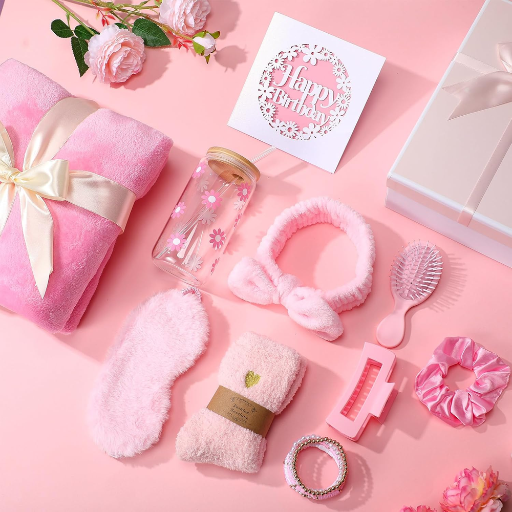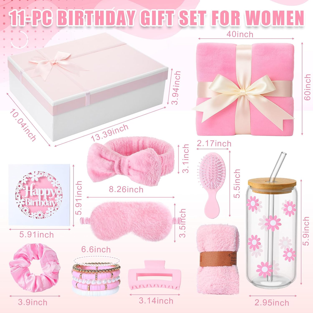 Store New Arrivals Add to Favorite View Feedback Contact Fast deliveries to the customer's home Quality customer service John Make the customers happy! 11 Pcs Birthday Gifts for Teen Girls Women Happy Birthday Gift Set Ideas for Teen Girls Friend Daughter Cute Daisy Aesthetic Glass Cup Gift Basket for Teens Sister Families Women(Pink) Description What You Will Get: this women's birthday gift set includes a 16oz daisy aesthetic glass cups (with bamboo lid and straw), a pair of warm socks, a flannel blanket (about 40x60inch), a Bohemian bracelet, a plush eye mask, a hair clip, a silk hair tie, an air cushion hair comb, a birthday card and a beautiful bow gift box Cute Daisy Coffee Glass: our 16oz daisy-themed glass cup comes with a bamboo lid and straw, suitable for enjoying hot or cold drinks; This durable glass cup withstands temperature fluctuations and is unbreakable Cozy Fuzzy Flannel Blankets: made from reinforced microfiber polyester fabric, they're lightweight yet warm and incredibly comfortable; The blankets feature well-sewn edges and neat stitching, ensuring durability and longevity; They're suitable for both indoor and outdoor use, whether you're on the couch, camping, or traveling Birthday Gift Box: bring joy to your mother, friend, wife, daughter or girlfriend with this carefully curated birthday gift box; Our gift box is filled with beautiful items; Bring joy to her and celebrate her special day by giving her our birthday gift box Ideal Gift for Women: this versatile birthday gift box is suitable for a variety of occasions, not just birthdays, but also everyday gifts, Christmas, Teacher's Day, Valentine's Day, Mother's Day, and more; It's an ideal gift choice Features: Gift Set for Women Thoughtfully curated with 10+ items, this birthday gift box has everything she'll love and actually use, suitable for relaxing at home, enjoying a drink, or pampering herself on her special day. Ready-to-Gift Packaging Comes beautifully packaged in a stylish bow gift box with a birthday card included, no wrapping needed. An effortless yet impressive gift choice for birthdays, holidays, or just because. Specifications: Material: paper, polyester, plastic, glass Color: pink Size: as shown in the picture Package includes: 1 x Glass cup (with lid, straw, and brush) 1 x Flannel blanket 1 x Large hair tie 1 x Plush eye mask 1 x Pair of coral fleece socks 1 x Bohemian-style bead bracelet 1 x Square hairpin 1 x Card with birthday greeting card 1 x Air cushion hair comb 1 x Set of coral fleece absorbent headbands 1 x Bow gift box Notes: Manual measurement, please allow slight errors on size. The color may exist a slight difference due to different screen displays Item model number BS--4623 Color Pink Set Name Birthday Gift Box for Women Product Dimensions 13.39 x 10.24 x 5.12 inches Product Benefits Hydrating, Soothing Item Weight 2.99 pounds Scent Unscented Size as shown ABOUT US We offer the best prices around on high quality products. Our E-store includes media such as books, movies, music and games while offering electronics, toys, sporting apparel, clothing, tools, general home, garden items and more. SHIPPING We are always working hard to ensure your package arrives as soon as possible. Please understand that some factors like weather, high postal traffic, and the performance of shipping companies are outside of our control. We offer free shipping to the lower 48 states and ship within 2 business days of payment, usually sooner. We do not accept P.O. Boxes. Please provide a physical address. For shipping outside of the continental USA, we only use eBay's Global Shipping Program. The item is shipped to KY and then sent to the rest of the world. International customers are responsible for all duties and taxes. Continue to 'check out' to calculate costs for shipping the item to your country. Messages regarding eBay's Global Shipping Program MUST be directed at eBay EXCLUSIVELY. RETURNS We offer a 30-Day Return Policy on items in which you are not completely satisfied with. You have the option of a full-refund or an exchange of the item. No returns are available on items shipped outside of the USA PAYMENT We accept PayPal. CONTACT US This page content is yet to come Please ad us to your favorite seller and visit again later Thank You CUSTOMER SATISFACTION We try our very best to make sure every customer is completely satisfied. If there's a problem, message us! We're happy to help. WE ACCEPT