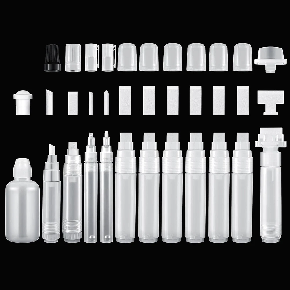 11 Pcs Refillable Paint Pen 6mm 3mm 8.5mm 10mm 15mm 30mm Blank Acrylic Graffi...