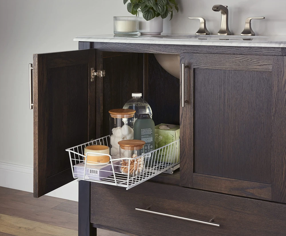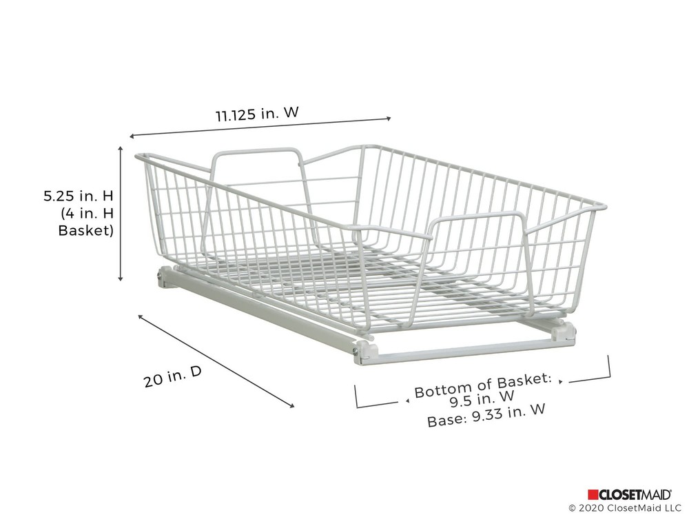 Product Description offers a complete line of cabinet organizers that make items easily accessible - even items hidden way in the back. Now, the contents are easy to see, easy to use, easy to put away. With these easy add on cabinet organizers, you can organize your kitchen or bathroom cabinets in no time. Designed to easily install to base cabinets with the included hardware, you can choose from one- or two-tier options to organize pots, pans, food items, cleaning supplies, towels, toiletries, pet supplies & more. With the easy glide system, you’ll be able to access your items with a quick pull and easily push the basket back in. The durable epoxy coated steel construction offers strength to store a large variety of options. You can also choose from white or nickel finish options to fit your home’s décor. All hardware is included to install these add on cabinet drawers to add organization to your home! From the Manufacturer Innovative, easy glide system SPACE SAVING ORGANIZER: Slide out cabinet organizer for base cabinets in your kitchen, pantry, bathroom, or laundry room to make your items easier to access ADD ON CABINET DRAWER: Organize and access pots, pans, toiletries, cleaning supplies, towels, small kitchen appliances & more to existing base cabinets: COMPATIBLE WITH cabinets with a 12 in. or wider opening EASY GLIDE SYSTEM: Innovative design with an easy, smooth glide system making it even easier and quicker to access your stored items DURABLE DESIGN: Strong epoxy coated steel to accommodate multiple items EASY TO INSTALL: All hardware included for assembly & easy installation to base cabinets; Measures approximately 4.875" H x 10.875" W x 20" D assembled