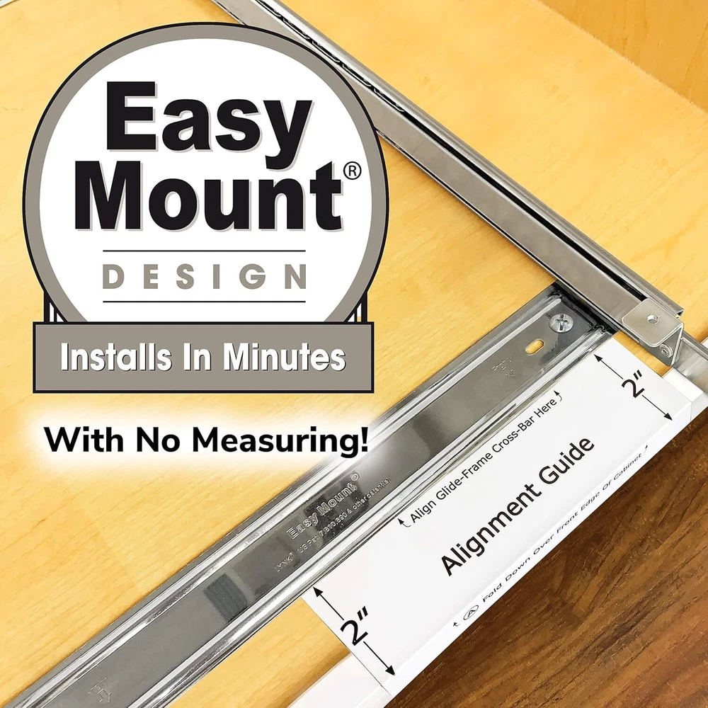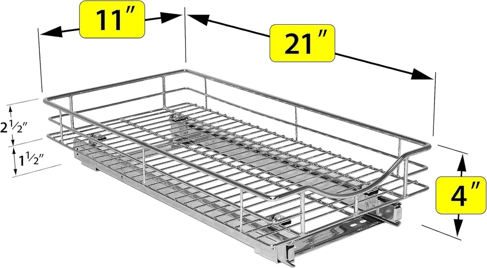 Product Description ® Pull Out Cabinet Organizer, 11" x 21" Slide Out Drawers for Kitchen Cabinets - Sliding Pull-Out Pantry Shelves – Home Shelf Organizers - Lifetime Ltd. Warranty, Chrome MAKE YOUR LIFE EASIER FEELING LIKE A PROFESSIONAL COOK with the joy of having everything at your fingertips UNRIVALED STRENGTH! - our unique PROGLIDE system uses commercial glides underneath the drawers with reinforced cross bars for supporting the heaviest weight, eliminating sagging and bending - also, placing glides under the drawers, and not on the sides, maximizes every inch of your valuable cabinet space while providing a sleek and seamless look PATENTED PROGLIDE HEAVY-DUTY BALL BEARING GLIDE SYSTEM is manufactured to our rigorous specifications, guaranteeing you smooth sliding every time even under extreme loads - THERE IS NO SUBSTITUTE! - polished metal wire and a brilliant anti-rust chrome finish engineered to industrial standards, giving you professional quality for your home with unparalleled durability, backed by a LIFETIME LIMITED WARRANTY - warranty provided by SETUP IS A BREEZE! - OUR CLEVER ALIGNMENT GUIDE DOES ALL THE WORK FOR YOU - our patented EASY MOUNT design requires no measuring and installs in minutes About Us We are a reputable seller with many years of experience selling on eBay. Our goal is to provide high-quality products and excellent customer service. Shipping Items will be shipped within 1-3 business days when we received payment. (Orders are not processed on weekends & holidays) Tracking information will be sent once item is shipped. Delivery time depends on destination and other factors Item is shipped to ebay address. Leaving correct address can minimize delay. For international shipping and shipping to Guam, Hawaii and Alaska, Please contact us before placing the order. International buyers please note: Import duties, taxes and charges are not included in the item price or shipping charges. These charges are buyer’s responsibility. We will try our best to reduce the risk of the custom duties. Local pick-up is unavailable at the moment. Contact Us We reply any email messages within 1 business / working days(off-duty at weekend). If you do not get a response from us, then please check your junk or spam mailbox. Our Business hours: Mon-Fri 9:00-18:00, UTC/GMT +8 hours. Please contact us either by clicking "contact seller" in the "purchase history" section or simply click "ask a question" at the bottom of this page. If you are unsatisfied with our item or service, please contact us before leaving any feedback. We are committed to resolve all issues in a friendly and satisfactory manner.