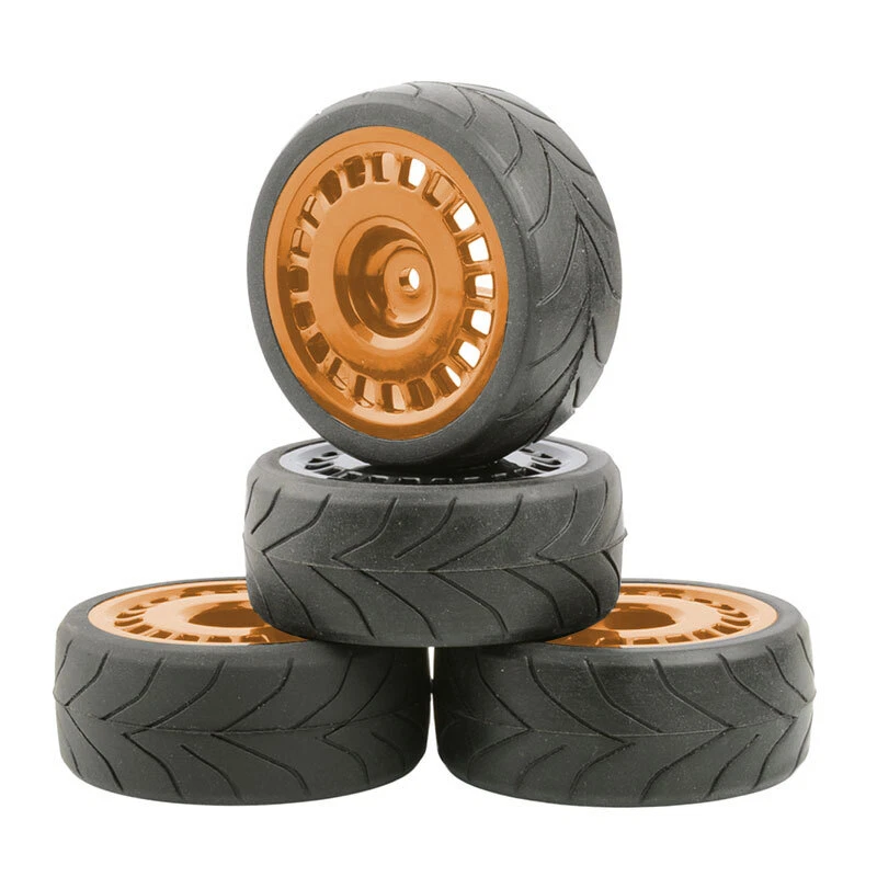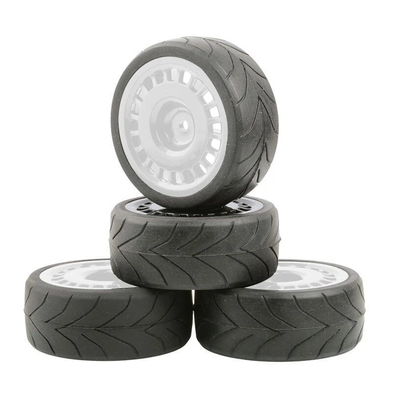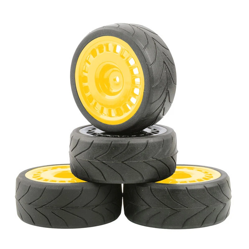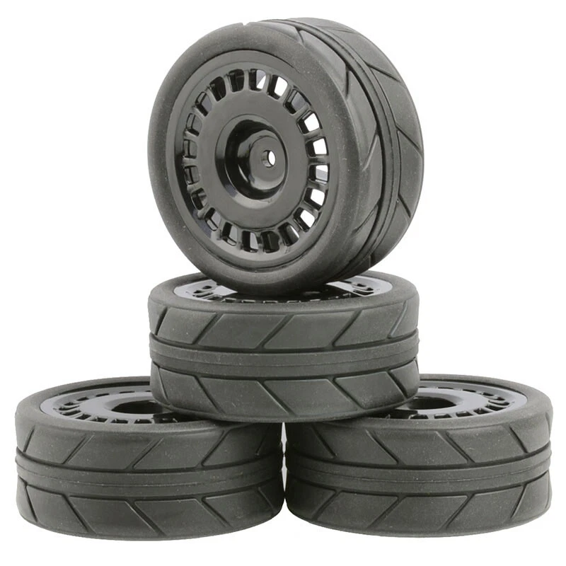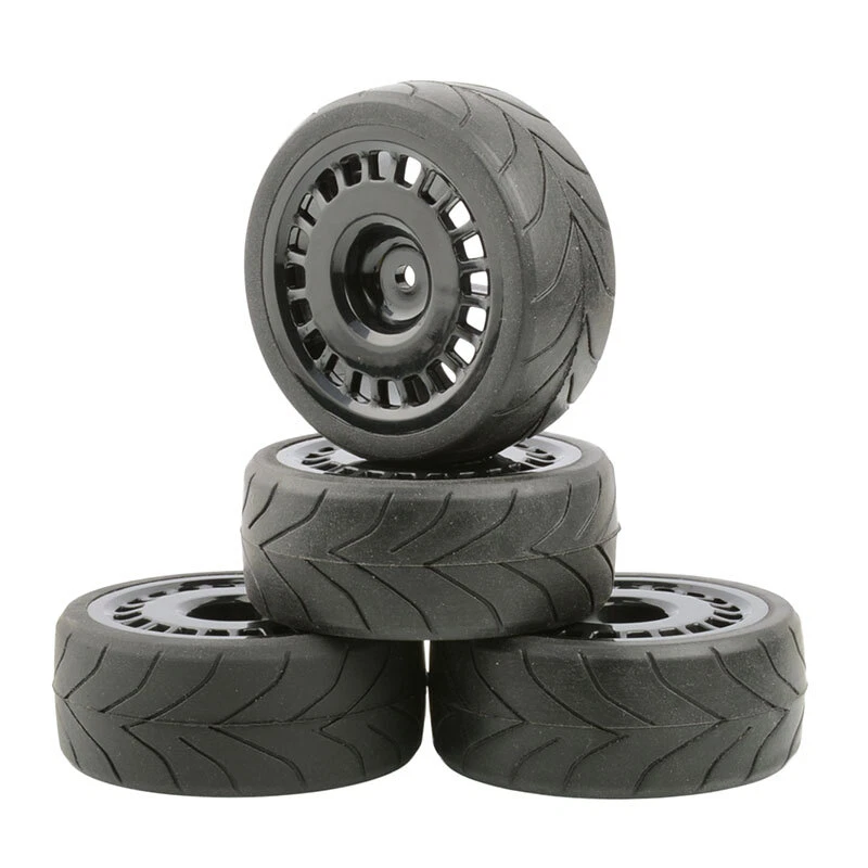 O ne set (4 pieces) onroad 1/10 rc car rubber tires with plastic rims. SPECS: Plastic Wheels / Rubber Tires Rubber Tires Diameter: 64mm / Width: 26mm Wheel Diameter: 52mm / Width: 26mm Wheel Hex Drive: 12mm Offset: 3mm Will fit 1:10 scale on road touring cars with 12mm hex. High quality soft rubber tires. Wheels and tires are not glued together. Condition: New NOTICE: The wheels and tires are not stuck together, and must be glued before use. Please check the tire size carefully before purchase, and make sure that it is shared with your model car before payment, so as not to load your model car and return it, thank you, I wish you a happy shopping!
