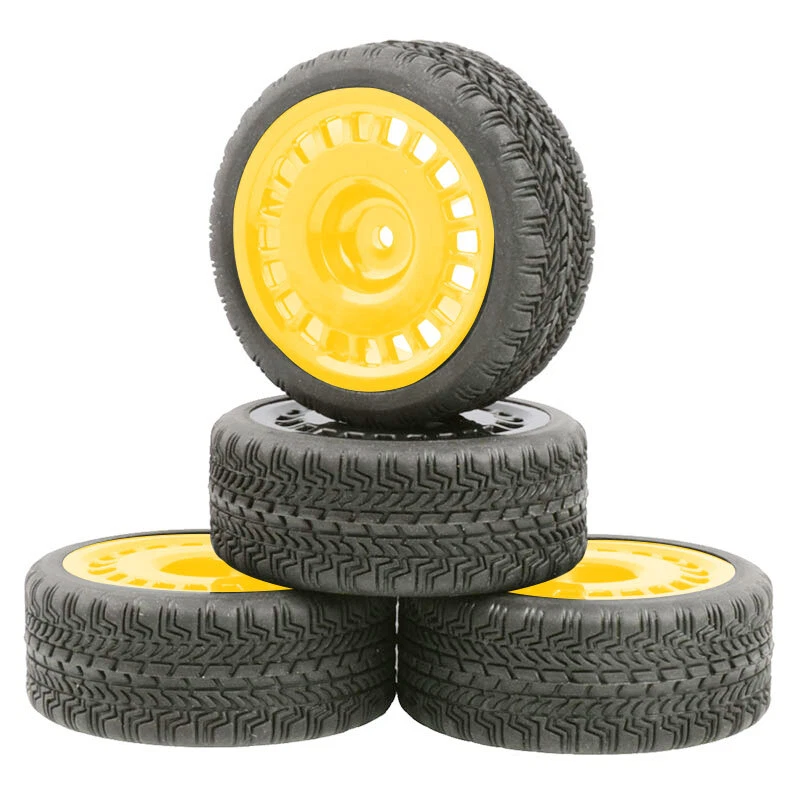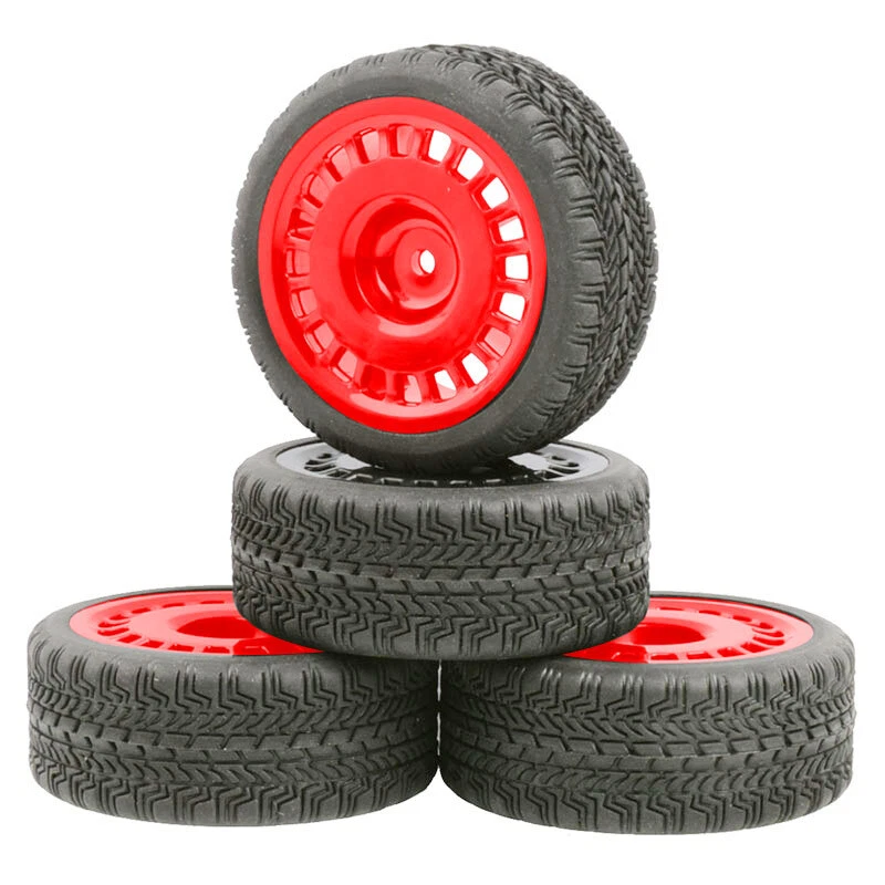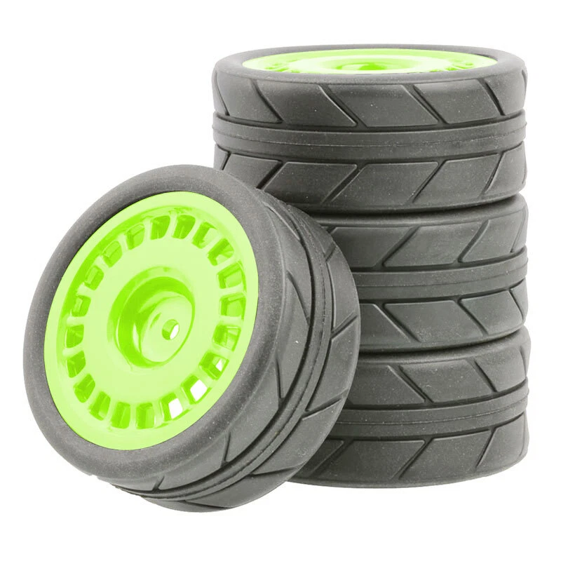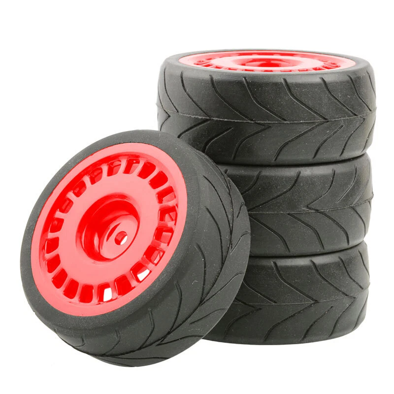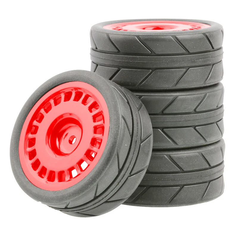 O ne set (4 pieces) onroad 1/10 rc car rubber tires with plastic rims. SPECS: Plastic Wheels / Rubber Tires Rubber Tires Diameter: 64mm / Width: 26mm Wheel Diameter: 52mm / Width: 26mm Wheel Hex Drive: 12mm Offset: 3mm Will fit 1:10 scale on road touring cars with 12mm hex. High quality soft rubber tires. Wheels and tires are not glued together. Condition: New NOTICE: The wheels and tires are not stuck together, and must be glued before use. Please check the tire size carefully before purchase, and make sure that it is shared with your model car before payment, so as not to load your model car and return it, thank you, I wish you a happy shopping!