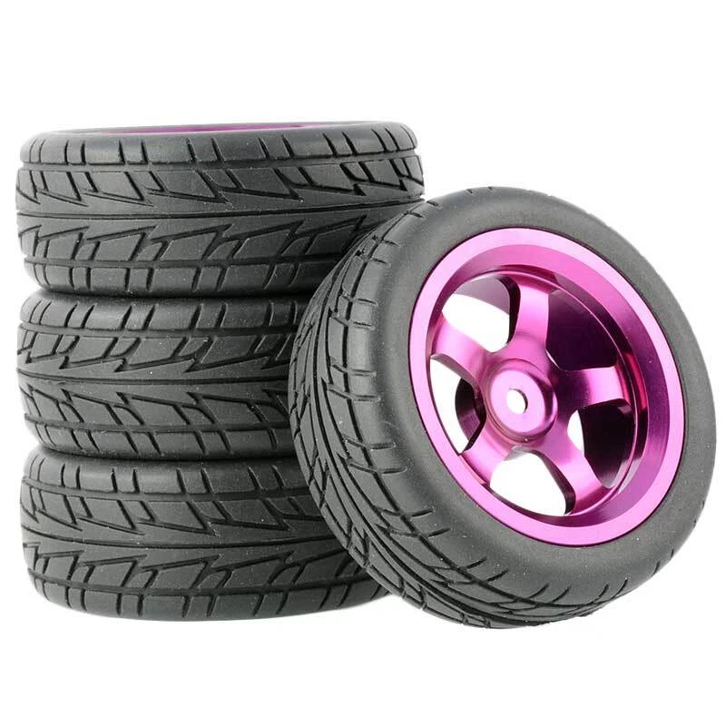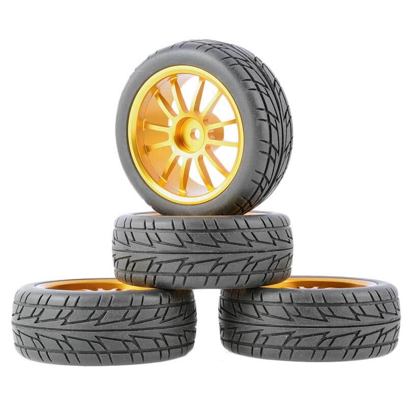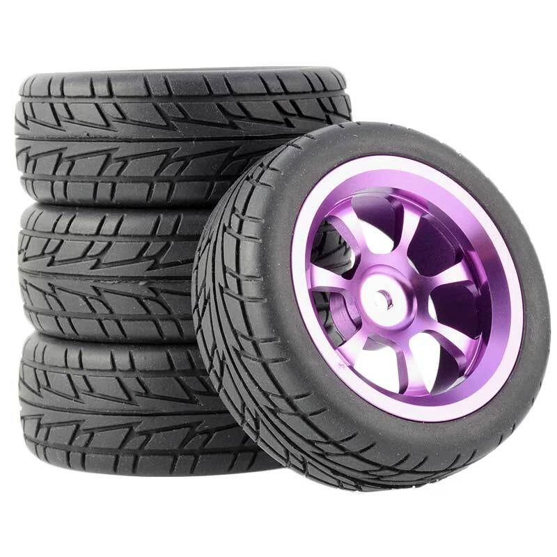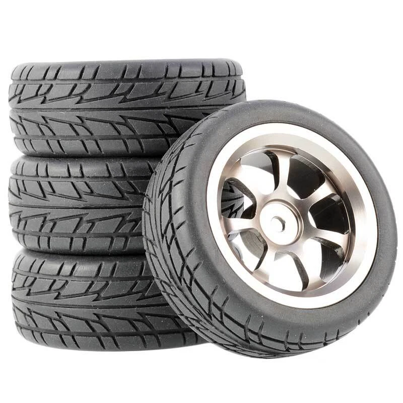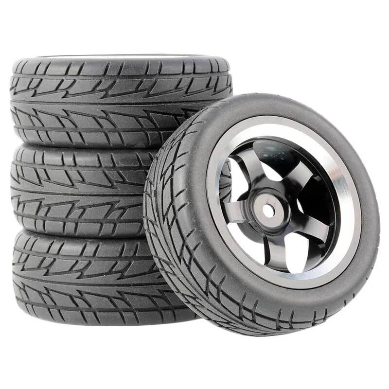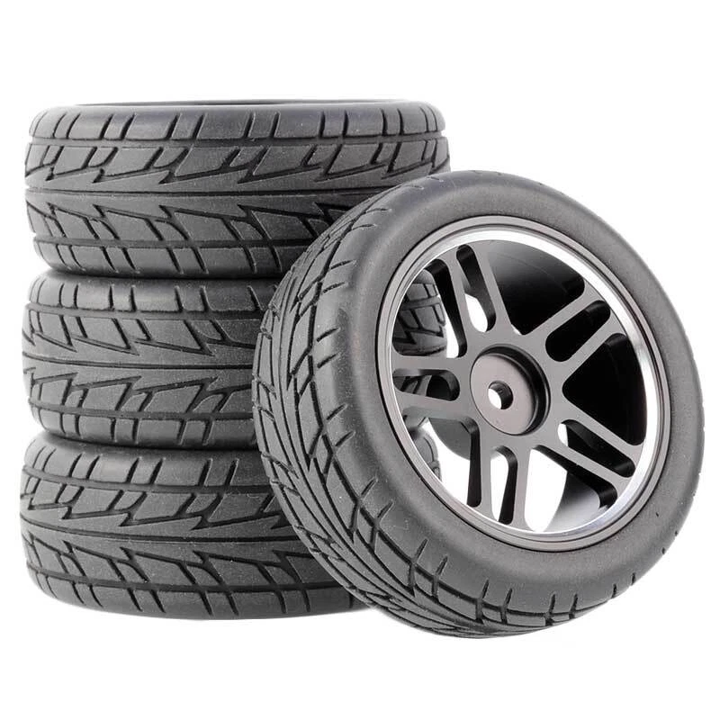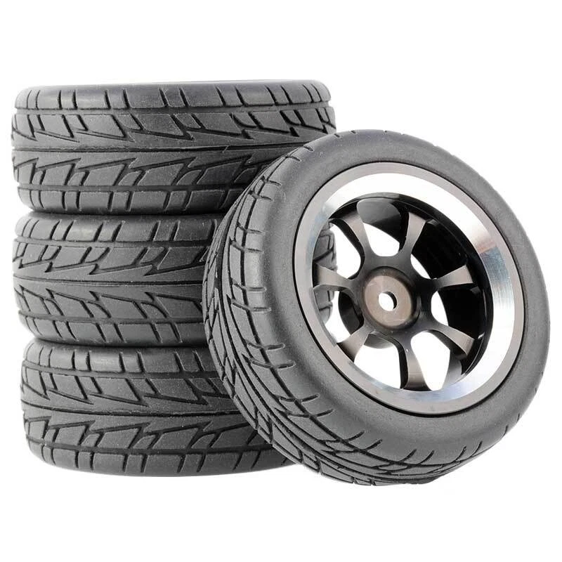 Rc Car Aluminium Alloy Wheels and rubber tires. SUPER DURABLE, NOT LIKE THE PLASTIC ONE, IT IS FULL METAL! Will fit 1/10 onroad rc cars. Specifications: Wheels Material:Aluminum alloy Rubber tires Tyre Diameter: 65 mm Wheel Rim Drive Hex: 12mm Tyre Diameter: 65 mm Tyre Width: 26mm Package includes: 4 x RC Wheelw and rubber tires NOTICE: The wheels and tires are not glued together and must be glued before use. Please carefully check the tire size before purchase, whether it is the same as your model tire size, and confirm it again before payment, so as not to return the refund, thank you, wish you a happy shopping.
