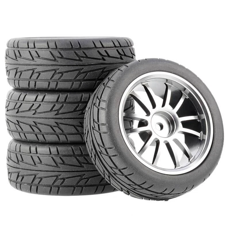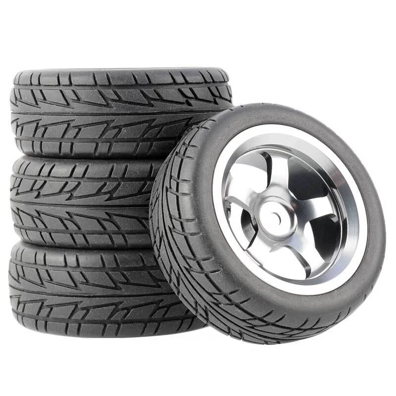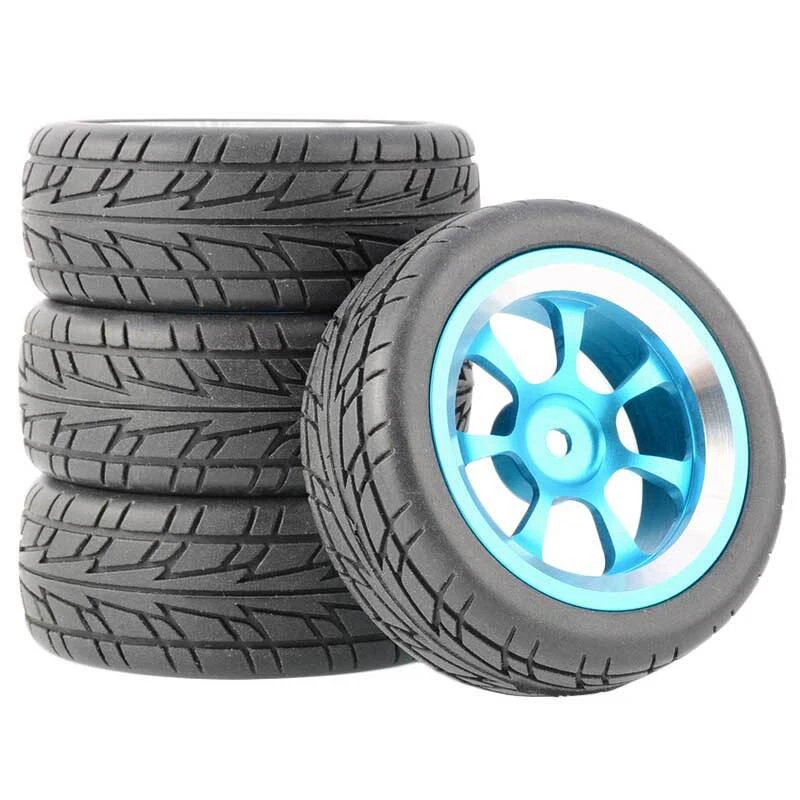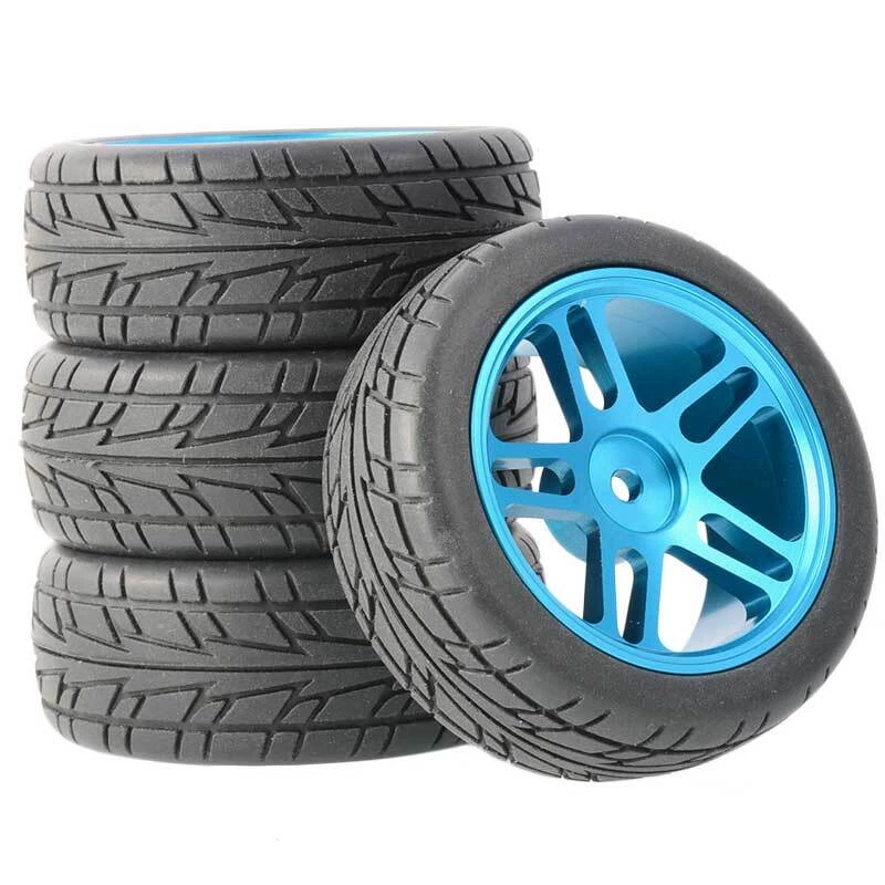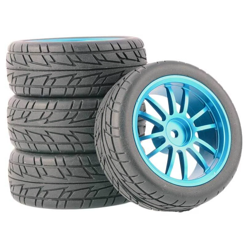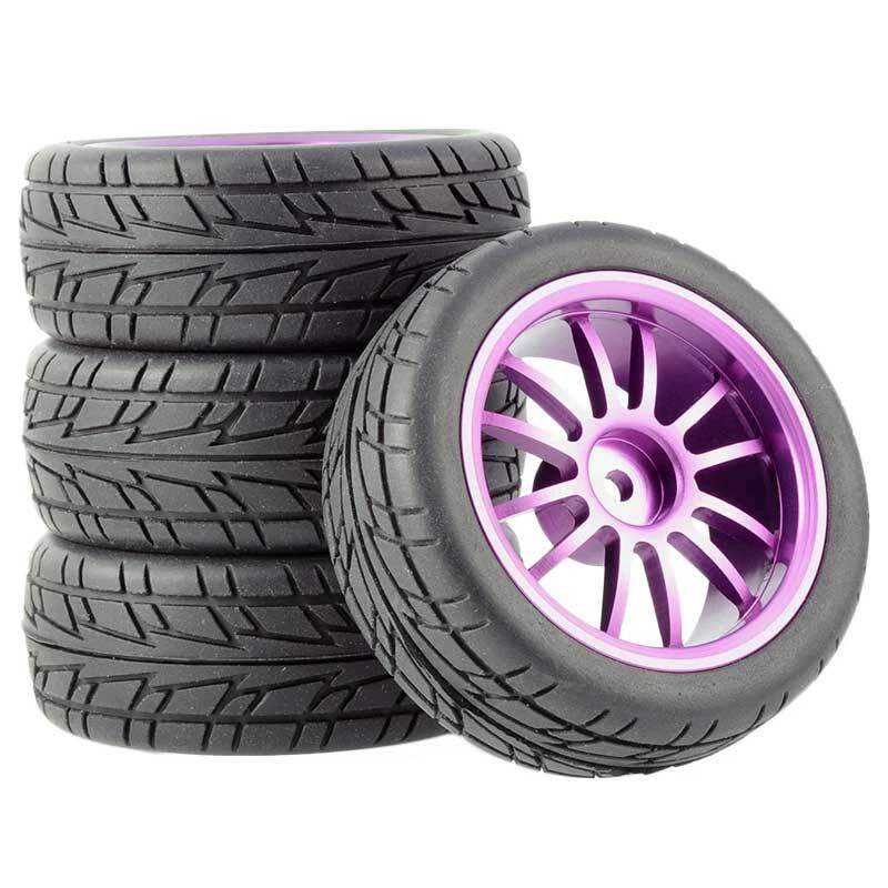 Rc Car Aluminium Alloy Wheels and rubber tires. SUPER DURABLE, NOT LIKE THE PLASTIC ONE, IT IS FULL METAL! Will fit 1/10 onroad rc cars. Specifications: Wheels Material:Aluminum alloy Rubber tires Tyre Diameter: 65 mm Wheel Rim Drive Hex: 12mm Tyre Diameter: 65 mm Tyre Width: 26mm Package includes: 4 x RC Wheelw and rubber tires NOTICE: The wheels and tires are not glued together and must be glued before use. Please carefully check the tire size before purchase, whether it is the same as your model tire size, and confirm it again before payment, so as not to return the refund, thank you, wish you a happy shopping.
