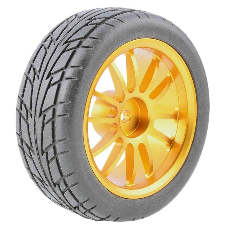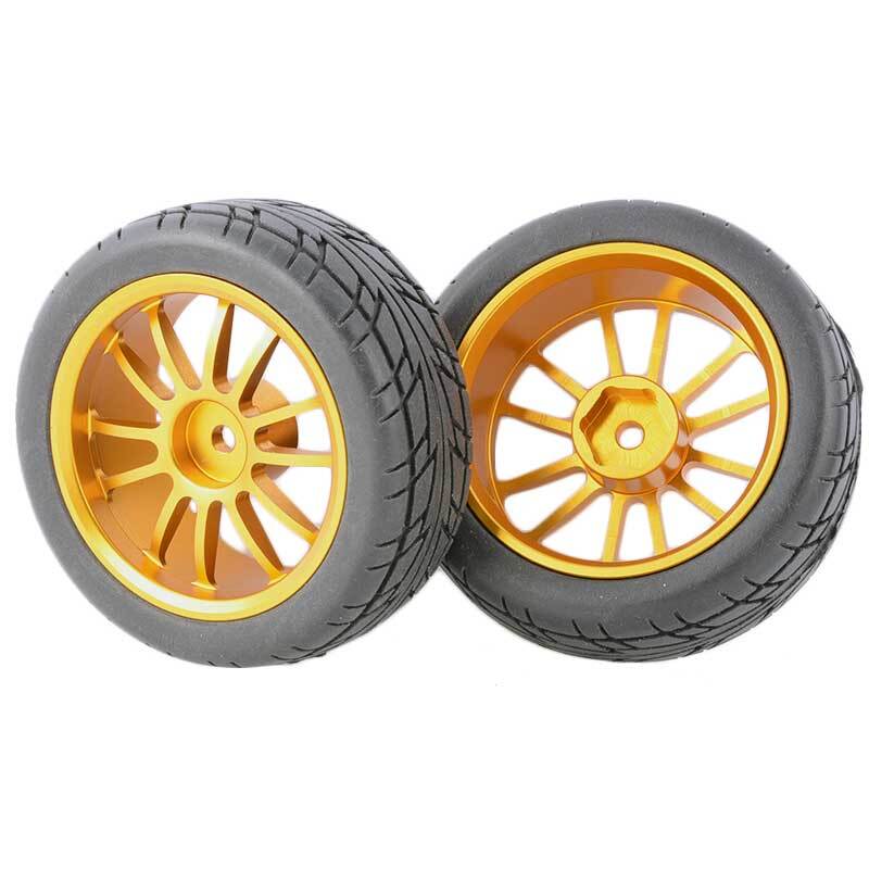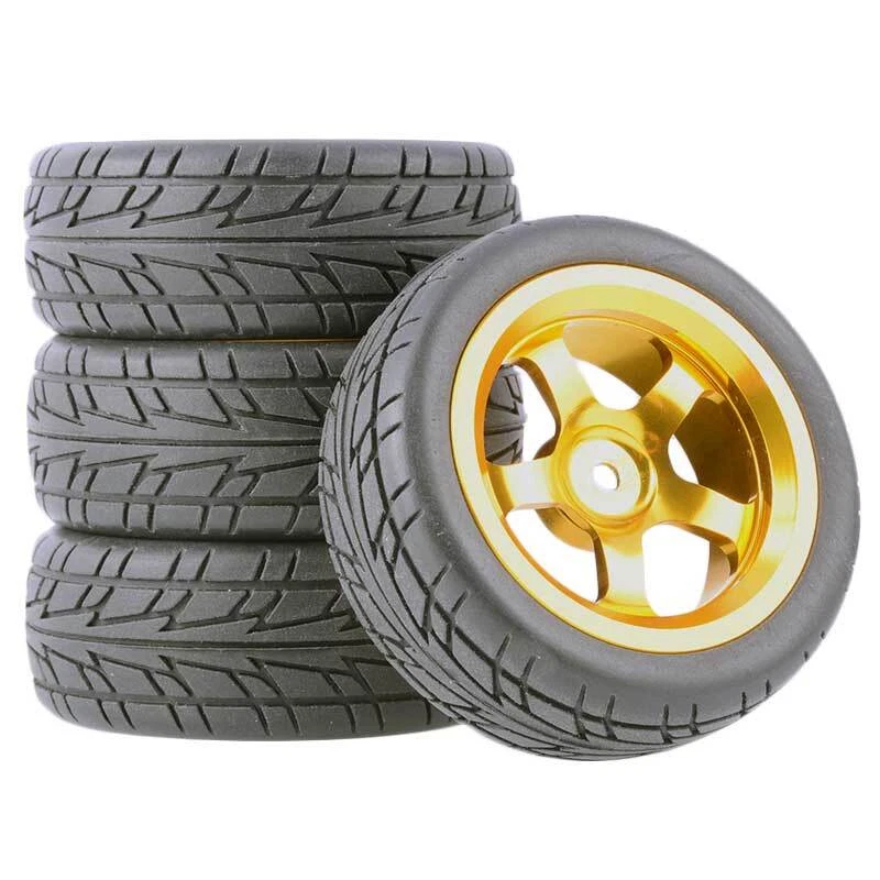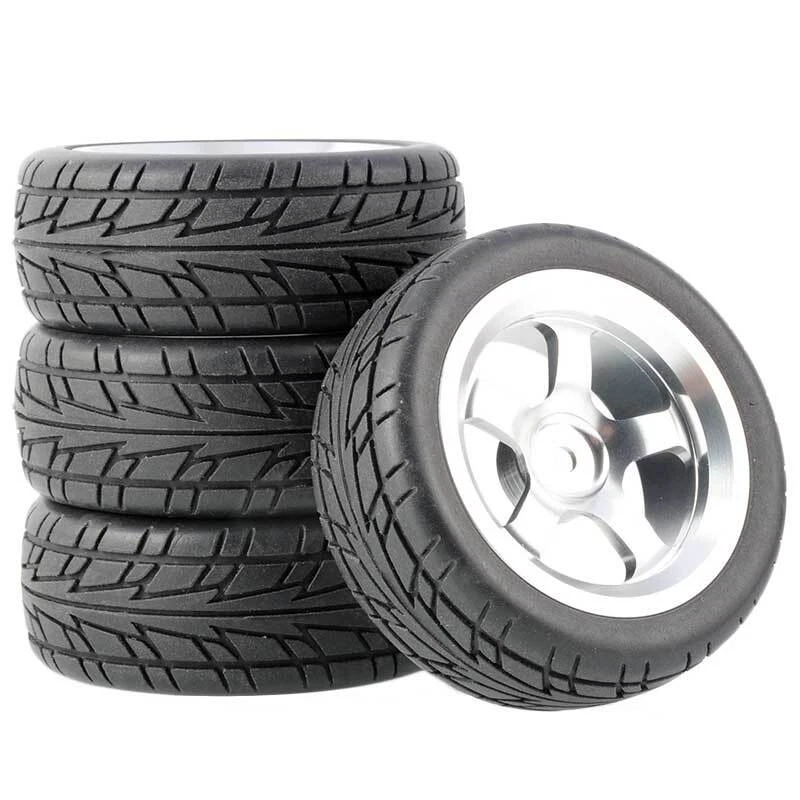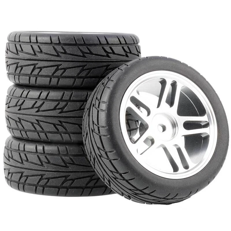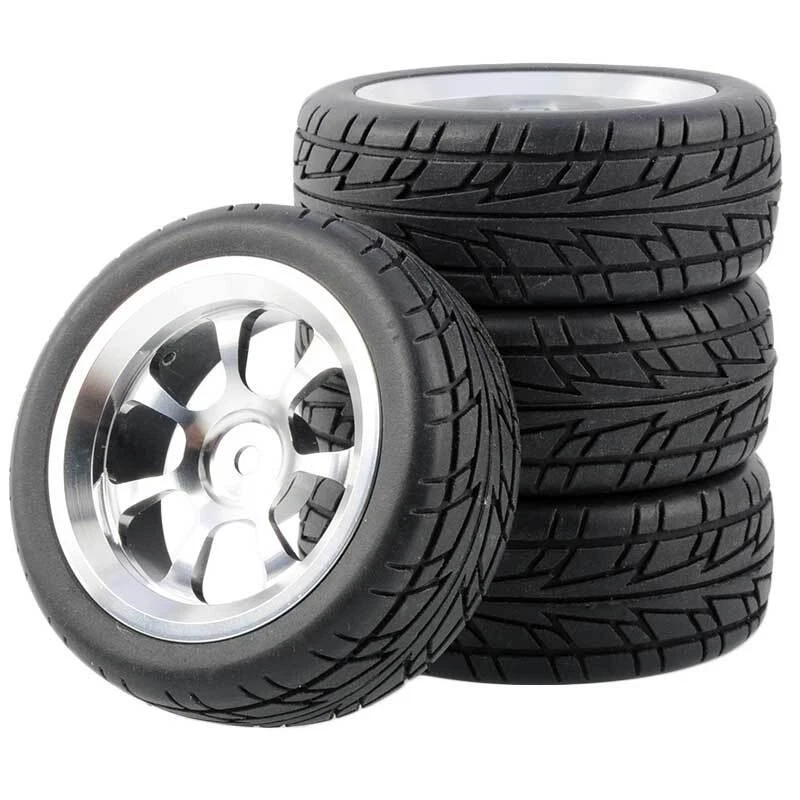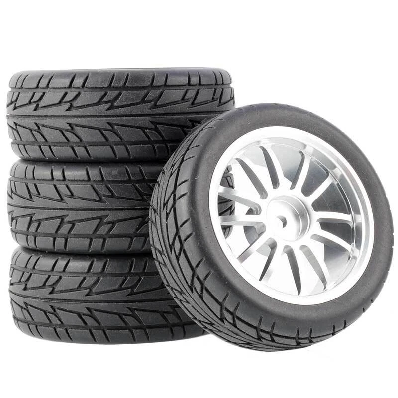 Rc Car Aluminium Alloy Wheels and rubber tires. SUPER DURABLE, NOT LIKE THE PLASTIC ONE, IT IS FULL METAL! Will fit 1/10 onroad rc cars. Specifications: Wheels Material:Aluminum alloy Rubber tires Tyre Diameter: 65 mm Wheel Rim Drive Hex: 12mm Tyre Diameter: 65 mm Tyre Width: 26mm Package includes: 4 x RC Wheelw and rubber tires NOTICE: The wheels and tires are not glued together and must be glued before use. Please carefully check the tire size before purchase, whether it is the same as your model tire size, and confirm it again before payment, so as not to return the refund, thank you, wish you a happy shopping.