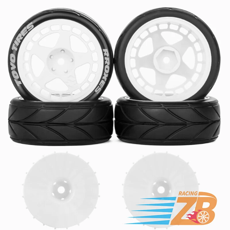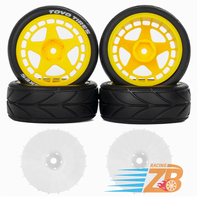 1 Set of wheels and rubber tires (4 pieces). Tyres are made of rubber, and wheel rims are made of plastic, perfect replacement for your kit Will fit on most 1:10 scale on road touring cars. High quality soft rubber tires. Wheels and tires are not glued together. Specs: Wheel Hub: Electroplated Tyre: Rubber Insertion: Foam Diameter: 64mm Width: 26mm Mount: 12mm Hex Condition: New NOTICE: The wheels and tires are not stuck together, and must be glued before use. Please check the tire size carefully before purchase, and make sure that it is shared with your model car before payment, so as not to load your model car and return it, thank you, I wish you a happy shopping!