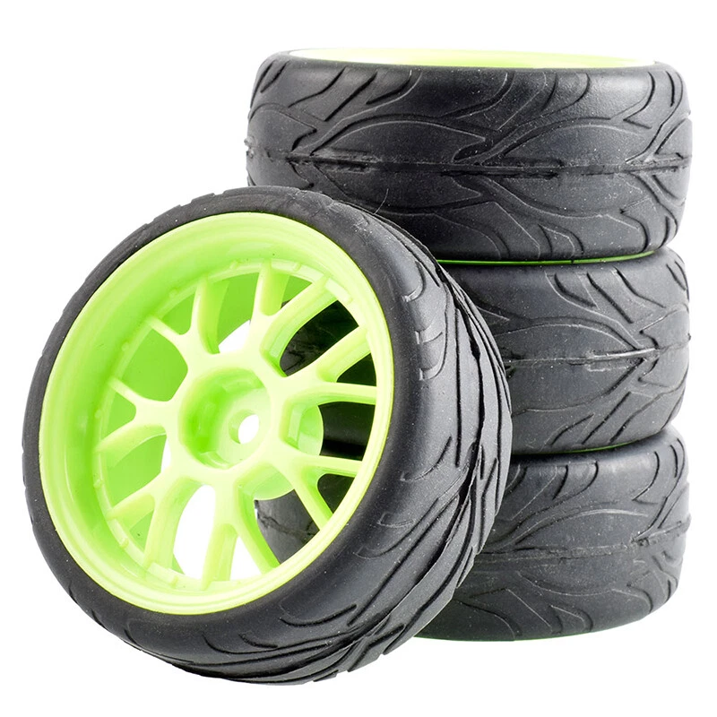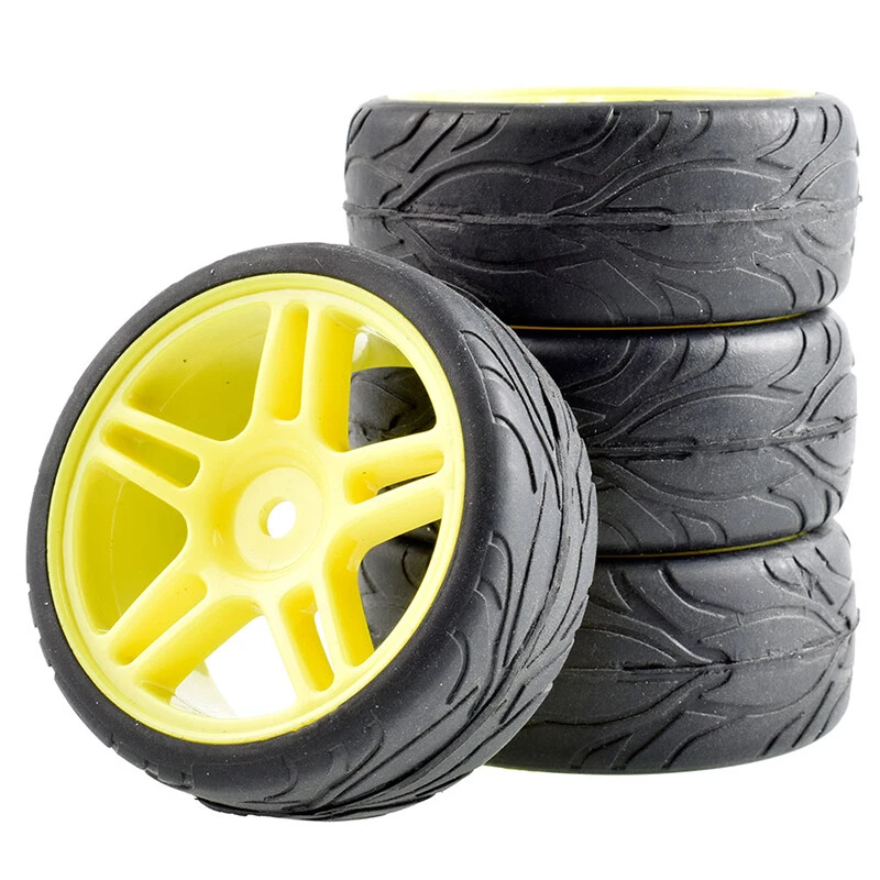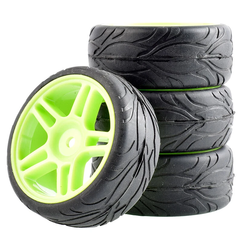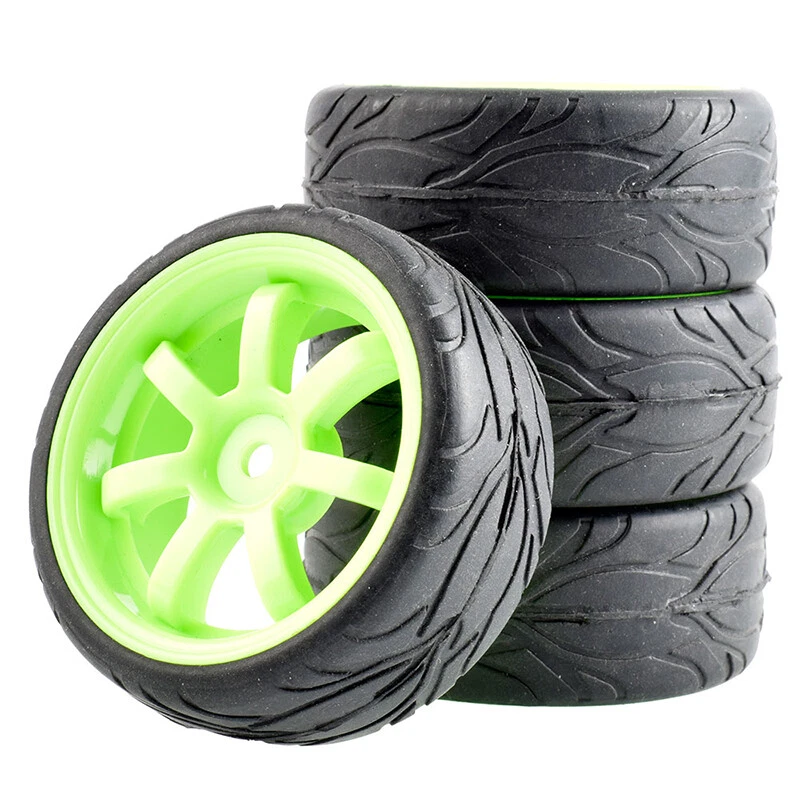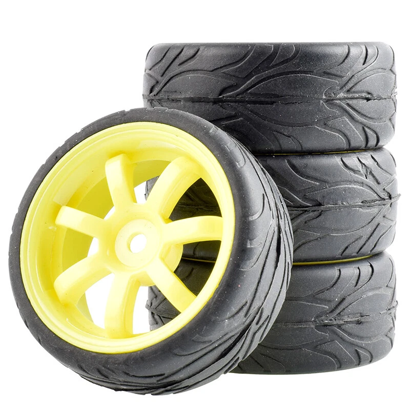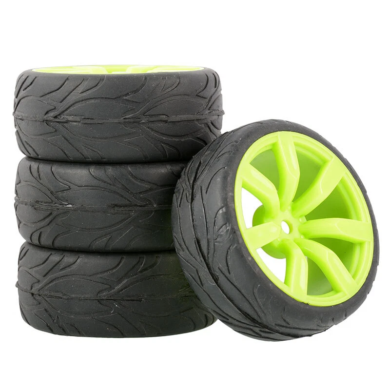 1/10 On r oad Rc Car Wheels & Rubber Tires Set for Tamiya tt01 tt02 tt01e kyosho fw06 D3 D4 HSP HPI Specifications: ● Size: Tires Diameter: 64mm / Width: 26mm Wheel Diameter: 45mm / Width: 26mm Wheel Hex Drive: 12mm ● Weight: 110g(4Pcs) ● Material: Plastic Wheel & Rubber Tire & Insert Sponge ● Quantity: 4Pcs ● Color: Black/White/Red/Yellow/Green ● Suitable: for 1/10 HSP HPI Sakura D5/D4/D3 Tamiya KYOSHO Racing Touring Flat RC Car Parts No te: This tire is new but still not glued Package included: ● 4Pcs Racing Tires w/Plastic Wheel. NOTICE: The wheels and tires are not stuck together, and must be glued before use. Please check the tire size carefully before purchase, and make sure that it is shared with your model car before payment, so as not to load your model car and return it, thank you, I wish you a happy shopping!