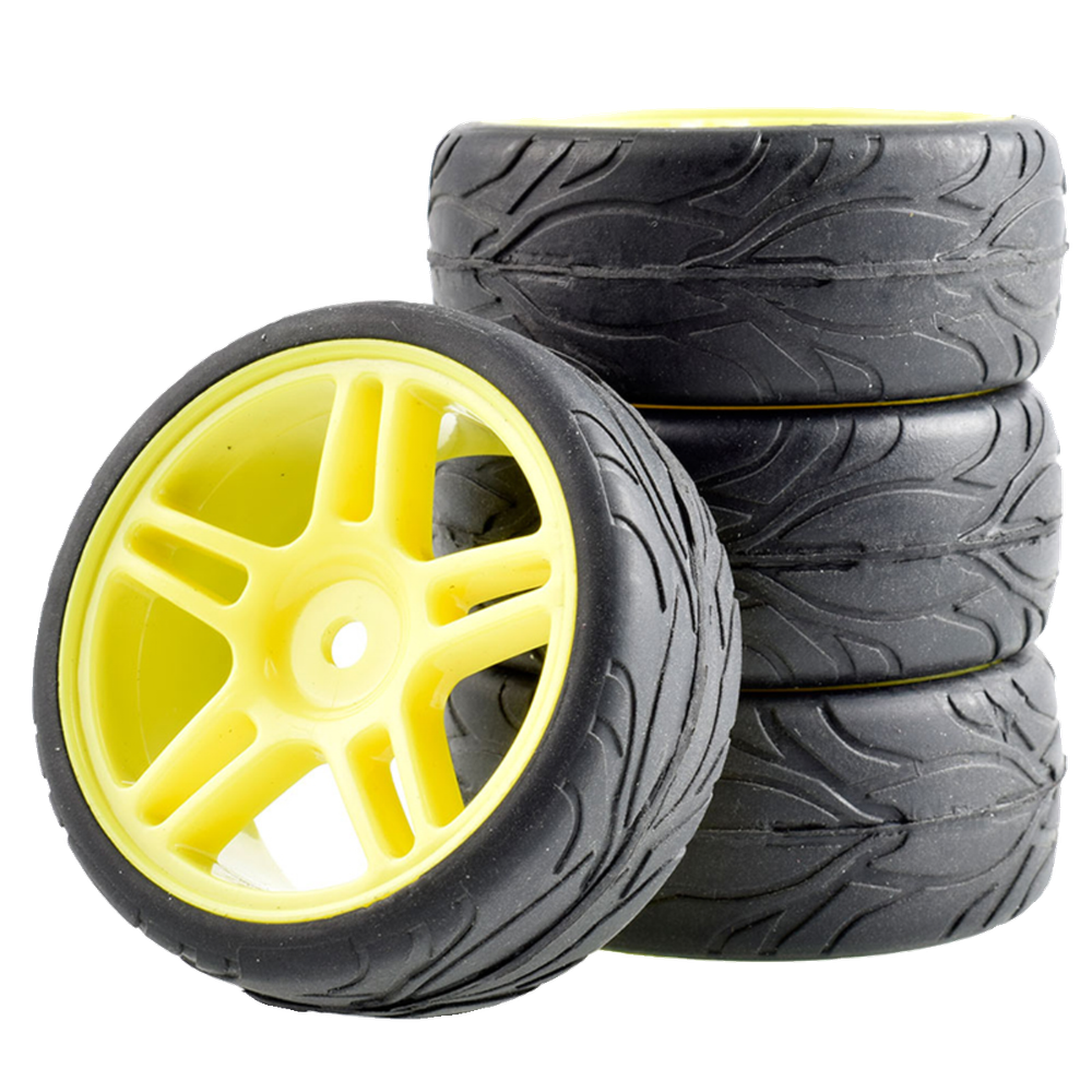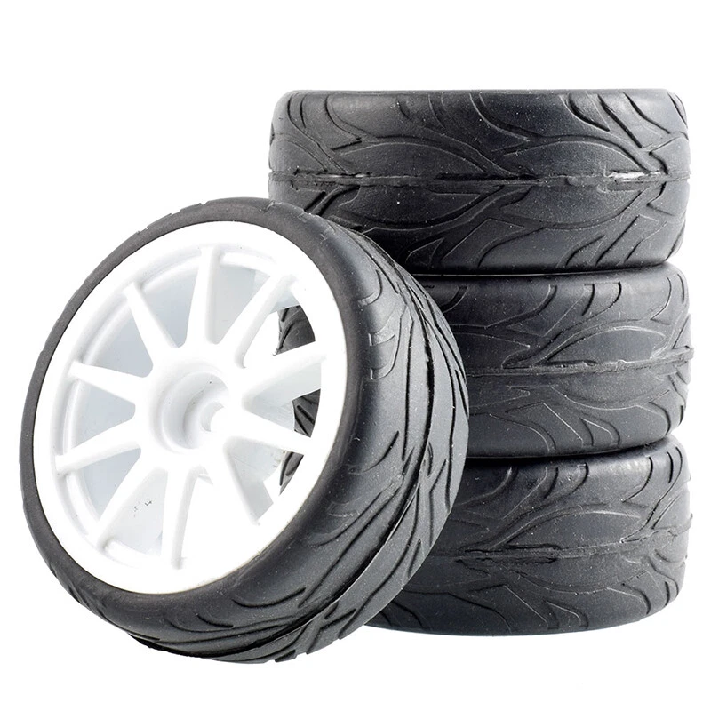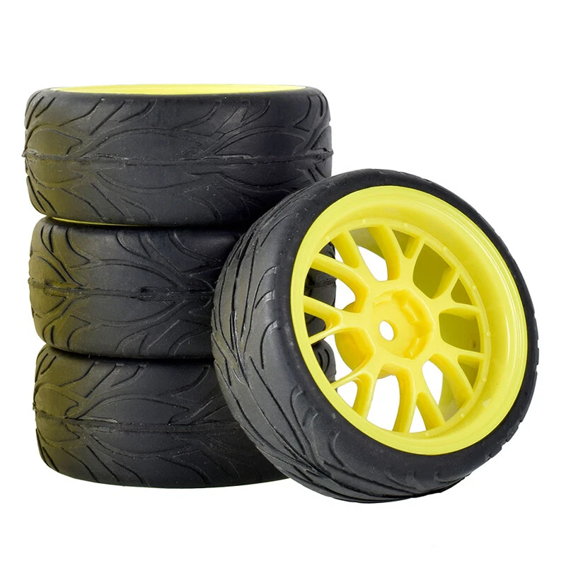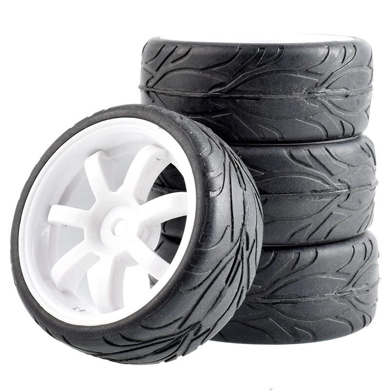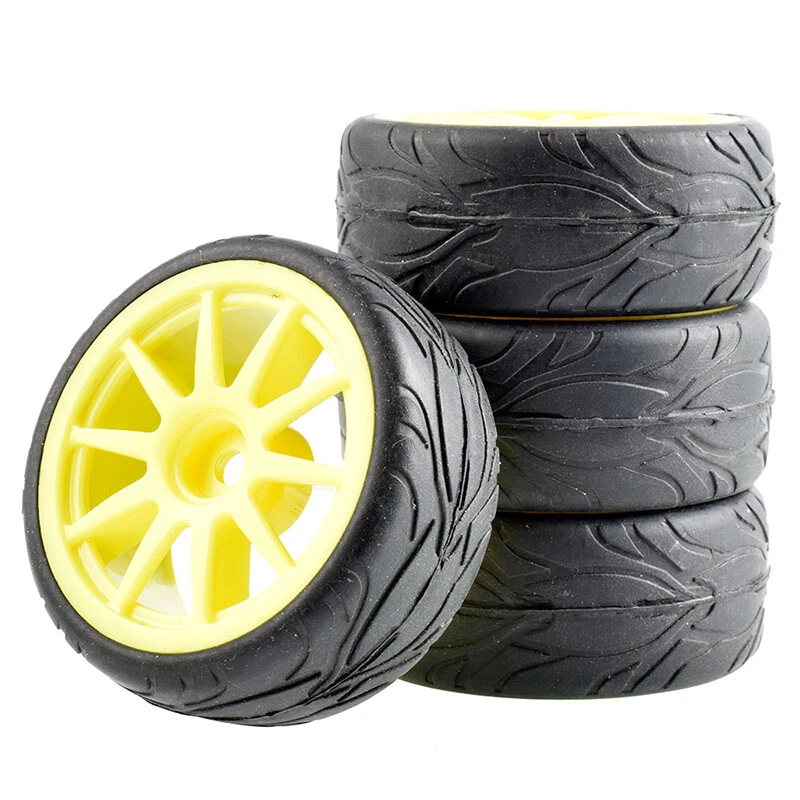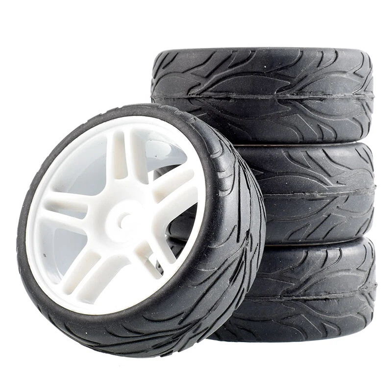 1/10 On r oad Rc Car Wheels & Rubber Tires Set for Tamiya tt01 tt02 tt01e kyosho fw06 D3 D4 HSP HPI Specifications: ● Size: Tires Diameter: 64mm / Width: 26mm Wheel Diameter: 45mm / Width: 26mm Wheel Hex Drive: 12mm ● Weight: 110g(4Pcs) ● Material: Plastic Wheel & Rubber Tire & Insert Sponge ● Quantity: 4Pcs ● Color: Black/White/Red/Yellow/Green ● Suitable: for 1/10 HSP HPI Sakura D5/D4/D3 Tamiya KYOSHO Racing Touring Flat RC Car Parts No te: This tire is new but still not glued Package included: ● 4Pcs Racing Tires w/Plastic Wheel. NOTICE: The wheels and tires are not stuck together, and must be glued before use. Please check the tire size carefully before purchase, and make sure that it is shared with your model car before payment, so as not to load your model car and return it, thank you, I wish you a happy shopping!