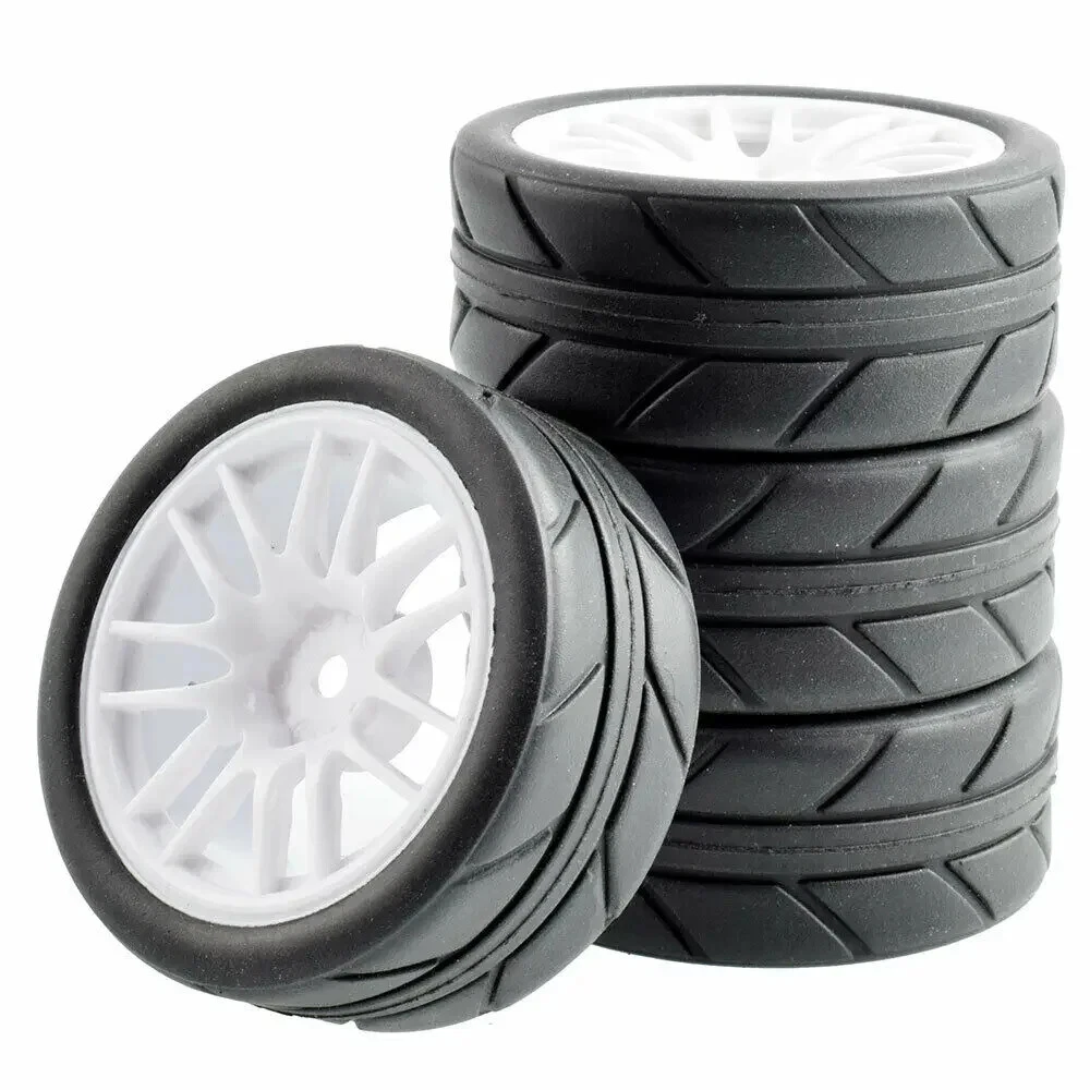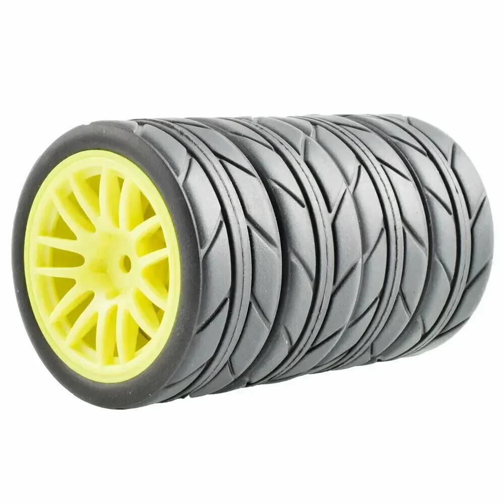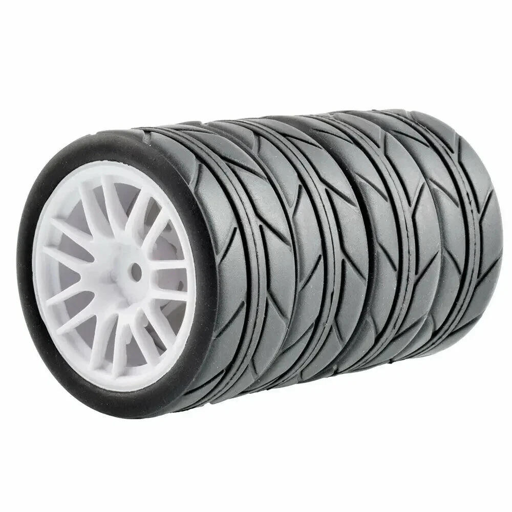 100% Brand New Material: Plastic Wheel / Rubber Tires Rubber Tires Diameter: 65mm / Width:26mm Wheel Diameter: 52mm / Width: 26mm Wheel Hex Drive: 12mm Weight: 120g/sets 4xWheel and 4xTires Complete, Insert Sponge NOTICE: The wheels and tires are not glued together and must be glued before use. Please carefully check the tire size before purchase, whether it is the same as your model tire size, and confirm it again before payment, so as not to return the refund, thank you, wish you a happy shopping.