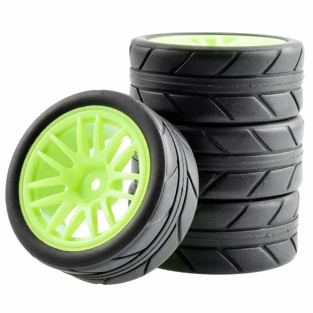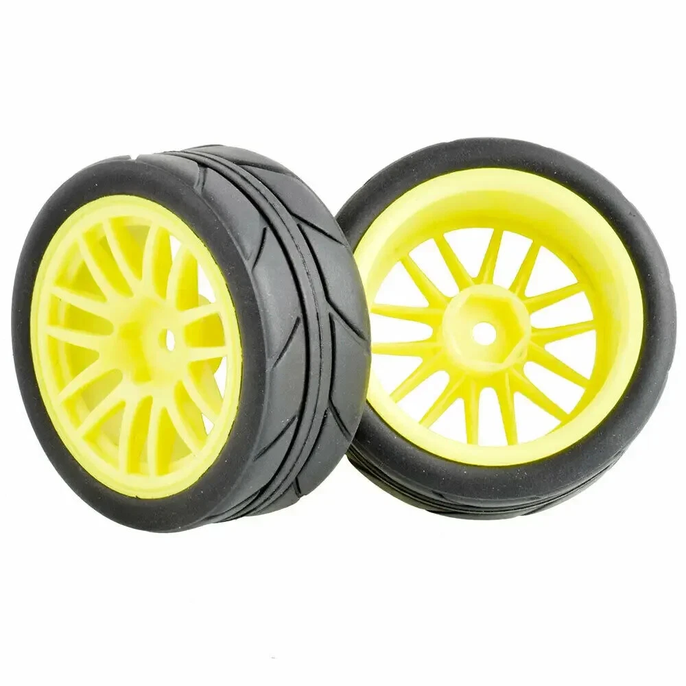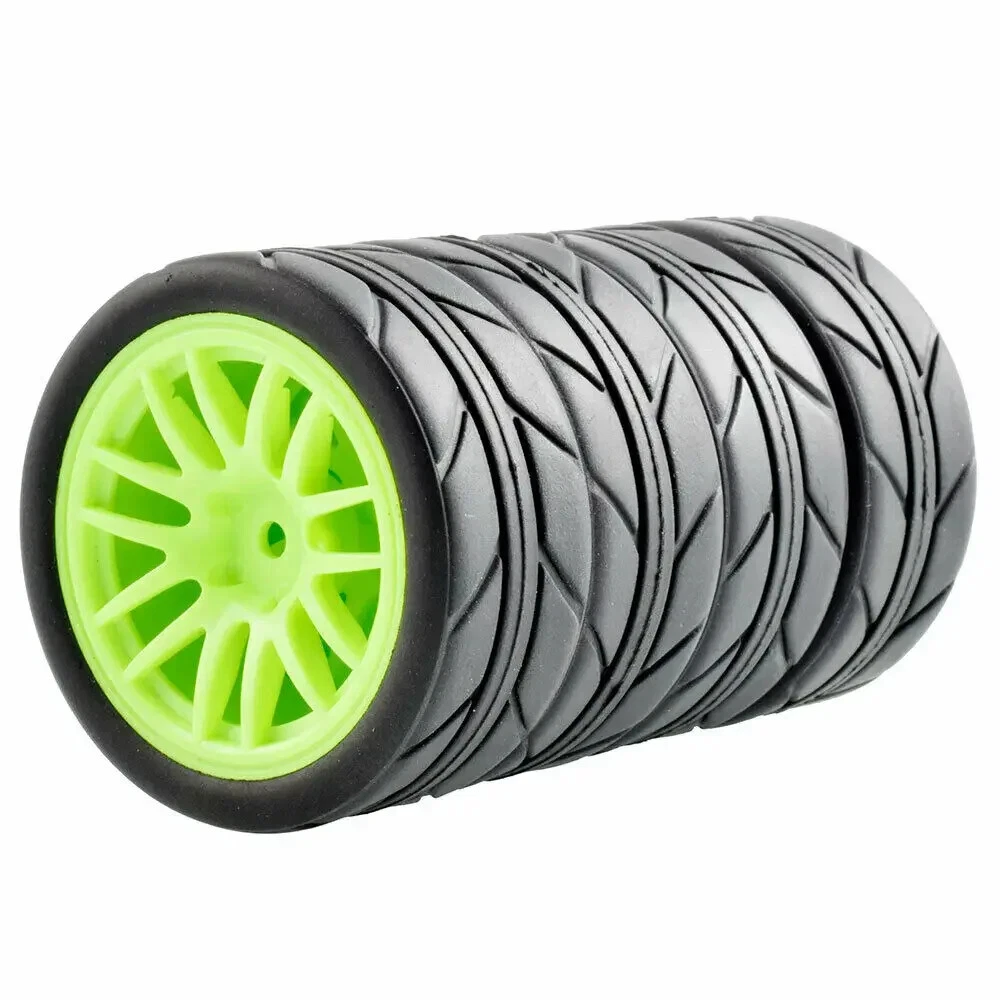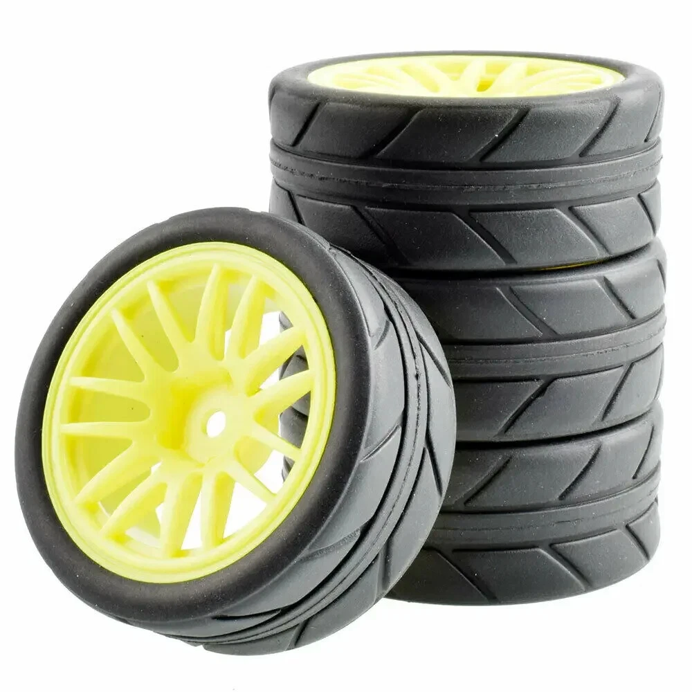 100% Brand New Material: Plastic Wheel / Rubber Tires Rubber Tires Diameter: 65mm / Width:26mm Wheel Diameter: 52mm / Width: 26mm Wheel Hex Drive: 12mm Weight: 120g/sets 4xWheel and 4xTires Complete, Insert Sponge NOTICE: The wheels and tires are not glued together and must be glued before use. Please carefully check the tire size before purchase, whether it is the same as your model tire size, and confirm it again before payment, so as not to return the refund, thank you, wish you a happy shopping.