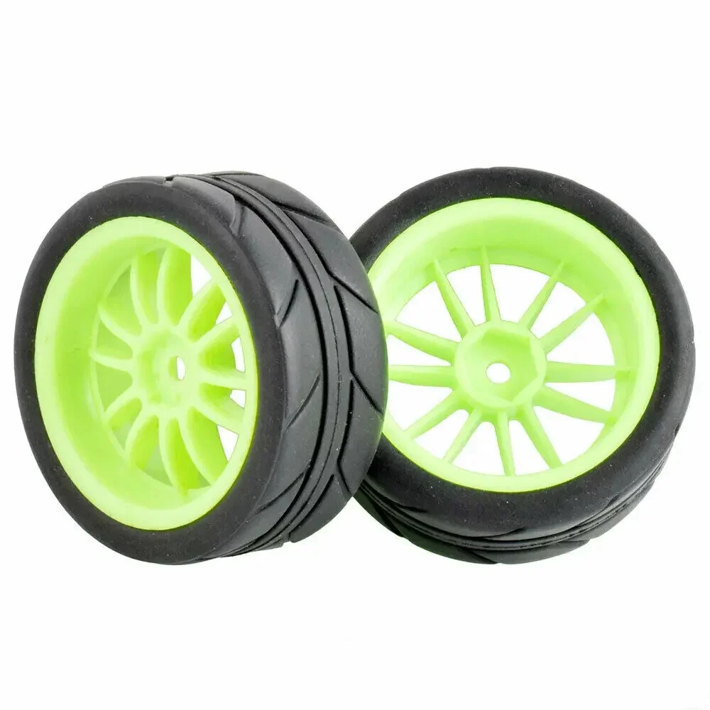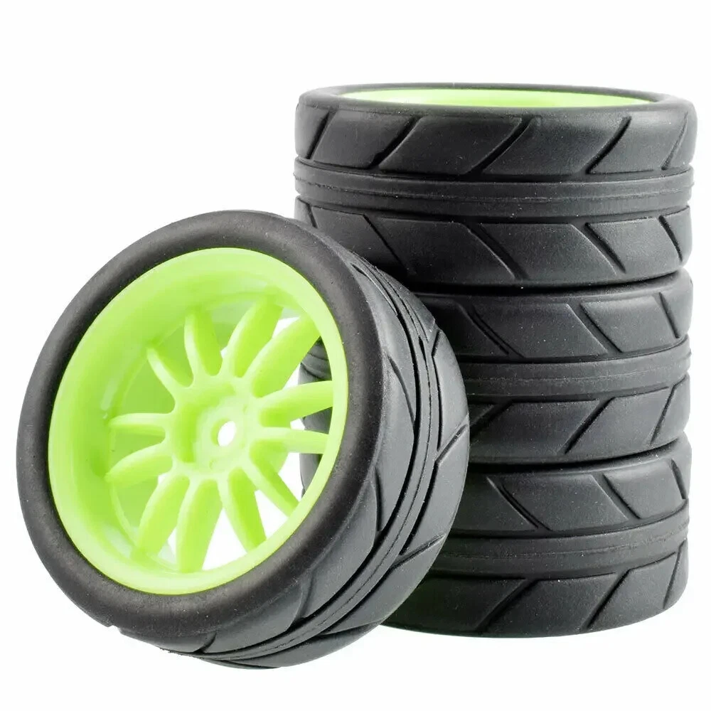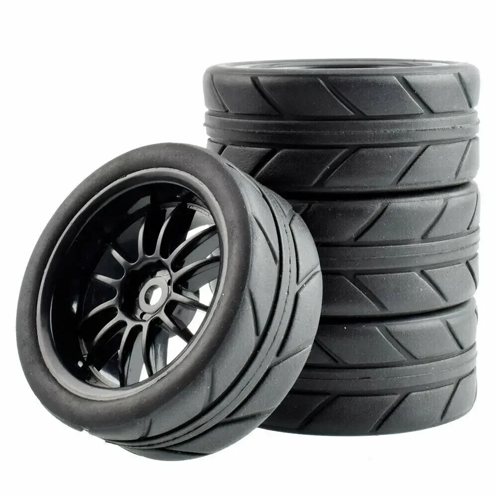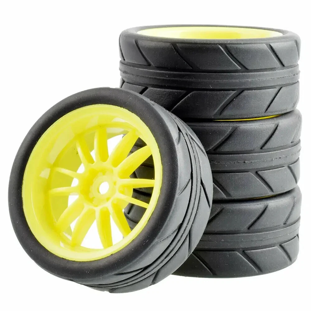 100% Brand New Material: Plastic Wheel / Rubber Tires Rubber Tires Diameter: 64mm / Width:26mm Wheel Diameter: 52mm / Width: 26mm Wheel Hex Drive: 12mm Weight: 120g/sets 4xWheel and 4xTires Complete, Insert Sponge NOTICE: The wheels and tires are not glued together and must be glued before use. Please carefully check the tire size before purchase, whether it is the same as your model tire size, and confirm it again before payment, so as not to return the refund, thank you, wish you a happy shopping.