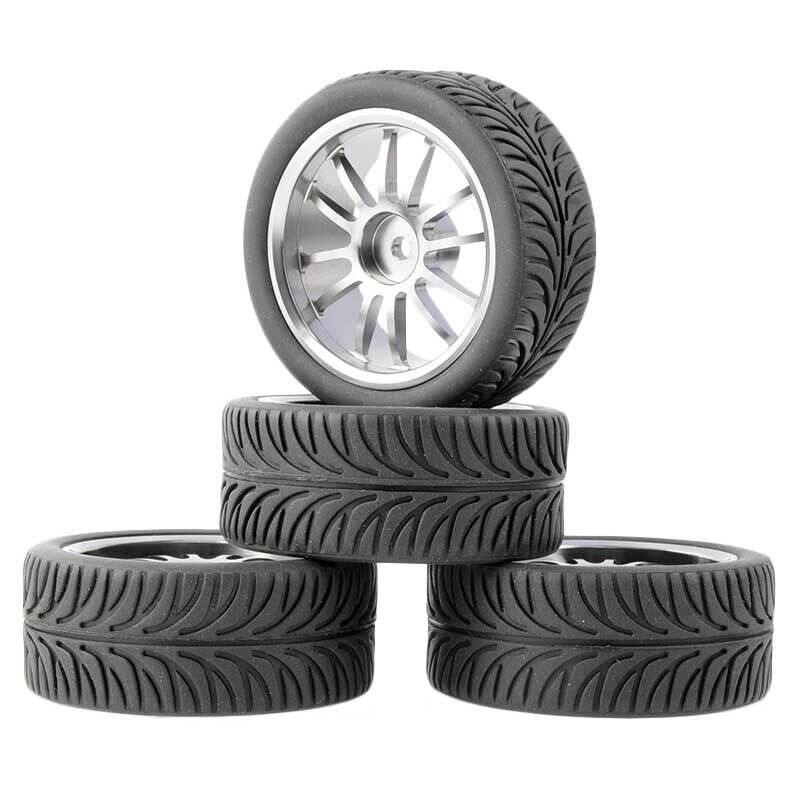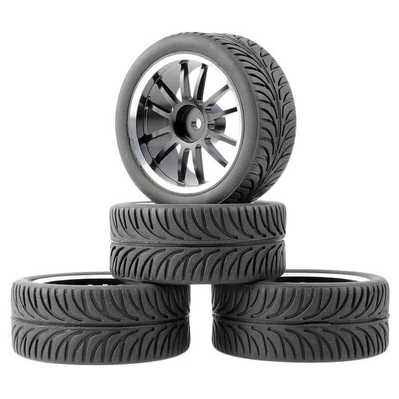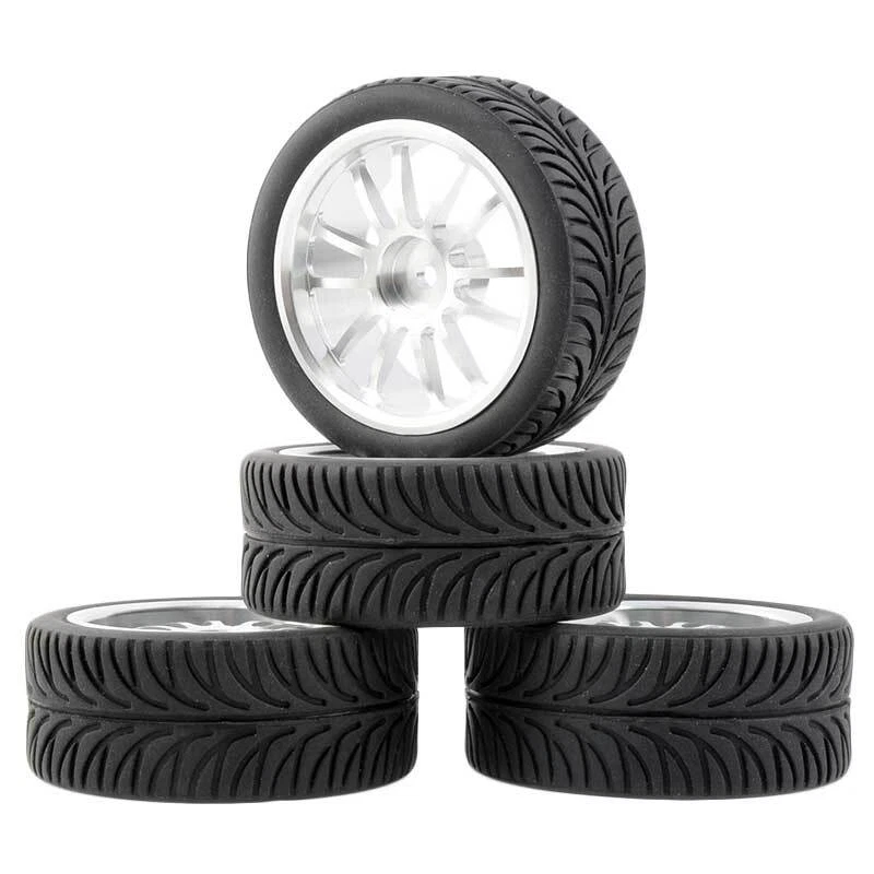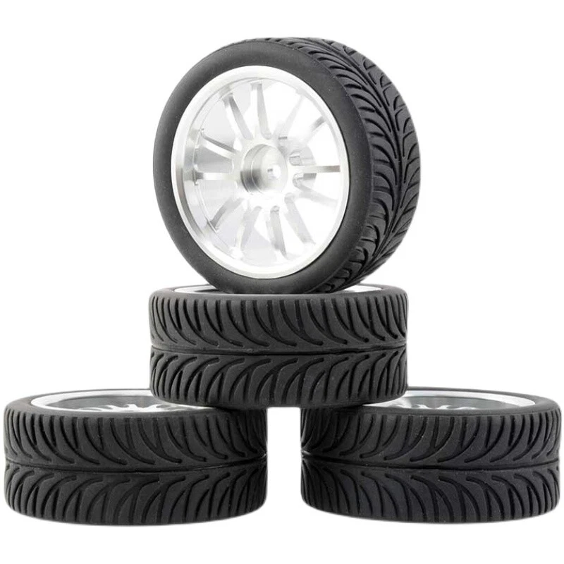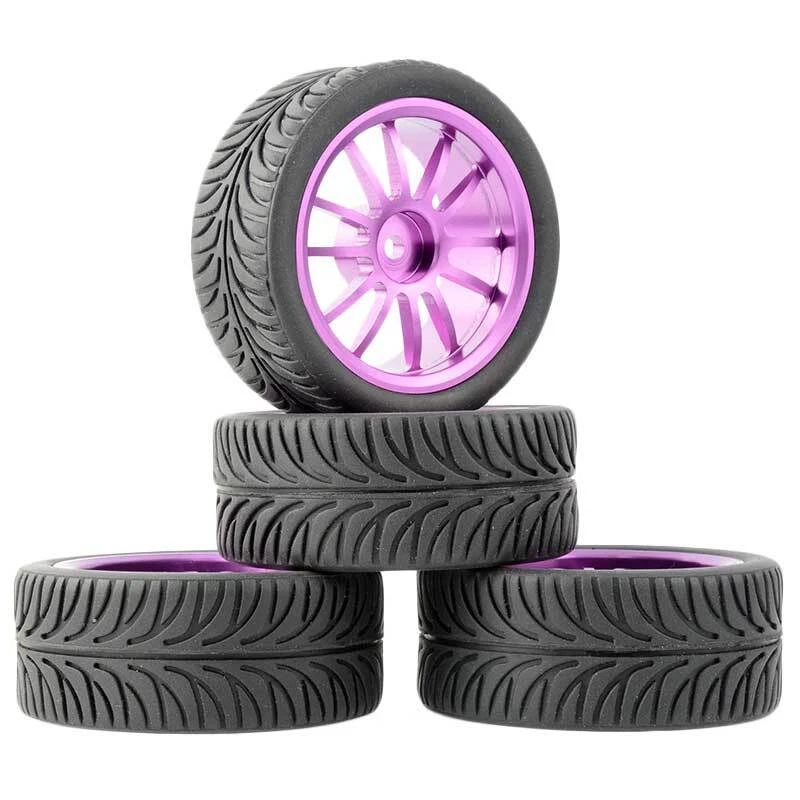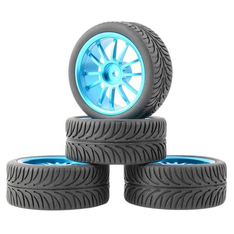 Rc Car Aluminium Alloy Wheels and rubber tires. SUPER DURABLE, NOT LIKE THE PLASTIC ONE, IT IS FULL METAL! Will fit 1/10 onroad rc cars. Specifications: Wheels Material:Aluminum alloy Rubber tires Tyre Diameter: 65 mm Wheel Rim Drive Hex: 12mm Tyre Diameter: 65 mm Tyre Width: 26mm Package includes: 4 x RC Wheelw and rubber tires. NOTICE: The wheels and tires are not glued together and must be glued before use. Please carefully check the tire size before purchase, whether it is the same as your model tire size, and confirm it again before payment, so as not to return the refund, thank you, wish you a happy shopping.