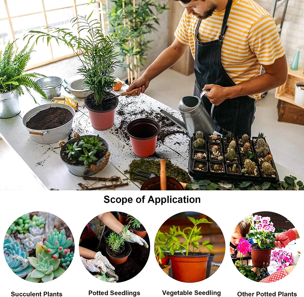 Enough Quantity: You will receive 110 nursery pots, which has high cost performance. The 4-inch plants nursery pots are suitable for greening projects, home gardening, flower display in shopping malls, garden nursery and so on. Durable: These plastic nursery pot is made of PP material, which has no stimulating smell. With good quality and strong flexibility, it will not be damaged; it is also break-resistant and wear resistant. The nursery pot can be restored to it's original shape by hand once deformed, and can be reused after washing. Plant Pots Size: The outside diameter of the top is 4in, the bottom is 2.6in, and the height is 3.2in. These plants nursery pots are very suitable succulent seedling breeding and urban landscape plant cultivation. Design Improvement: There are 8 drainage holes at the bottom of the plants nursery pots. We improved the design, thickened the bottom, increased the number of drainage holes. Increasing the holes to facilitate drainage and gas flow, prevent root rot, and improve the survival rate of the nursery. Beautiful and Practical: The product is integrated, with simple design, red brick exterior and dark interior, which can effectively prevent ultraviolet, beautiful and practical. Product Description Augshy Nursery Pots for Succulent Seedling Cutting Transplanting The plant pot is suitable for planting most samll plants, vegetables, flowers, professional nursery cultivation, gardening, seed starting, cuttings, seedlings and transplanting plant. These plastic nursery pot is made of PP material, which has no stimulating smell. With good quality and strong flexibility, this nursery pot are not easy to break,can be used for a long time. The nursery pot bottom has small drain holes to keep soil drained and ventilated, good seedling pots. Easy to recover original shape after deformation. Ideal for plant grow. These nursery pots is for transplanting seedlings and starting seedlings,widely used in nursery Plastic Plant Pot for Succulent Seedling Cutting Transplant Plants can breathe freely, avoid excessive watering, maintain soil drainage and ventilation,therefore, the plants can grow better The seeding pot is suitable for greening projects, home gardening, flower display in shopping malls, garden nursery and so on. Plastic nursery pot for plants,cuttings & seedlings,Plant Seed Starting,ideal for doing lot of succulent propagation,ideal as plant transition pots.light weight,soft thin plastic.reusable The plant nursery pots are very suitable succulent seedling breeding and urban landscape plant cultivation. Added Drain Holes In view of the fact that the less drainage holes of seed starting pots in the market will cause root rot, we have improved the design and added drainage holes. The nursery pot bottom has 8 small Drain holes to keep soil drained and ventilated, washable and reusable. We are committed to providing customers with the best products and services, so that sellers can get to know us through products. Won't be Crushed Our nursery pots are made of quality materials, they will not be crushed, so they can be used many times.They can also be used as transition pots. If "the same pots" you used before are fragile, please be careful that the quality of the seed starting pots you buy is very poor, and they are very likely to be made of recycled materials. But rest assured, our flowerpots are made entirely of new materials and can be used for a long time. Great for Nursery Plastic pots for plants, cuttings & seedlings, plant seed starting. Great for Doing lot of succulent propagation, great as plant transition pots.light weight, soft thin plastic. If you are a nursery enthusiast, please try to use our flowerpots. They will satisfy you. These small mini plastic flower nursery pots can be used for indoor and outdoor planting for a long time. They are suitable for planting all kinds of indoor outdoor plants,such as vegetables, flowers, professional nursery cultivation, gardening.