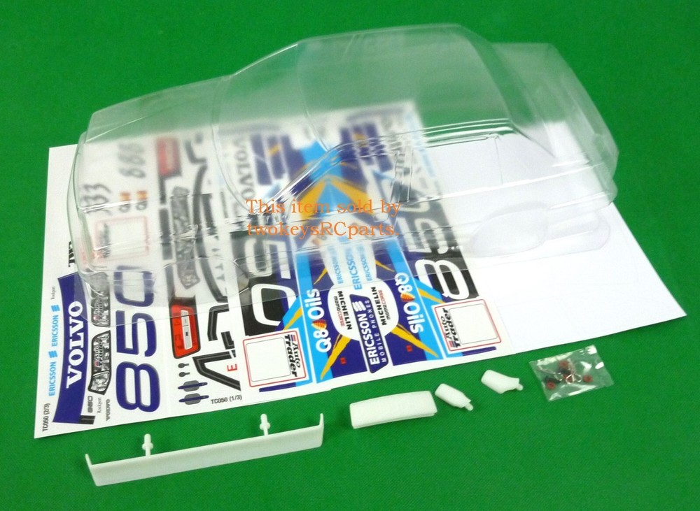 AS ALWAYS - before purchase - check the specs given below to ensure this body shell is suitable for your needs. CLEAR UNPAINTED LEXAN BODY SHELL to suit a 1:10th scale race or touring car. Body shell is as per pics #3 ~#10 --Volvo 850 Sedan -supplied with BTCC decals -pics #12 & #13. Pics #1, #2 are for reference only and may show slight differences to the body supplied and as an aid for decal placement (no decal instructions are included). Also supplied are plastic rear view mirrors, rear wing and front grill -pic #11 Body shell is for a chassis (wheelbase) of 258 mm and a wheel track of 190mm. Item is new. Shells are covered with clear spray film. Note that often shells are trimmed for freight purposes so excess plastic may be less than shown above. This item will be sent in a box (for safety) not a bag. Part # 050 Check out other great bargains in my E b a Y store , including more body shells and body accessories. I am not a "drop shipper", all products are in stock in Australia being sold by an Australian seller. POSTAGE - AUSTRALIAN CUSTOMERS . If you want to use the Express Post service please buy one item and select Express post, then buy any other items you want with regular post (the default option). All items will be sent together via Express Post service……… INTERNATIONAL CUSTOMERS . For post quotes for multi item orders please message me. Thanks. All duties and taxes (if applicable) are the responsibility of the buyer. If you have any questions or special requests regarding this please feel free to message me. Manufacturers are constantly improving products and changes are made without prior notice. This means that changes can be made to products (including slight colour changes) from time to time. These changes in no way constitute any intent to change the basic description of an item, nor do they constitute a reason for an items return or warranty replacement. Return Policy: Any returns will be handled as per Ebay’s return policy. Returned items must be new, unopened and undamaged. Opened returns will attract a 50% “reduced value” fee. Any unrecoverable costs and fees incurred (by me) will be deducted from any refund issued. Warranty: items have a 30day warranty, except drift wheels – which is ‘dead on arrival’ only. Warranty doesn’t cover crash damage, poor maintenance, misuse or incorrect assembly. Warranty covers sold items only.