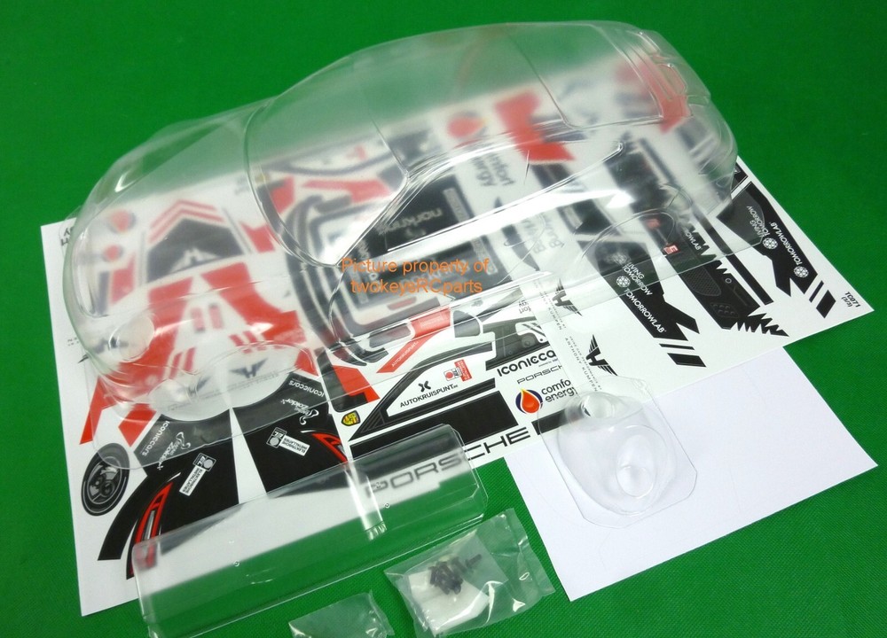 AS ALWAYS - before purchase - check the specs given below to ensure this body shell is suitable for your needs. CLEAR UNPAINTED Polycarbonate BODY SHELL to suit a 1:10th scale race or touring car. Body shell is as per pics #4 ~ #10--Porsche 911 RSR. Supplied with stickers pics #12~ #14 Wing with plastic mounts and light buckets #11 and window paint masks -shown in pics #3 and 4. Pics #1 & #2 are for reference and as a guide for sticker placement.( Hint-there are a lot of black areas on this body, it may be better to mask and paint them and just use the "accent" part of the stickers-in some areas). Body shell is for a chassis with wheelbase of 258 mm and a wheel track of 190mm. Item is new. Body is well finished and made of strong polycarbonate. Shells are covered with clear spray film. This item will be sent in a box (for safety) not a bag. Note that often shells are trimmed for freight purposes so excess plastic may be less than shown above. Part # 071 Check out other great bargains in my E b a Y store , including more body shells and body accessories. I am not a "drop shipper", all products are in stock in Australia being sold by an Australian seller. POSTAGE - AUSTRALIAN CUSTOMERS . If you want to use the Express Post service please buy one item and select Express post, then buy any other items you want with regular post (the default option). All items will be sent together via Express Post service……… INTERNATIONAL CUSTOMERS . For post quotes for multi item orders please message me. Thanks. All duties and taxes (if applicable) are the responsibility of the buyer. If you have any questions or special requests regarding this please feel free to message me. Manufacturers are constantly improving products and changes are made without prior notice. This means that changes can be made to products (including slight colour changes) from time to time. These changes in no way constitute any intent to change the basic description of an item, nor do they constitute a reason for an items return or warranty replacement. Return Policy: Any returns will be handled as per Ebay’s return policy. Returned items must be new, unopened and undamaged. Opened returns will attract a 50% “reduced value” fee. Any unrecoverable costs and fees incurred (by me) will be deducted from any refund issued. Warranty: items have a 30day warranty, except drift wheels – which is ‘dead on arrival’ only. Warranty doesn’t cover crash damage, poor maintenance, misuse or incorrect assembly. Warranty covers sold items only.