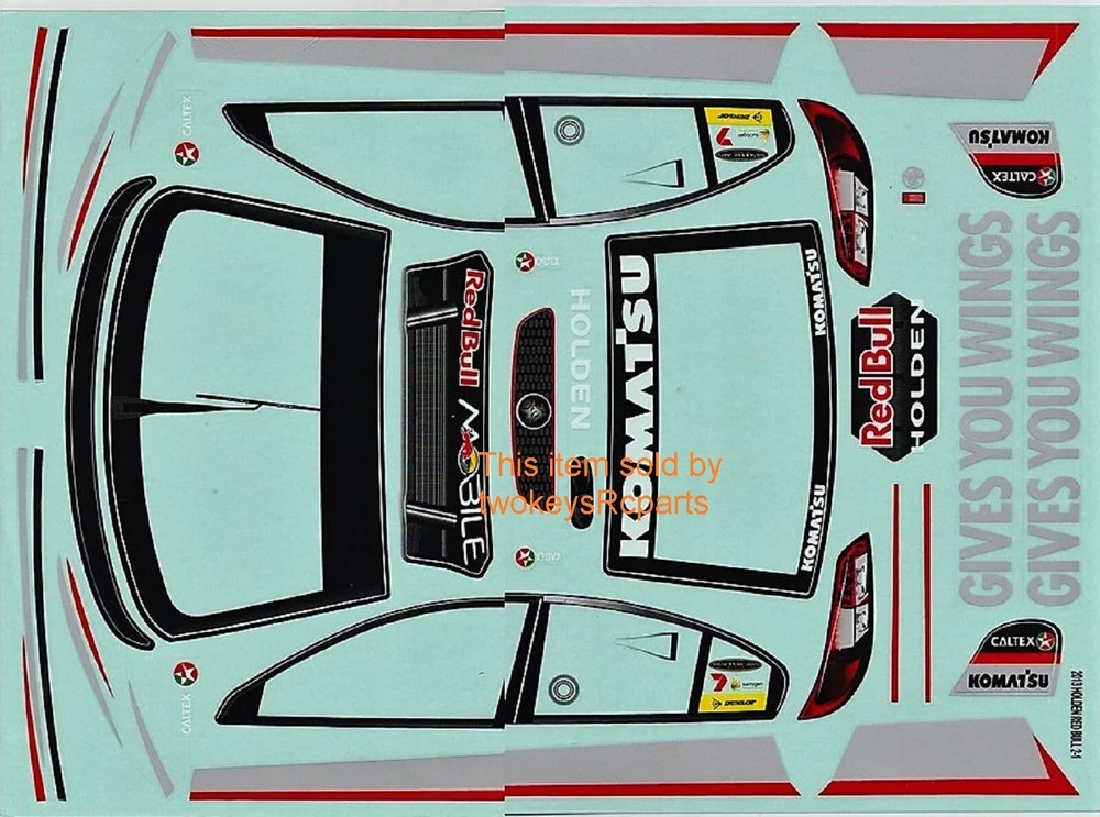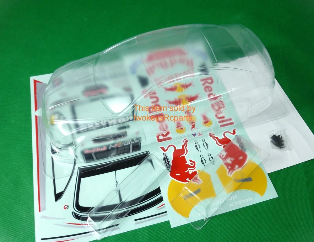 AS ALWAYS - before purchase - check the specs given below to ensure this body shell is suitable for your needs. CLEAR UNPAINTED LEXAN BODY SHELL to suit a 1:10th scale touring, race, rally or drift car. Body shell is as per pics #3 ~ #8 X- Red Bull Holden Commodore, also known as a Chevy SS in the US -supplied with wing, mounting hardware and rear view mirrors- pic #9. Decals supplied are as per pics #10 & #11. Window/paint masks (pic #2) are also supplied Pics #1 & #2 are sample pictures only and are included as an aid to decal placement. Body shell is for a chassis (wheelbase) of 258mm -shell is 200mm wide Item is new. Shells are covered with clear spray film. Note that shells may be trimmed for freight purposes so excess plastic may be less than shown above. This item will be sent in a box (for safety) not a bag. Part #M2349 Check out other great bargains in my E b a Y store , including more body shells. I am not a "drop shipper", all products are in stock in Australia being sold by an Australian seller. POSTAGE - AUSTRALIAN CUSTOMERS . If you want to use the Express Post service please buy one item and select Express post, then buy any other items you want with regular post (the default option). All items will be sent together via Express Post service……… INTERNATIONAL CUSTOMERS . For post quotes for multi item orders please message me. Thanks. All duties and taxes (if applicable) are the responsibility of the buyer. If you have any questions or special requests regarding this please feel free to message me. Manufacturers are constantly improving products and changes are made without prior notice. This means that changes can be made to products (including slight colour changes) from time to time. These changes in no way constitute any intent to change the basic description of an item, nor do they constitute a reason for an items return or warranty replacement. Return Policy: Any returns will be handled as per Ebay’s return policy. Returned items must be new, unopened and undamaged. Opened returns will attract a 50% “reduced value” fee. Any unrecoverable costs and fees incurred (by me) will be deducted from any refund issued. Warranty: items have a 30 day warranty, except drift wheels – which is ‘dead on arrival’ only. Warranty doesn’t cover crash damage, poor maintenance, misuse or incorrect assembly. Warranty covers sold items only.