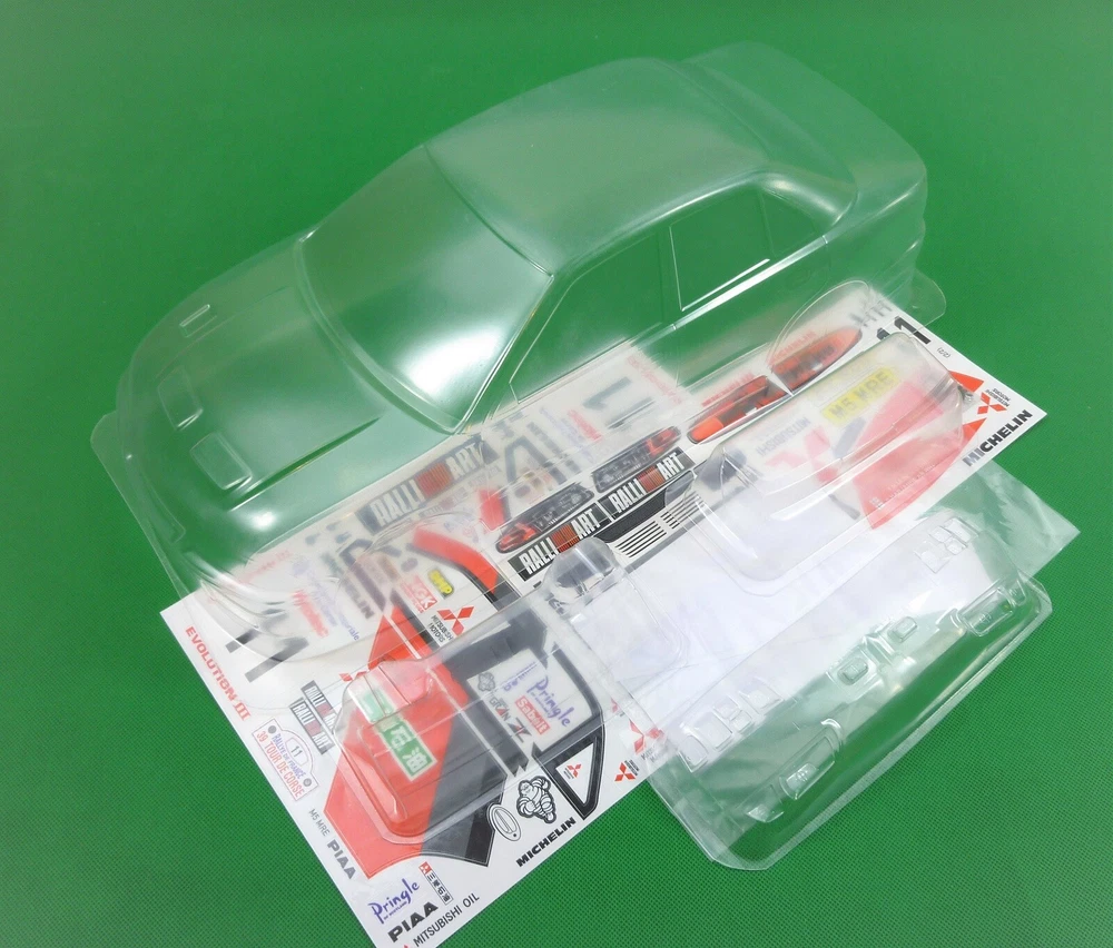 AS ALWAYS - before purchase - check the specs given below to ensure this body shell is suitable for your needs. CLEAR UNPAINTED LEXAN BODY SHELL to suit a 1:10th scale touring or rally car. Body shell is as per pics #2 #3 & #4 --Mitsubishi Lancer EVO 3 - Ralliart. Supplied with Decals pics #6 & #7; Wings and light buckets pic #5 and window paint masks. Pic #1 for reference only and may have slight differences to the item being sold in this ad. Body shell is for a chassis (wheelbase) of 258 mm and a wheel track of 190mm. Item is new. Body is well finished and made of strong Lexan. Shells are covered with clear spray film. Note that often shells are trimmed for freight purposes so excess plastic may be less than shown above. This item will be sent in a box (for safety) not a bag. Part # 083 Check out other great bargains in my E b a Y store , including more body shells. I am not a "drop shipper", all products are in stock in Australia being sold by an Australian seller. POSTAGE - AUSTRALIAN CUSTOMERS . If you want to use the Express Post service please buy one item and select Express post, then buy any other items you want with regular post (the default option). All items will be sent together via Express Post service……… INTERNATIONAL CUSTOMERS . For post quotes for multi item orders please message me. Thanks. All duties and taxes (if applicable) are the responsibility of the buyer. If you have any questions or special requests regarding this please feel free to message me. Manufacturers are constantly improving products and changes are made without prior notice. This means that changes can be made to products (including slight colour changes) from time to time. These changes in no way constitute any intent to change the basic description of an item, nor do they constitute a reason for an items return or warranty replacement. Return Policy: Any returns will be handled as per Ebay’s return policy. Returned items must be new, unopened and undamaged. Opened returns will attract a 50% “reduced value” fee. Any unrecoverable costs and fees incurred (by me) will be deducted from any refund issued. Warranty: items have a 30 day warranty, except drift wheels – which is ‘dead on arrival’ only. Warranty doesn’t cover crash damage, poor maintenance, misuse or incorrect assembly. Warranty covers sold items only.