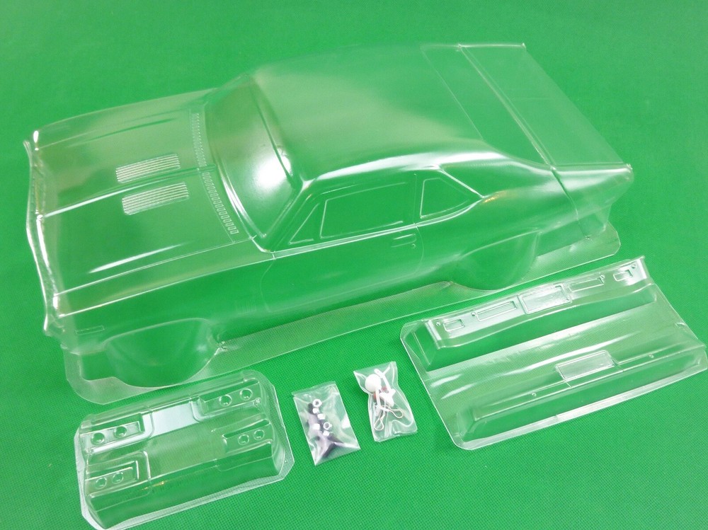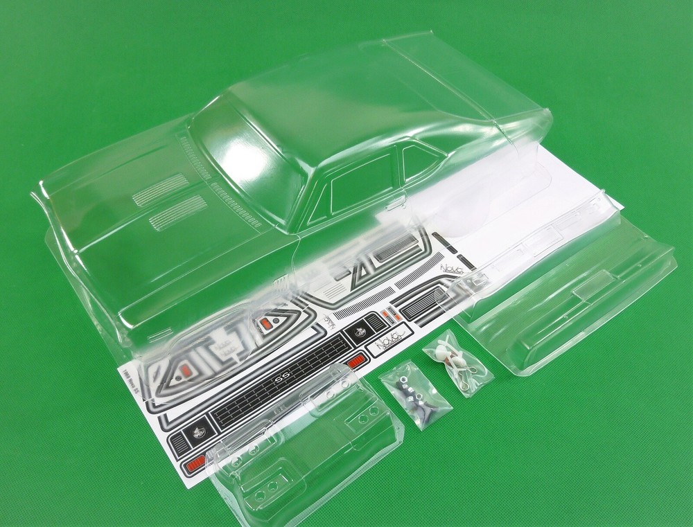 CLEAR UNPAINTED LEXAN BODY SHELL to suit a 1:10th scale touring or rally car (not suitable for buggy or monster truck). Suit Nitro or Electric Body shell is as per pics #3~ #7 above --1969 Chevy Nova - supplied with decals (not precut) -pic #8, supplied with front and rear bumpers and plastic rear view mirrors - pic #8, window paint masks also supplied- see pics #2 & 3. Pic #1 is a sample picture only of what your finished shell could look like and as a reference. Body shell is covered with clear spray film. Body shell is for a chassis (wheelbase) of 258 mm width of 200mm (manufacturers specs quoted) Item is new. Note that often shells are trimmed for freight purposes so excess plastic may be less than shown above. This item will be sent in a box (for safety) not a bag. Part # 1969 Nova Check out other great bargains in my E b a Y store , including more body shells. I am not a "drop shipper", all products are in stock in Australia being sold by an Australian seller. POSTAGE - AUSTRALIAN CUSTOMERS . If you want to use the Express Post service please buy one item and select Express post, then buy any other items you want with regular post (the default option). All items will be sent together via Express Post service……… INTERNATIONAL CUSTOMERS . For post quotes for multi item orders please message me. Thanks. All duties and taxes (if applicable) are the responsibility of the buyer. If you have any questions or special requests regarding this please feel free to message me. Manufacturers are constantly improving products and changes are made without prior notice. This means that changes can be made to products (including slight colour changes) from time to time. These changes in no way constitute any intent to change the basic description of an item, nor do they constitute a reason for an items return or warranty replacement. Return Policy: Any returns will be handled as per Ebay’s return policy. Returned items must be new, unopened and undamaged. Opened returns will attract a 50% “reduced value” fee. Any unrecoverable costs and fees incurred (by me) will be deducted from any refund issued. Warranty: items have a 30 day warranty, except drift wheels – which is ‘dead on arrival’ only. Warranty doesn’t cover crash damage, poor maintenance, misuse or incorrect assembly. Warranty covers sold items only.