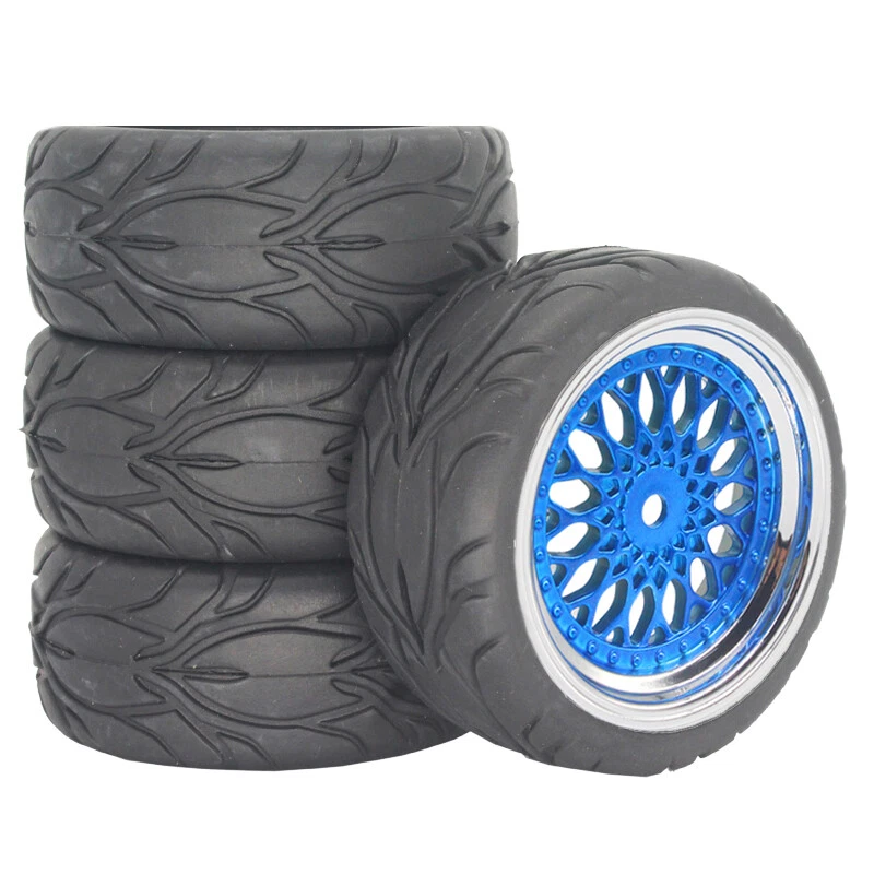 1/10 Onroad Rc Car Wheels Tires Set For Traxxas Nitro 4tec 4-tec 2.0 1 S et of rims and rubber tires (4 pieces). Wheel hex: 12 mm With foam inserts Tyres are made of rubber, and wheel rims are made of plastic. Will fit 1:10 scale on road touring ca rs. High quality soft rubber tires. Wheels and tires are not glued together. Specs: Soft Rubber Tires+Plastic rims Outer Diameter: 65mm Tyres Wide:26mm Color: Chrome+Painting Black Hexagonal joints: 12 mm Offset: 3mm Have Sponge Insert. Condition: New Included: 4pieces wheels and tires. NOTICE: The wheels and tires are not stuck together, and must be glued before use. Please check the tire size carefully before purchase, and make sure that it is shared with your model car before payment, so as not to load your model car and return it, thank you, I wish you a happy shopping!