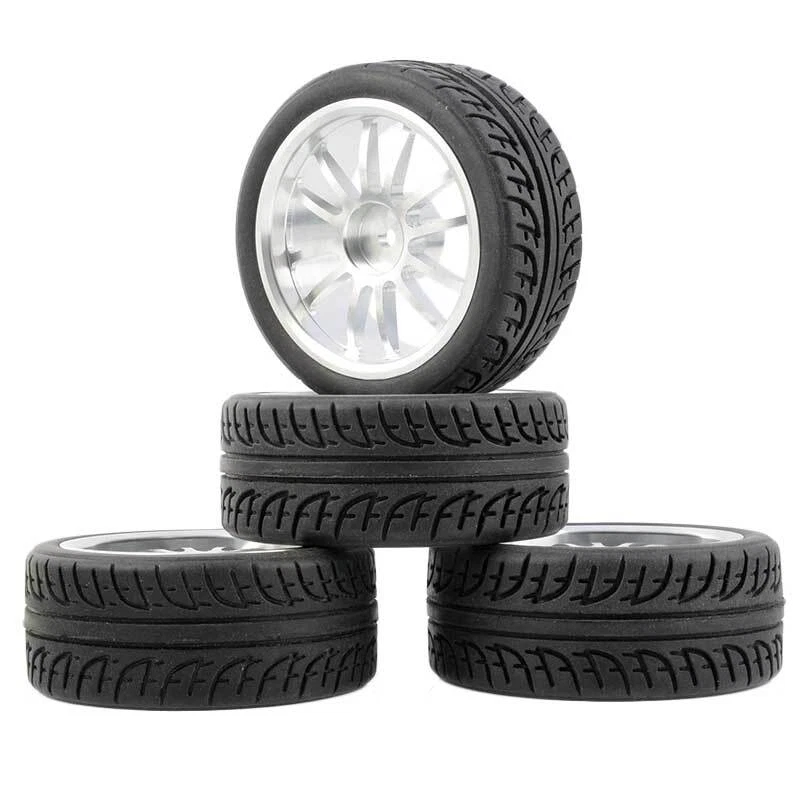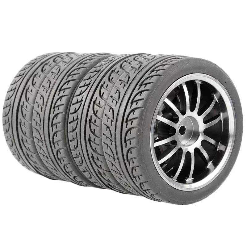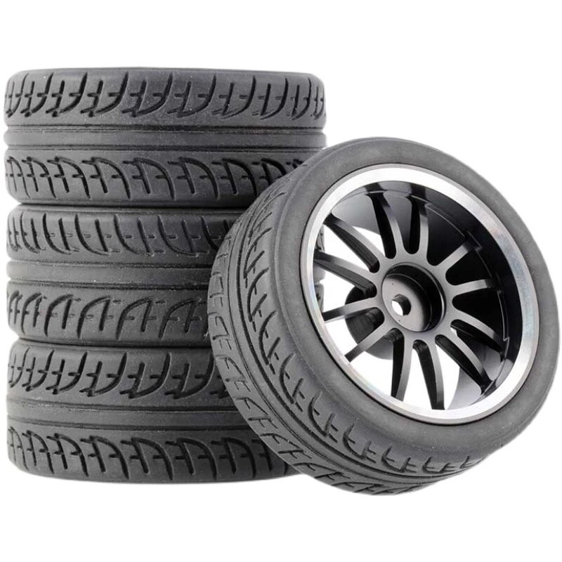 Rc Car Aluminium Alloy Wheels and rubber tires. WHEELS ARE SUPER DURABLE, NOT LIKE THE PLASTIC ONE, IT IS FULL METAL! Will fit 1/10 onroad rc cars. Specifications: Material:Aluminum alloy Offset: 3mm Heel Size:5.2 x 2.6cm/ 2.05 x 1.02inch (Dia x W) Hex adapters:12mm Rubber Tires Wheels and tires are not glued together Package include: 4 x metal Wheels 4 x Rubber Tires Condition: New NOTICE: The wheels and tires are not glued together and must be glued before use. Please carefully check the tire size before purchase, whether it is the same as your model tire size, and confirm it again before payment, so as not to return the refund, thank you, wish you a happy shopping.