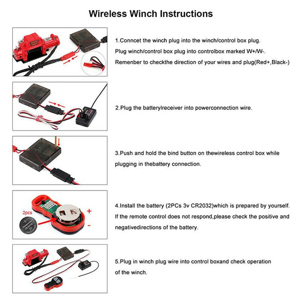 Product Description Features: 100% brand new and high quality. Suit for most 1/10 scale winch Wireless remote receiver to control the winch easily The remote control distance is about 30 meters/98feet Instruction: the power line connect to receiver, long press the start switch in the box until the red light flash Specifications: Quantity: 1Set Input voltage: 6-12v Output voltage: 7-8v Battery: 2 * 3V Lithium Coin Cells (included) Connect Method: as the photo show Package includes: 1 * Remote Controller 1 * Receiver 1 * Cable 2 * Button Cell Batteries 1 * Mounting Screws Set Shipping 1. Items sent from US warehouse. 2.Receiving time = Processing time + Shipping time . 3. Processing Time: Around 1-2 business Days . 4. Shipping Time: 3-5 business day. it may have a little delay during some holiday (such as Christmas), any problem, please feel free to contact. Returns 1. 30 days warranty from the purchased date. Please contact us via email before returning the defective item. 2. Our warranty does not extended to any product that are physically damaged or that are not under normal operating conditions as result of misuse or improper installation on the buyer/user's part. 3. Return items should include the original packaging and all accessories. buyers MUST contact us for the returning address. 4. In all cases, buyers pay shipping fees at their own cost to return products for exchange or refund. We will be responsible for the postage of replacements. Refund will be made upon receipt of the returned item. Contact Us If you have any question, please e-mail us immediately, we will reply you as quickly as possible. We care about our valued customers, and will always try to help you. About Us We are committed to providing you with the best quality products and services. We hope your shopping experience is easy and enjoyable. Payment We accept all verified payment from eBay. You may also like 13Pack Metal 0.6-2.0mm 90mm Long Screwdrivers Repair Tools For Watchmakers Watch 15.04 USD 1:72 Scale US SBD-3 Dive Bomber Fighter Alloy Aircraft Model Military Plane NEW 45.57 USD 3.89 USD Foot Pedal-Pressure Control-Valve 3 Way 2 Position 1/4" Air Pneumatic Switch 25.43 USD Lower Duct Hose for Shark Rocket True Pet Slim Vacuum HV300 HV322 320 380 380UK 9.95 USD Durable Abrasive Mounted Stone For Rotary Tools Grinding Stone Wheel Head Dremel 9.95 USD Generic Part Watch Balance Wheel Hairspring For ETA 2824-2 2834 2836 Movement F 6.35 USD 3.89 USD powered by