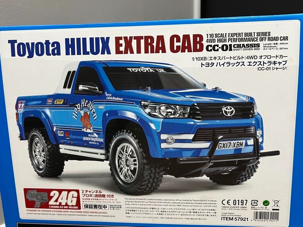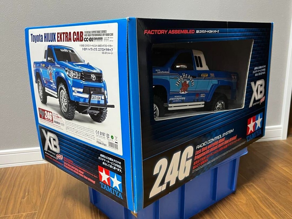 Tamiya XB 1/10 Toyota Hilux Extra Cab RC Radio control Set Tamiya HILUX Extra cab cc-01 Expert Build Batteries are not included. This is a brand new, unused item, but please understand that it is a mass-produced item and may have scratches from manufacturing. Based on an extra cab with an extended 2-door single cab, the front and rear fenders have been widened to create a more powerful look, and the model is made of polycarbonate to give it a realistic appearance. The CC-01 chassis is a full-time 4WD with a motor mounted vertically at the front of a lightweight, highly durable bathtub frame, which transmits power to the front via gears and to the rear via a propeller shaft. The suspension is a double wishbone type with upper I-arms and lower H-arms at the front, and a 4-link rigid at the rear, and is also equipped with 4 CVA oil dampers with excellent shock absorption. The beautiful chrome-plated wheels are fitted with mud-terrain type hollow rubber block tires. In addition to being equipped with differential gears on the front and rear, the differential in the rear axle can also be assembled in a locked configuration, further enhancing the fun of control with its high off-road performance on rough roads. The realistic body and tough chassis make cross-country driving fun. ●Overall length 465mm, overall width 200mm, overall height 180mm ●Wheelbase 267mm ●Tread = 160mm front and rear ●Tire width/diameter = 33/88mm front and rear ●Frame = ladder frame-style bathtub type ●Drive system = vertical motor/shaft drive 4WD ●Differential gear system = front and rear: 3 bevels ●Suspension = front: double wishbone, rear: 4-link rigid ●Dampers = CVA oil dampers front and rear ●Gear ratio = 1:14.67 ●Equipped with an ESC (electronic speed controller) that allows smooth speed adjustment in both forward and reverse ●Motor = RS540 type ★Please see before dealings★ 【Payment】 Please complete payment for auction items within 5 days 【 Shipping 】 ※Usually goods will be shipped within 3 business days after payment is received. ※Time of delivery depend on the country or region. ※Package will be send by JAPAN POST OFFICE or YAMATO or Fedex with tracking number. It will be arrived about 1week ~ 3weeks on average after shipping information is provided. International Buyers - Please Note ・ Import duties, taxes and charges are not included in the item price or shipping charges. These charges are the buyer’s responsibility. ・ Please check with your country’s customs office to determine