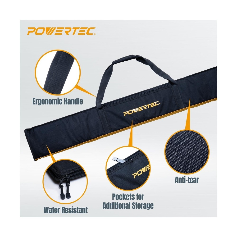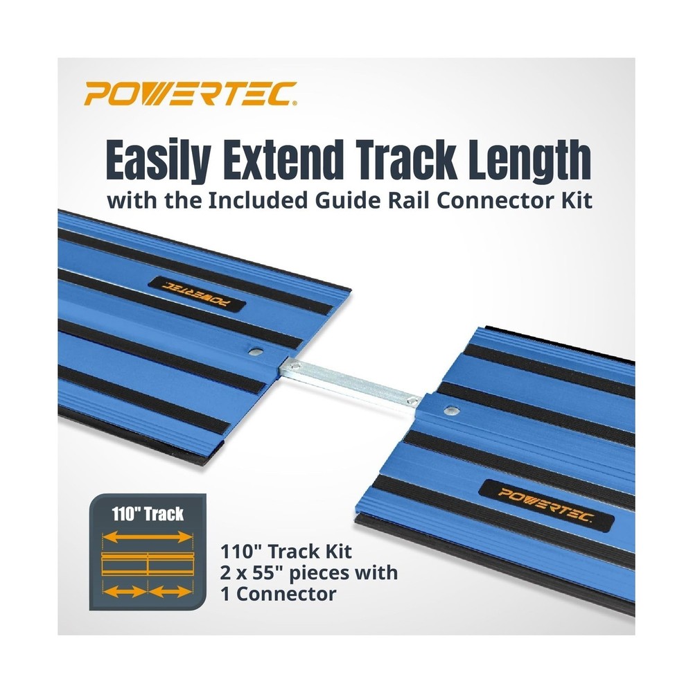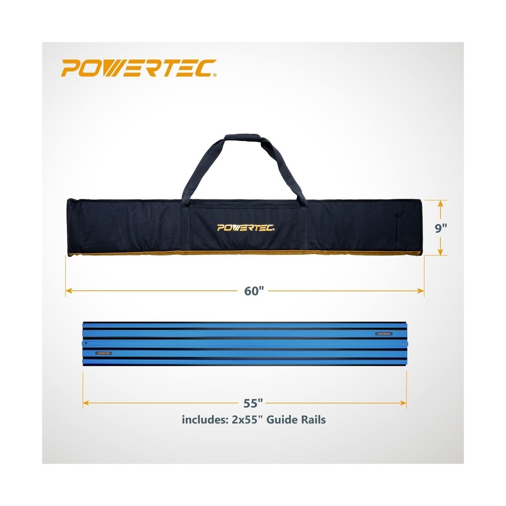 POWERTEC 72152 110" Track Saw Guide Rail Joining Set with Protective Bag for Track Saws | Includes 2x55" Guide Rails and (1) Guide Rail Connector for Woodworking Projects Description This track saw guide rail and adapter kit fits the track saw table series and serves an excellent OEM replacement. Once the connector locks the guide rail in, it interacts with the saw base and is engineered to deliver strong, precise cuts, routing and trimmings with optimal positioning. Our guide rail replacement set features two 55-inch tracks (longer than the standard 50"), along with a new and approved connector for perfect alignment and to make installation quick and easy. The guides are made with extruded aluminum for anti-corrosive and rust resistant properties. your woodworking projects get more complex, these tracks deliver accurate and consistent results that you can depend on. Each guide rail has been tested and optimized for the Track Saw and Plunge Saw series. Set Includes: (2) 55" Track Saw Guide Rails (110" inches when connected) (1) Guide Rail Connector "Please Note: 1 Guide Rail Connectors are required to connect/ join ONE guide rail to another." The Protective Guide Rail Bag by POWERTEC. This large black guide rail bag is designed to provide you with a premium looking carrying bag for your guide rails, tracks and other accessories. Universal Design Possessing a 60 inch exterior, it was specifically designed to accommodate (two) 55" POWERTEC guide rails. Seasonal Protection It is made with tear resistant and water repelling material that will come in handy all year around, and both in and on your way to the jobsite. Additional Storage Although primarily used to tote/ transport a set of guide track rails, this bag is equipped with a reinforced pocket for extra storage space. Features: INCLUDES: (2) 55” extruded aluminum track saw tracks and (1) guide rail connector and a 60" protective carrying bag to transport rails PURPOSE: Provides optimal positioning and makes it super easy for various woodworking applications such cutting, routing and trimming - make straight and precise cuts over 9 feet long PREMIUM QUALITY: Made from professional grade, rust resistant extruded aluminum for high performance durability and the power to deliver heavier, high precision cuts – all while staying in place COMPATIBILITY: Track Saw and Plunge Saw OEM replacements ; Track designed for multiple clamping options, will work with POWERTEC clamps 71423, 71409, and 71410 RAIL BAG FEATURES: This track saw guide rail bag is super durable, Comes equipped with a high quality zipper, heavy duty shoulder strap, ergonomic handle, and pockets for additional storage Product Details: Manufacturer: POWERTEC Part Number: 72152 Item Weight: 12.54 pounds Package Dimensions: 63 x 12.5 x 3 inches Item model number: 72152 Size: 110" Guide Rail (For DeWalt) w/ Bag (Limited) Style: 55"x2 Guide Rail (For DeWalt) w/ Bag Material: Extruded Aluminum Item Package Quantity: 1 Included Components: (2) 55” extruded aluminum track saw tracks and (1) guide rail connector and a 60" protective carrying bag to transport rails Batteries Required?: No Date First Available: November 11, 2024 Delivery We Do Not Ship Outside of the Continental US. Return Policy All items qualify for returns within 30 days of receipt. Seller is responsible for return shipping on any item that is not damaged. Feedback We take our reputation seriously, we buy and sell online, so we understand the value of trust. If you are unsatisfied with your order, please contact us and we will work with you to resolve it to your satisfaction.