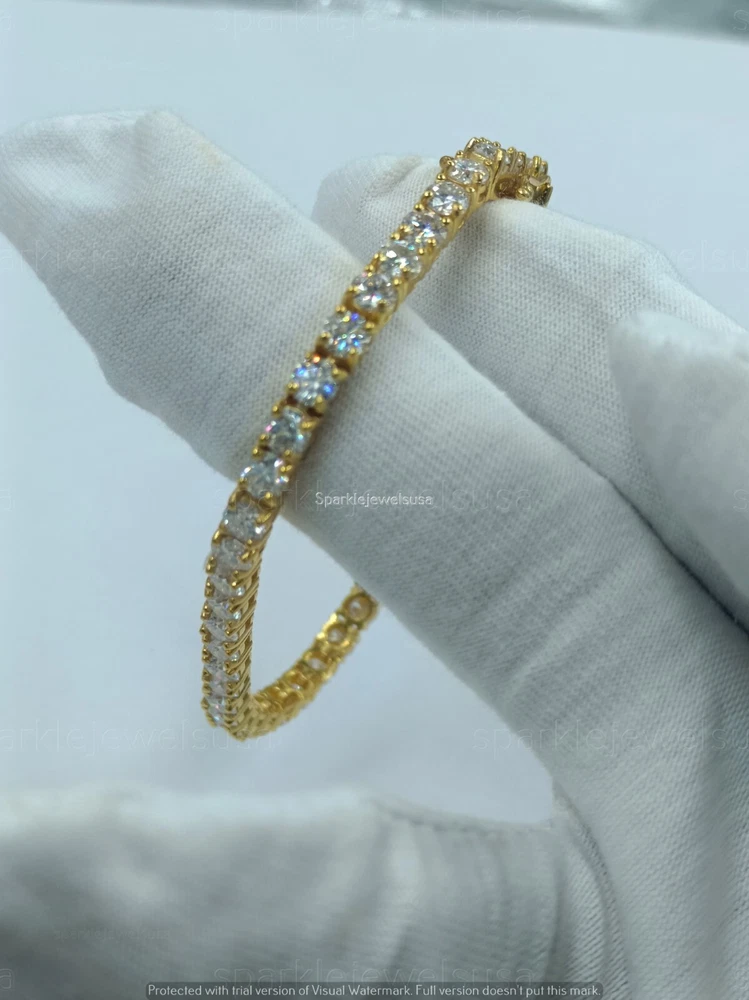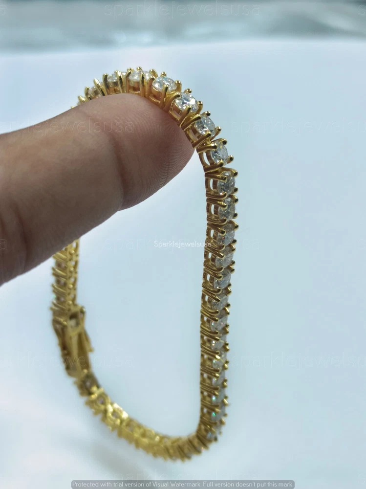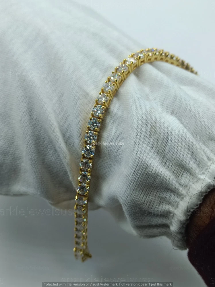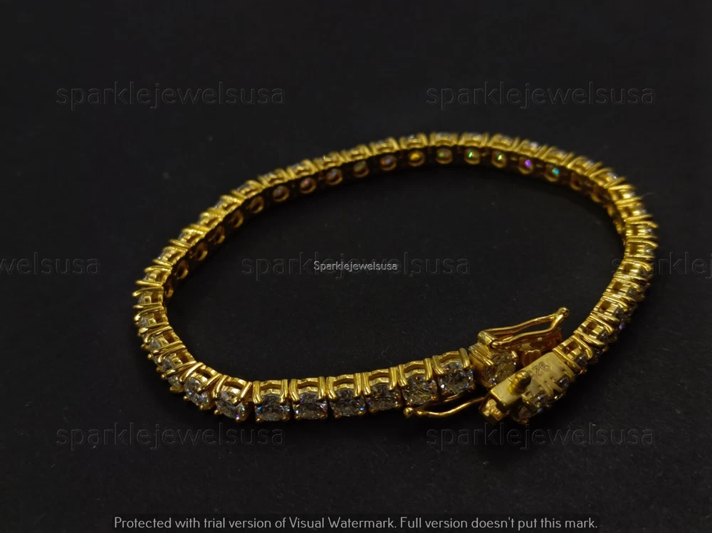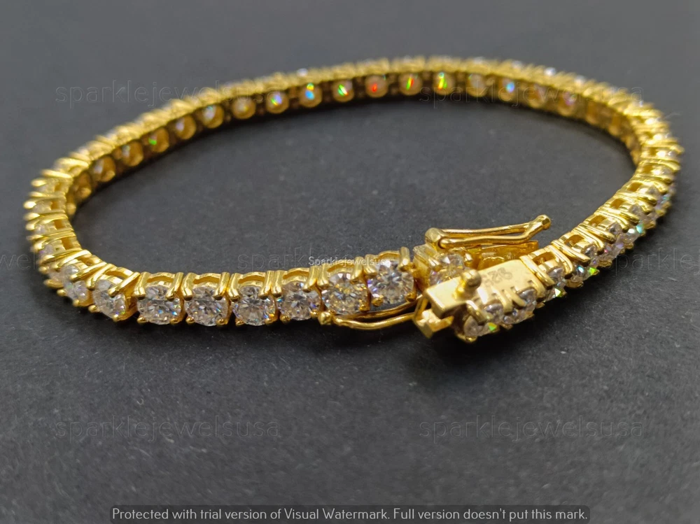 Personalization Instructions: Metal Change, Stone Change , Color Change Main Stone: Moissanite Country/Region of Manufacture: United States Total Carat Weight: 11 Ct Sizable: Yes Seller Warranty: Yes Theme: Beauty Diamond Color Grade: D Base Metal: Silver Main Stone Creation: Lab-Created Type: Bracelet Seller Notes: “It is a brand new product, Always mentioned your size.. This will be 7 inch all moissanite stone” Metal Purity: 925 Shape: Round Setting Style: Prong Brand: Sparklejewels Metal: Yellow Gold Plated Antique: No Gemstone Clarity Grade: Loupe Clean Personalize: Yes Wholesale: Yes Secondary Stone: Moissanite Chain Type: Box Main Stone Treatment: Not Enhanced Cut Grade: Excellent Closure: Box Style: Tennis Item Length: 7 in Diamond Clarity Grade: Very, Very Slightly Included (VVS2) Handmade: Yes Certification: GRA Color: Yellow Number of Gemstones: NA Main Stone Color: White Main Stone Length: 4 mm Main Stone Shape: Round Colored Diamond Intensity: Very Light Main Stone Depth: 0.9mm Features: Nickel-Free Signed: No Vintage: No Occasion: Anniversary Country of Origin: United States Number of Diamonds: 43 Main Stone Width: 4 mm