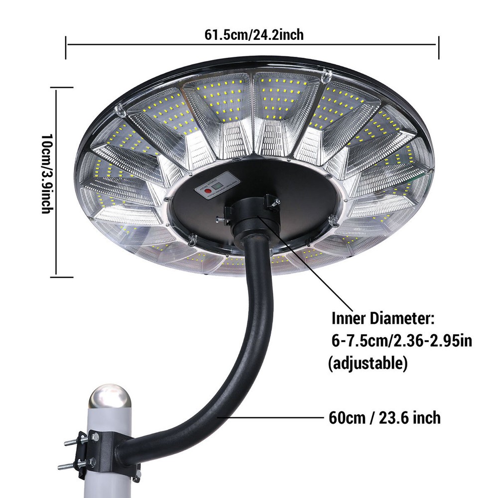 11000W 360° Commercial Solar Street Light 450 LEDs Dusk Dawn Outdoor Yard+Pole 11000W 360° Commercial Solar Street Light 450 LEDs Dusk Dawn Outdoor Yard+Pole 👍 100% Brand New & Excellent quality ✈️ Free & fast shipping, with tracking number provided ✅ Wholesale Price 😊ANY PROBLEM please email us before leaving feedback Product Features: * High Brightness & 360 Degree Wide Angle Lighting The solar street light adopts high-efficiency 450pcs 5730 LED beads, the LED beads have large chips and high lumens, brighter than other LED beads. Upgraded 2-way 360-degree wide-angle lighting, compared with ordinary 180° commercial solar lights, the lighting range is wider and brighter. * Easy to install, wide application This solar light has 2 installation methods, plug-in type (the pole diameter is between 60mm-75mm) and wall-mounted type. The wireless design is easy to install, without annoying wires or adapters, and no need to buy batteries. It is very suitable for places such as unlit driveways and paths, parking lots, garages, gardens, streets, courtyards and squares * 0 Electricity Bill and Super Long Working Time This solar light is charged for 6-8 hours during the day and has a working time of more than 10 hours. Solar powered, no need to pay extra electricity bills. The solar light has a 18000mAh large battery solar panel, and the solar panel with a conversion rate of 25% collects more energy and has a longer lighting time. * 3 lighting modes and wireless remote control Radar body sensing + light control + remote control, intelligent light control system, automatic charging during the day, automatic lighting at night, intelligent human body radar sensing, light up when people come, and turn off when people leave, with a large sensing range. * IP66 waterproof and durable and multi-layer protective packaging The street light is made of high-quality ABS and metal rods, which is durable and can withstand various outdoor harsh weather conditions. Foam box protective packaging to ensure that the product is protected when it is hit or vibrated. Specifications: Brand: LINEBA Color: Black Wattage: 11000W Material: ABS engineering plastic + PC Waterproof grade: IP66 Full power lighting: 10 hours Output current of photovoltaic panel: 4.2A Power of photovoltaic panel: polycrystalline 6V/25W Lamp bead board: 450 beads/5730 lamp beads Color temperature of lamp beads: 8500K-9000K Illumination area: 120-150 square meters Installation height: 4-6m Battery capacity: 18000mAh Product function: light control + intelligent remote control + human body sensing Use scenario: road, garden, courtyard Product description: Three lighting modes are optional: constant light mode; 2H/3H/5H/6H/8H constant light and then turn to radar mode; full radar mode Product size: 615*615*100mm/24.2*24.2*3.9 inches Photovoltaic panel size: 337*495mm/13.3*19.5 inch Bracket diameter: 750mm / 22.0 inches Length: 600mm / 23.6 inches Package includes: 1 x Solar street light 1 x Mounting bracket 1 x Remote control 4 x Expansion screws M10 4 sets x Fixed screws 3 sets x Bracket screws 1 x Instruction manual 1 x Mini wrench 2 x AA batteries 1 x Foam packaging box Payment Shipment Return Feedback Contact us Payment * We Accept Payment via PAYPAL ONLY . * Payment Must be Made within 4 Days of Auction Closing. * Non-Payment may Result in a UPI (Unpaid Item) being Put on Your Account. eBay will Automatically Close Your Account if You Accumulate 4 UPI's total. * Please List Your Special Requests ( Color, Size, Packages, etc. ) in the PAYPAL NOTES SECTION when you make payment. Shipment * Shipping will be handled in 24 business hours after payment got. Ship to PayPal Address only , please confirm it before paying. * Please leave your phone number in the address in case there is an address problem. Return * Returns and Exchange accepted within 60 Days. * Refund will be given as Money Back. * Free Return shipping. * Before you return the defective item,please email us for the RMA, and we will reply you in 24 hours in working days. If you do not get reply please check if your mail box has refused our reply or not, then send to us again, thanks! Feedback If you are satisfied with the transaction please remember to leave us a positive feedback (5-Star) will be much appreciated. Please DO remember to contact us before leaving the neutral (3 stars) , negative feedback (1-2 stars) or opening a case/dispute if any problem caused by the item . Normally your email would get replied within 24 hours on working day and your issue would be followed up carefully until we've reached a consensus! We will try our best to solve the problem and leave you a happy shopping mood here. Thank you! We are not only selling good items, but also selling with excellent after-sale service and a strong sense of responsibility. We will always try our best to find you a satisfactory solution if any problem takes place! Contact us Email muchbuy-outlet at Paypal registered email or ebay message. On Jul 21, 2025 at 18:37:11 PDT, seller added the following information: