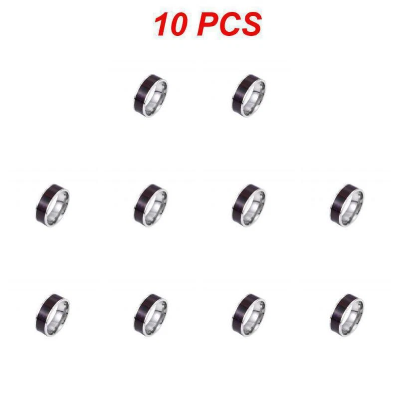 1~10PCS Fashion Men's Wear NFC Smart Ring Stainless Steel Pay Finger Digital Ring Android Phones with Functional Description: High-tech smart ring, smart chip Can be set to open smart door lock, card recharge, smartphone unlock Important file lock on the mobile phone, -click transfer of files, etc., support NFC can be used, welcome to buy Specific operation: Smart ring realizes screen unlocking by touching the NFC signal area of the mobile phone; application lock; quick launch application; sending read business card, website information, etc. Specifications: Material: titanium steel Modeling: Geometry Chip: Ntag213 Style: Smart Style: unisex Treatment process: dripping oil Applicable gifts occasions: festivals Package Included: 1*ring Notes: When measuring the circumference, the rope must be pulled tightly, with a thinner thread (do not use a paper strip) and the measurement position is at the bottom of the finger. If the finger circumference is 55M, it is recommended to select the diameter 17#, which is 56-57MM, then the corresponding choice is to wear the diameter 18#. In addition to 16# and 17# are standard sizes, other sizes are recommended to choose the smaller . The most accurate way is to go to the ring store to measure your own rin