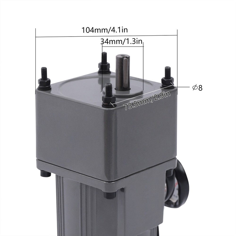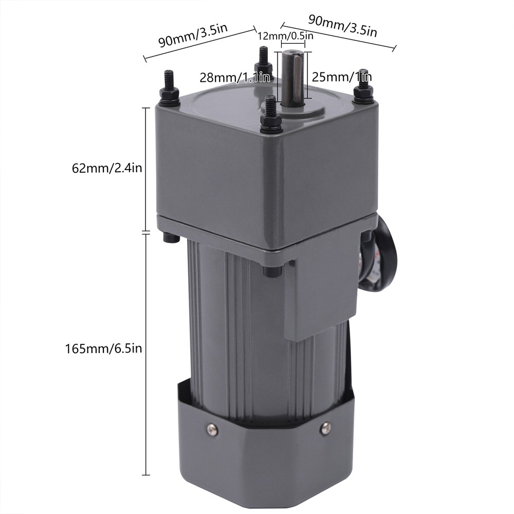 90W Motor Adjustable Speed Frequency Inverter Motor with Gear Controller and Bracket (20 K) Description This gear adjustable motor is primarily used to reduce the speed of a series of gears, thereby producing more power torque. This motor has high power, and high torque, and can also be switched for speed regulation. This high-quality motor with excellent performance is suitable for various industries. Details Copper Coil: The copper coil has better heat dissipation, good conductivity, and longer service life. Thickened Metal Gear: The gear mechanism is precise, the thickness is thicker, the wear resistance is good, the service life is prolonged, and the motor torque is increased. Application It is widely used in food packaging, food mixing, office equipment, medical equipment. 110V 90W Adjustable Speed Rectangular Small Gear Motor +Gear Controller&Bracket 90W Motor Adjustable Speed Frequency Inverter Motor with Gear Controller and Bracket (20 K) Description This gear adjustable motor is primarily used to reduce the speed of a series of gears, thereby producing more power torque. This motor has high power, and high torque, and can also be switched for speed regulation. This high-quality motor with excellent performance is suitable for various industries. Key Features Increasing Power : This motor achieves the purpose of reducing speed through the arrangement of gears, thereby generating more power and making your machine run faster. Stable Performance: The motor adopts copper coils with better heat dissipation, and the torque is large, which can keep the overall performance of the motor stable. Low Noise: This motor adopts an aluminum alloy casing, which has low vibration and low noise during operation. Small Size: This motor is compact in structure and small in size, and will not take up too much space. Adjustable Speed : The motor is equipped with a speed regulator, you can adjust the speed according to your various needs to achieve better power matching and achieve high efficiency of a machine. Complete Accessories: The product includes a complete set of accessories. In addition to the motor, it is also equipped with a bracket, a reducer, and a speed regulator. You do not need to configure other accessories separately, which is very convenient and simple. Long Service Life: The product is made of high-quality and high-strength metal, and the metal surface is painted, so it is anti-rust and anti-corrosion, and durable. High Torque: The motor has large torque, strong speed-up capability, and a stronger overload capacity, and can reach the power required by the machine faster. Trustworthy: The manufacturer has been committed to the production of motors and gear motors for a long time, and the mechanical equipment is excellent. This motor has passed the 3C certification, and its quality and professionalism are quite trustworthy. Easy to Use: The overall motor is complete, and the governor is also equipped with corresponding numbers and presentations. You only need to adjust to the required speed, and the operation is very simple. Details Copper Coil: The copper coil has better heat dissipation, good conductivity, and longer service life. Thickened Metal Gear: The gear mechanism is precise, the thickness is thicker, the wear resistance is good, the service life is prolonged, and the motor torque is increased. Application It is widely used in food packaging, food mixing, office equipment, medical equipment, packaging machinery, printing machinery, leather shoe polishing machinery, metal cutting machine tools, etc. It is suitable for the packaging industry, machinery and machinery industry, transportation equipment, textile machinery, electric welding machine, automobile industry, etc. Specification Material: Iron, Aluminum Alloy, Copper Color: Black Shape: Rectangular Gross Weight: 5.13kg/11.3lbs Product Weight: 4.50kg/9.9lbs Package Size: 28.5*24.1*12.5cm/11.2*9.5*4.9inch Reducer Size: 6.2*9*9cm/2.4*3.5*3.5inch Motor Size: 16.5*9*9cm/6.5*3.5*3.5inch Shaft Size: 1.2*2.8cm/0.5*1.1inch Key Depth: 2.5cm/1.0inch Keyway Size: 0.4cm/0.2inch Distance Between Diagonal Mounting Holes: 10.4cm/4.1inch Distance Between Mounting Holes on the Same Side: 7.35cm/2.9inch Diameter of Disc Stop: 3.4cm/1.3inch Speed Regulator Size: 6*9*10cm/2.4*3.5*3.9inch Voltage: 110V Rated Power: 90W Engine Speed Ratio: 20K Package Included 1 x Motor 1 x Reducer 1 x Speed Regulator 1 x Bracket Notes Do not plug or unplug the lead wire when the power is on. The product does not include a power cord, which needs to be purchased separately. Please allow the slight color difference caused by the shooting light and 1-3 cm error due to manual measurement, and make sure you do not mind before ordering. Payment Delivery details Terms of sales About us Contact us Payment We accept ebay payment 。 Fees such as import duties, taxes are not included in the item price or shipping costs. These charges are the buyer's responsibility. Delivery details Shipping: 2-9 working days to: USA Terms of sales We maintain high standards of excellence and strive for hundred percent customer satisfaction. Feedback is very important to us. We hope that you contact us immediately before you give neutral or negative feedback, so that we can address your concerns. It is impossible to address issues if we do not know about them! About us Your satis faction is our ultimate goal. We work hard to earn your trust and future business. Our certified technicians have tested each item before shipping. The unit comes with 1 year limited warranty on all manufacturing defects. a) If you receive a defective item, you may return it or ask for a discount. Please contact us within 14 days after you receive the package. b) What you returned must be intact and in its original packaging as re? u. Customer is responsible for shipping costs of the returned item. c) We will cover the cost of shipping back t with the shipping rate indicated in the registration page. We will se
