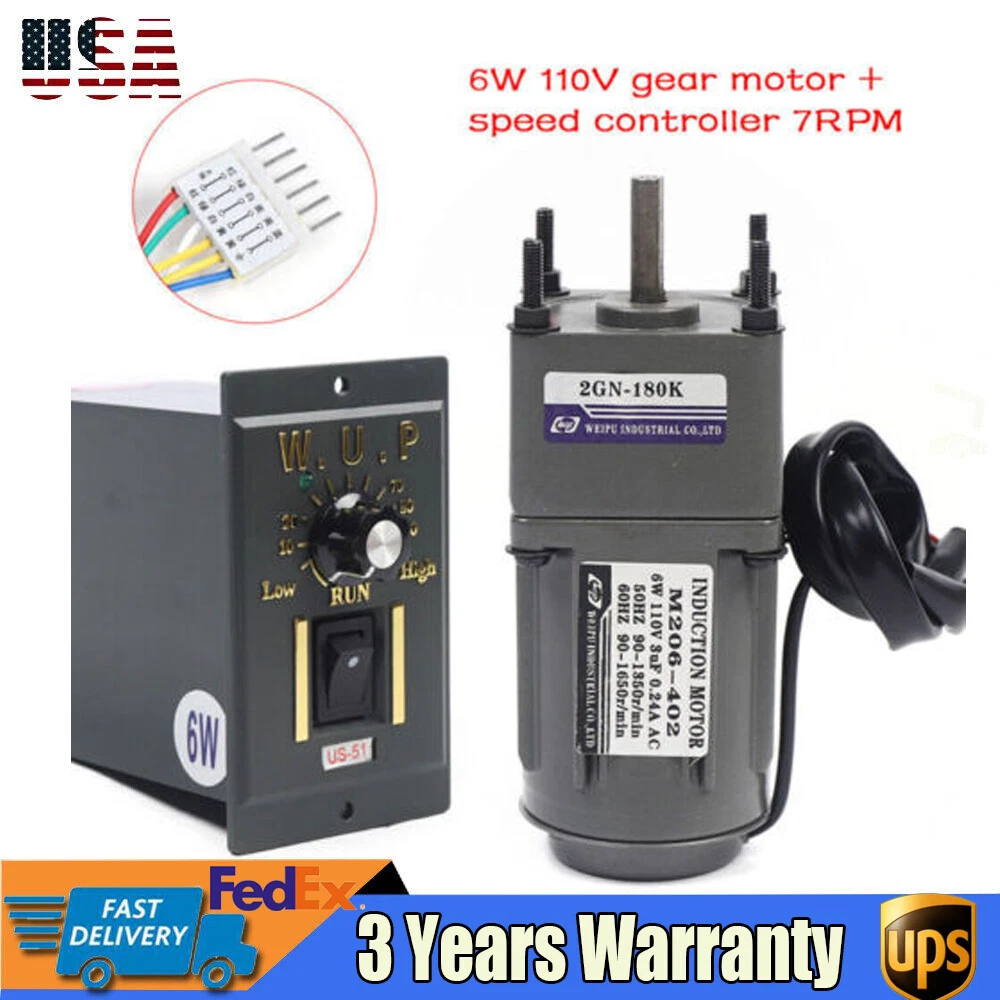6W AC110V gear motor electric motor variable speed controller 1:180 7RPM Specification: l Name: geared motor l Rated voltage: AC110 V l Rated speed: 7.5RPM/MIN l Reduction ratio: 1:180180K l Power Phase: single-phase l 6W geared motor88mm*60mm*50mm l Reducer size: 43mm*60mm*50mm l 6W gear motor Output speed: 7.5~0RPM Highlights: l Flexible installation l Efficient works l Torque large l Smooth operation l Long working life Note: 1. Under different deceleration ratio, the output shaft speed is different. The output shaft speed is equal to the motor speed of 1350 rpm divided by the deceleration ratio. 2. If you want to know the detailed product size before purchase, please ask our customer service for it. Packages: 1 * Gear Motor 1 * Speed Governor 1 * reducer Not 110V AC Electric Gear Motor & Variable Speed Reduction Controller 1:180 7.5RPM Description 6W AC110V gear motor electric motor variable speed controller 1:180 7RPM Specification: l Name: geared motor l Rated voltage: AC110 V l Rated speed: 7.5RPM/MIN l Reduction ratio: 1:180180K l Power Phase: single-phase l 6W geared motor88mm*60mm*50mm l Reducer size: 43mm*60mm*50mm l 6W gear motor Output speed: 7.5~0RPM Highlights: l Flexible installation l Efficient works l Torque large l Smooth operation l Long working life Note: 1. Under different deceleration ratio, the output shaft speed is different. The output shaft speed is equal to the motor speed of 1350 rpm divided by the deceleration ratio. 2. If you want to know the detailed product size before purchase, please ask our customer service for it. Packages: 1 * Gear Motor 1 * Speed Governor 1 * reducer NoteBased on the industrial standard, to meet different needs of customers, our motor does not include the power cord, you need to purchase the power cord to connect. Welcome to yujuanwangluo~ π If you have any question , please contact us , and we will reply you as soon as possible. Thanks!!! Welcome to yujuanwangluo~ π If you have any question , please contact us , and we will reply you as soon as possible. Thanks!!! Welcome to yujuanwangluo ~ π If you have any question , please contact us , and we will reply you as soon as possible. Thanks!!! Payment Delivery details Terms of sales About us Contact us Payment We accept ebay payment γ Fees such as import duties, taxes are not included in the item price or shipping costs. These charges are the buyer's responsibility. Delivery details Shipping: 2-9 working days to: USA Terms of sales We maintain high standards of excellence and strive for hundred percent customer satisfaction. Feedback is very important to us. We hope that you contact us immediately before you give neutral or negative feedback, so that we can address your concerns. It is impossible to address issues if we do not know about them! About us Your satis faction is our ultimate goal. We work hard to earn your trust and future business. Our certified technicians have tested each item before shipping. The unit comes with 1 year limited warranty on all manufacturing defects. a) If you receive a defective item, you may return it or ask for a discount. Please contact us within 14 days after you receive the package. b) What you returned must be intact and in its original packaging as re? u. Customer is responsible for shipping costs of the returned item. c) We will cover the cost of shipping back t with the shipping rate indicated in the registration page. We will send you a new unit or refund the full payment you paid. Thank you. Contact us Business Hour Business Hour: Monday To Friday: 8:30 AM to 5:00 PM (Beijing China time) Due to time zones, our reply to your questions may not be immediately. But within above working time, we will reply your email within 24 hours. If it's non-workdays, please kindly be patient and wait till Monday. Please contact us with ebay message. Please feel free to contact us if you have any questions. Monday To Friday: 8:30 AM to 5:00 PM (Beijing China time) Due to time zones, our reply to your questions may not be immediately. But within above working time, we will reply your email within 24 hours. If it's non-workdays, please kindly be patient and wait till Monday. Please contact us with ebay message. Please feel free to contact us if you have any questions. On Dec 18, 2024 at 18:47:07 PST, seller added the following information: