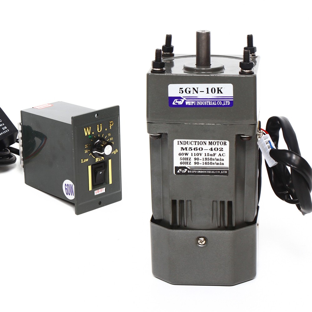 110V AC Gear Motor with Variable Speed Controller 0-135 RPM 1:10 Ratio