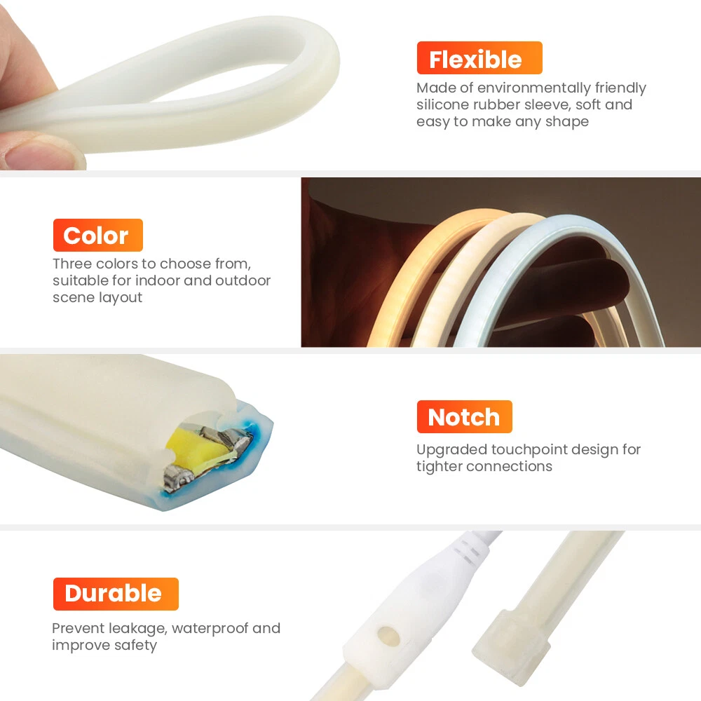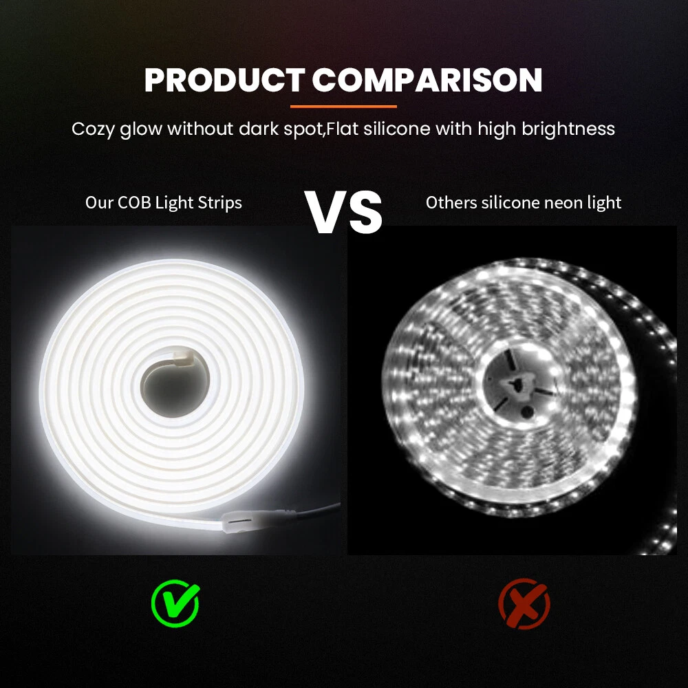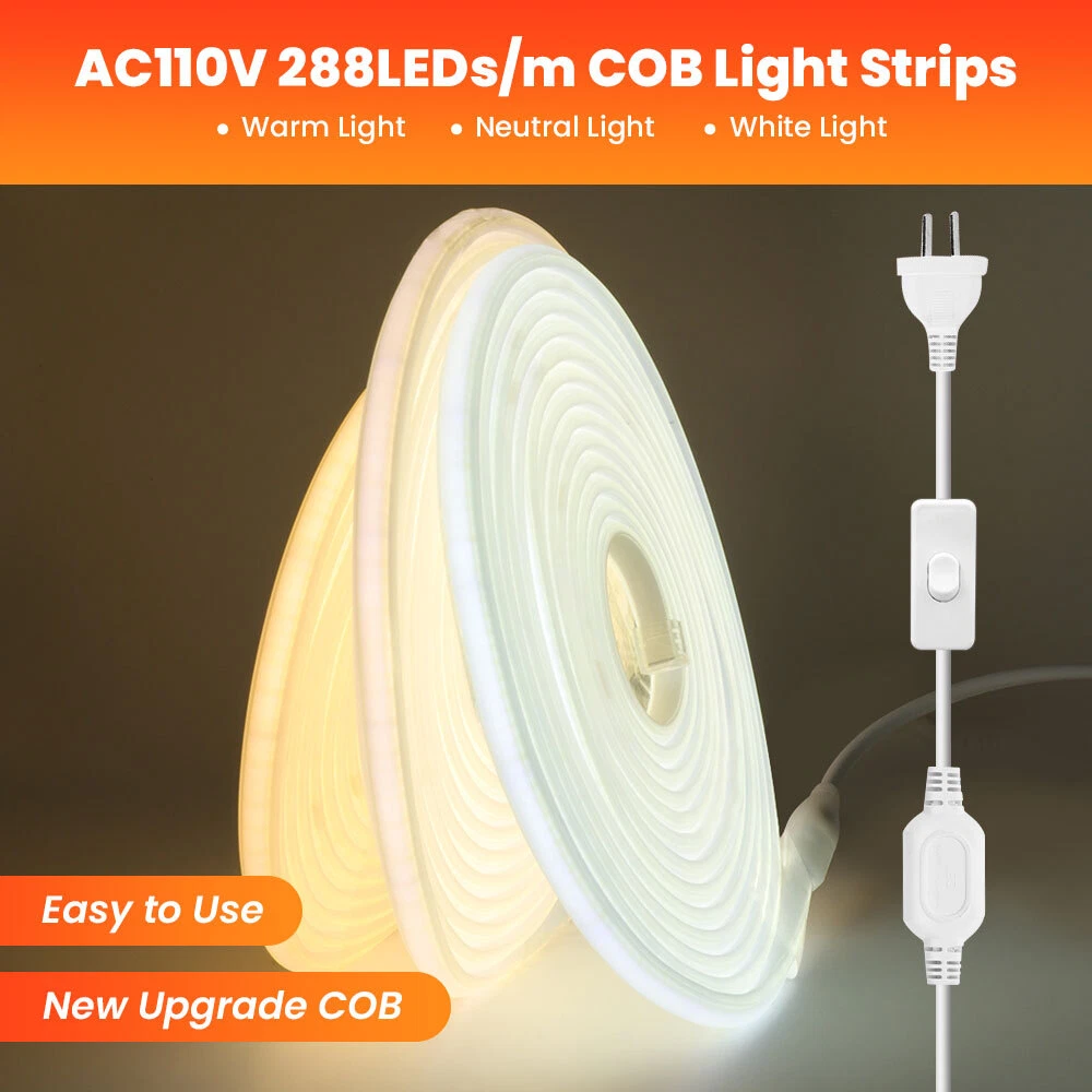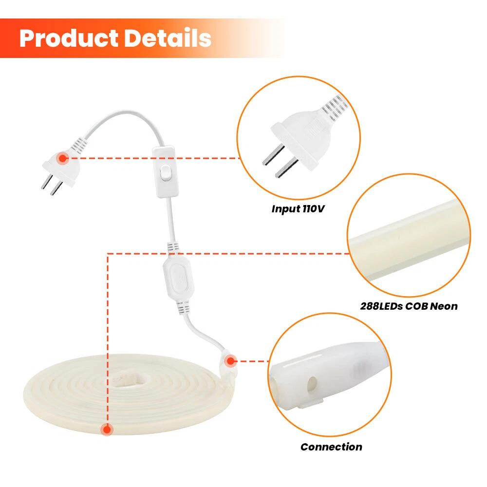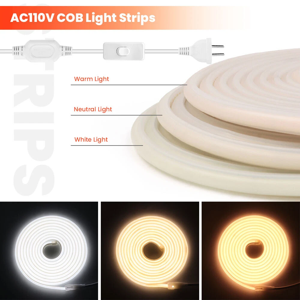 110V COB LED Neon Strip Lights Waterproof Flexible Tape Rope Cabinet Kitchen USA