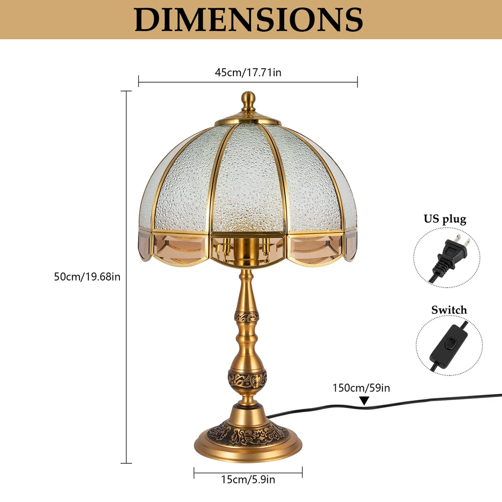 110V Elegant Table Lamp Table Desk Reading Light For Small Space Bedroom Home Description This antique-style table lamp is not only a great lighting but also a beautiful room decoration. The E26 lamp holder applies to various types of bulbs(not included), together with the glass lampshade, creating great lighting effects. Whether you put it in your reading corner or on your bedside table, it will accompany you through every peaceful night. Key Features Made to Last: The premium copper and iron materials and the electroplating process bring the product high hardness, corrosion resistance , rust resistance , and long service life. Antique Appearance: The dome-shaped lampshade with wave-shaped copper gold color edges and antique style support pole and base make it an eye-catching decoration in various styles of rooms. Wide Compatibility: The E26 standard lamp holder allows you to install different types of E26 bulbs(not included) such as LED, energy-saving bulbs, and incandescent light bulbs to meet your preference while allowing for convenient replacement and purchase. Easy to Use: The 4.92-foot power cord and the one-touch button allow you to easily control the lights on and off. Effortless Clean: With a simple structure and smooth surface, you can easily wipe the dust off with a soft cloth. Protective Package: To prevent the product from being damaged during transportation, we packed it with foam to protect your products to the maximum extent possible. Ideal Gift: Its classic appearance makes it an ideal housewarming gift for your friends, families, and colleagues. Customer Service: We aim to provide quality products and services. If you have any problems, please feel free to contact us. We will reply and solve the problem for you as soon as possible. Details Sturdy Base: The 5.9-inch base with an EVA non-slip bottom gives the lamp sturdy support and can effectively prevent it from sliding on smooth surfaces during daily use. Glass Lampshade: The translucent glass lampshade can ensure the brightness of the light while avoiding strong light damage to the eyes. Application With a lighting area of approximately 53.82ft², it is suitable for bedrooms, dining rooms, study rooms, living rooms, balconies, clothing stores, cafes, hotels, bedsides, end tables, working tables, and other places. Specifications Color: Copper Color Style: Elegant Plug Type: US Standard Light Source: 1*E26 Bulb(Not Included) Efficiency: E Mount Type: Tabletop Assembly Required: Yes Material: Copper, Iron, EVA, Glass Process: Electroplated Voltage: 110V Maximum Bulb Power: 40W Illumination Area: About 5m²/53.82ft² Power Cord Length: 1.5m/4.92ft Product Height: 50cm/19.68in Base Diameter: 15cm/5.9in Lampshade Diameter: 45cm/17.71in Package Included 1*Table Lamp Notes Please check the size carefully before ordering. Please cut off the power before cleaning it. Please allow the slight color difference caused by the shooting light and 1-3cm error due to manual measurement, and make sure you do not mind before you order. Payment Delivery details Terms of sales About us Contact us Payment We accept ebay payment 。 Fees such as import duties, taxes are not included in the item price or shipping costs. These charges are the buyer's responsibility. Delivery details Shipping: 2-9 working days to: USA Terms of sales We maintain high standards of excellence and strive for hundred percent customer satisfaction. Feedback is very important to us. We hope that you contact us immediately before you give neutral or negative feedback, so that we can address your concerns. It is impossible to address issues if we do not know about them! About us Your satis faction is our ultimate goal. We work hard to earn your trust and future business. Our certified technicians have tested each item before shipping. The unit comes with 1 year limited warranty on all manufacturing defects. a) If you receive a defective item, you may return it or ask for a discount. Please contact us within 14 days after you receive the package. b) What you returned must be intact and in its original packaging as re? u. Customer is responsible for shipping costs of the returned item. c) We will cover the cost of shipping back t with the shipping rate indicated in the registration page. We will send you a new unit or refund the full payment you paid. Thank you. Contact us Business Hour Business Hour: Monday To Friday: 8:30 AM to 5:00 PM (Beijing China time) Due to time zones, our reply to your questions may not be immediately. But within above working time, we will reply your email within 24 hours. If it's non-workdays, please kindly be patient and wait till Monday. Please contact us with ebay message. Please feel free to contact us if you have any questions. Monday To Friday: 8:30 AM to 5:00 PM (Beijing China time) Due to time zones, our reply to your questions may not be immediately. But within above working time, we will reply your email within 24 hours. If it's non-workdays, please kindly be patient and wait till Monday. Please contact us with ebay message. Please feel free to contact us if you have any questions. Country/Region of Manufacture Unknown Herstellergarantie 3 Jahre Brand Unbranded Type Desk Lamp Color Copper Color Style Elegant Plug Type US Standard Light Source 1*E26 Bulb(Not Included) Efficiency E Mount Type Tabletop Assembly Required Yes Material Copper, Iron, EVA, Glass Process Electroplated Voltage 110V Maximum Bulb Power 40W Illumination Area About 5m²/53.82ft² Power Cord Length 1.5m/4.92ft Product Height 50cm/19.68in Base Diameter 15cm/5.9in Lampshade Diameter 45cm/17.71in