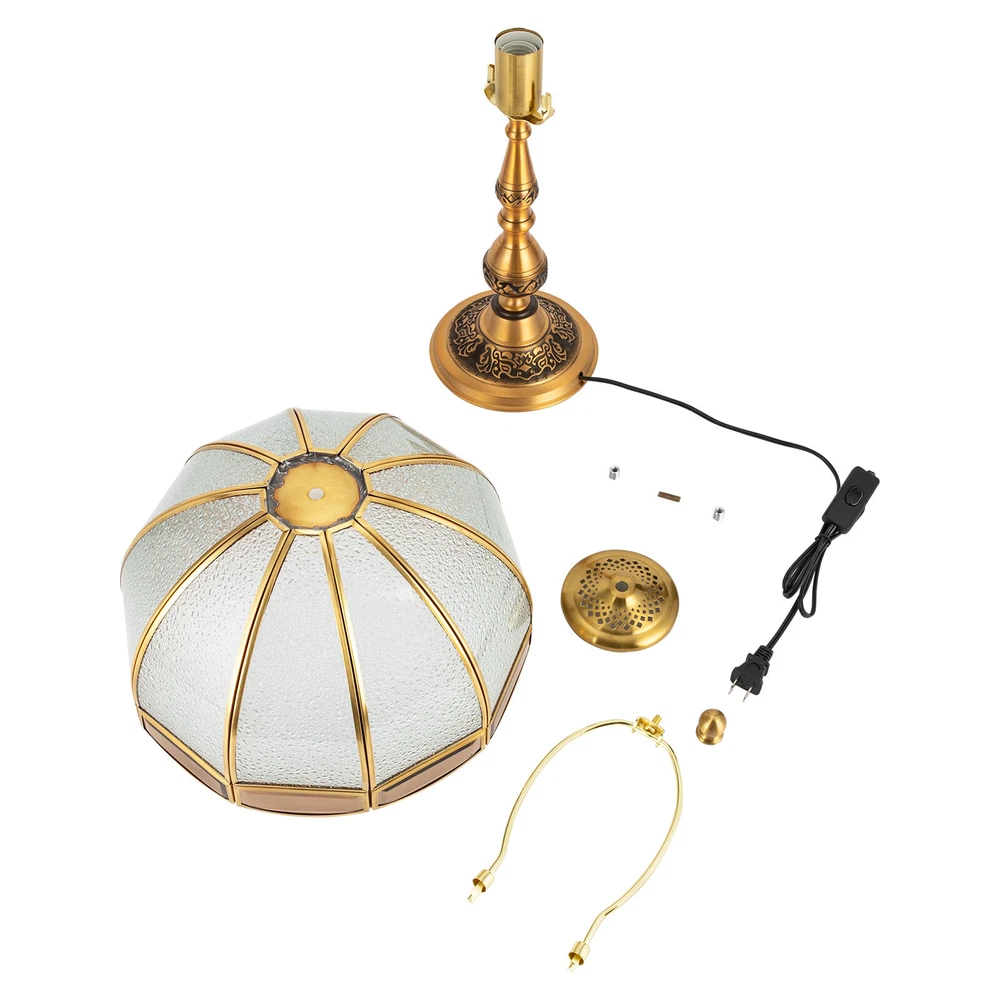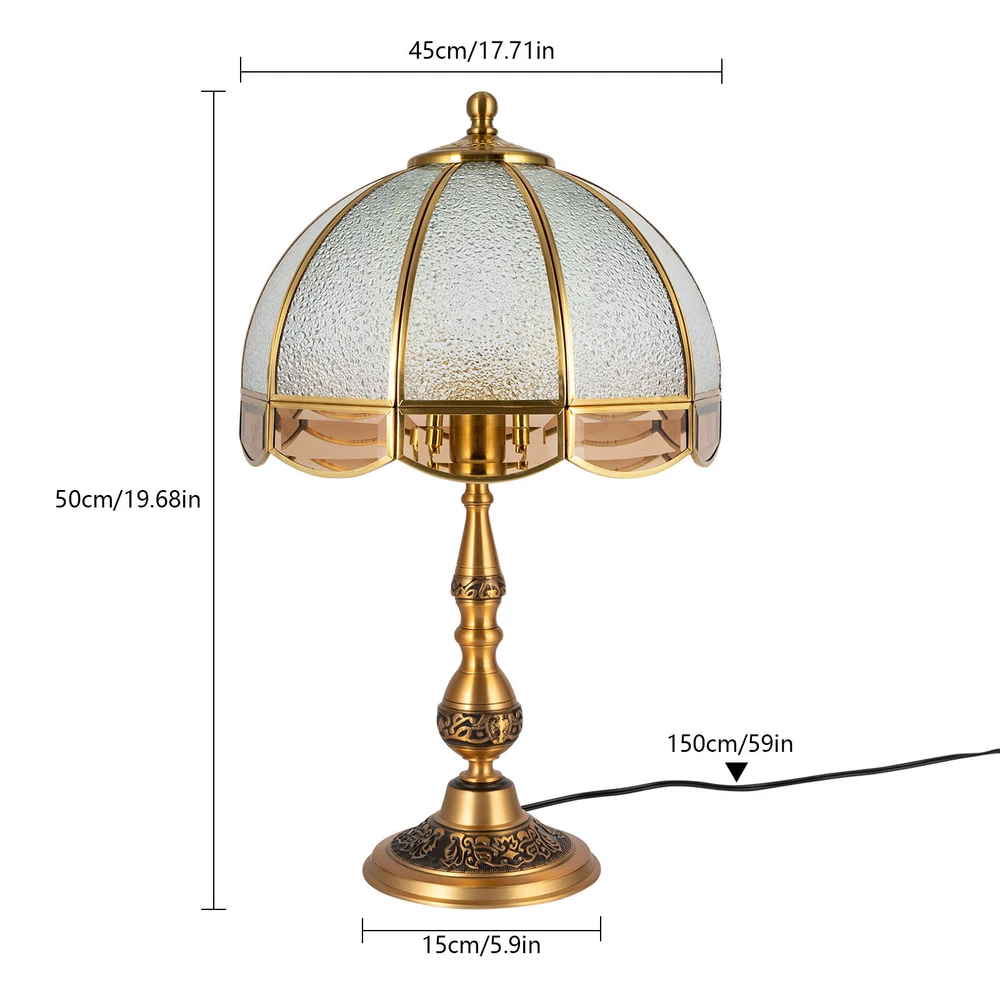 Color: Copper Color Material: Copper, Iron, EVA, Glass Brand: Unbranded Process: Electroplated Base Diameter: 15cm/5.9in gtin13: Does not apply Product Height: 50cm/19.68in Mount Type: Tabletop Type: Desk Lamp Herstellergarantie: 3 Jahre Voltage: 110V UPC: Does not apply Assembly Required:  Yes Light Source: 1*E26 Bulb(Not Included) Power Cord Length: 1.5m/4.92ft Lampshade Diameter: 45cm/17.71in Illumination Area: About 5m²/53.82ft² Plug Type: US Standard Efficiency: E Country/Region of Manufacture: Unknown Style: Elegant Maximum Bulb Power: 40W