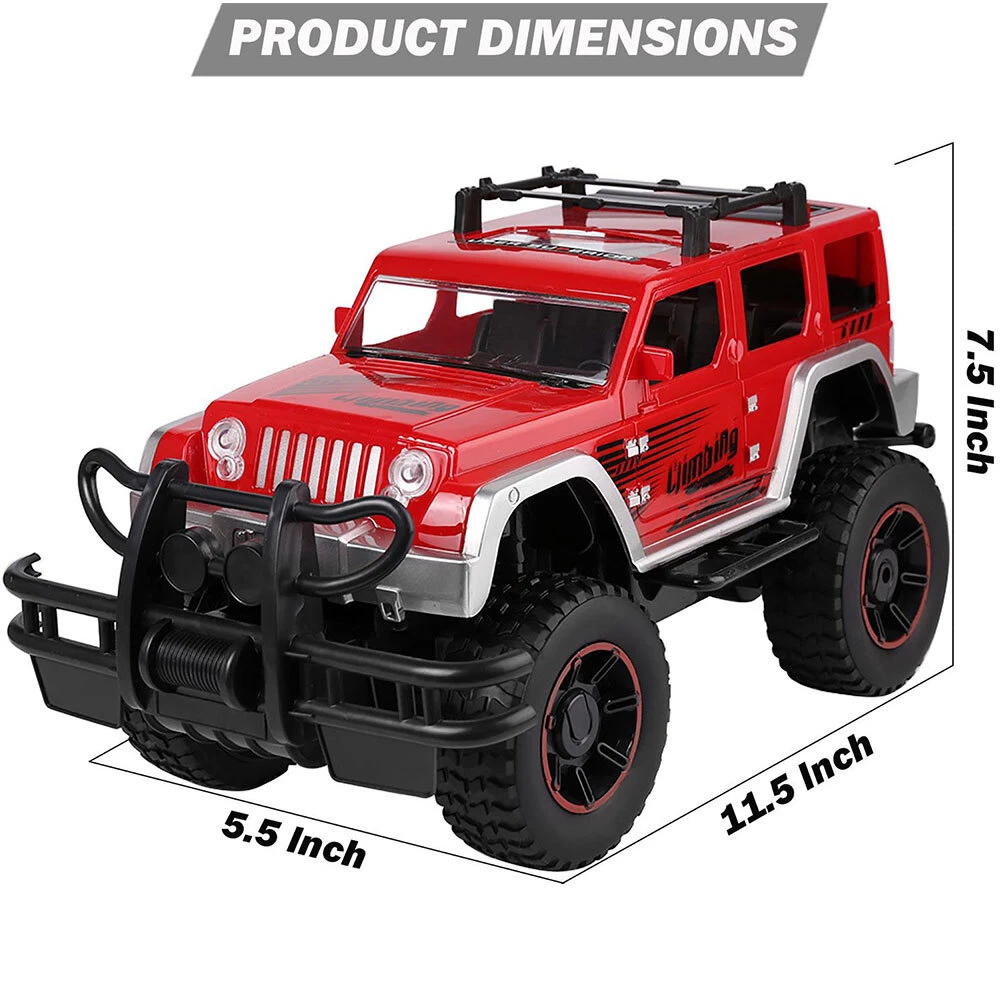 1/12 Kids RC Remote Control High Speed Off-Road Truck Toy Xmas Gift With Lights Features: 1:12 Scale Kids Electric Battery Operated RC Remote Control Off-Road High Speed All Terrain Truck Toy Vehicle Made of high quality ABS plastic material,safe and durable Full functions of the remote control include forward, backward, turn right and turn left Highly detailed interior / exterior- high gloss paint job with graphics, 4-wheel independent suspension system , working headlights, authentic sounds,realistic truck seat,etc The front of the body have strong crash-proof bumper to effectively protect the body and frame Anti-slip rubber tire provide a strong grip, bring favorable running conditions, suitable for all different terrains,like grass, sand,tile floor, cement floor,etc Truck requires 6 AA batteries( Not Included ), remote control requires 2 AA batteries( Not Included ) Specification: Condition:100 % Brand new with box Color:Red Material: Plastic Remote control: 27MHz For Age:3+ Dimensions : 11.5 in x 5.5 in x 7.5 in Package Included: 1 x RC Truck 1 x Remote Control California Prop 65 Warning Payment and Shipping Feedback California Prop 65 Warning ⚠ WARNING : This product can expose you to chemicals including DEHP, which is known to the State of California to cause cancer and birth defects or other reproductive harm. For more information go to P65Warnings.ca.gov. Payment and Shipping We accept PayPal only. Our Business Hours is Monday through Friday, 10am to 5pm. All Orders will be shipped with24 hours after payment was confirmed by PayPal. Please confirm your Address in PayPal is correct. Returns are accepted within 30 days of receipt of your products. All items need to be return back to our facility, before any exchange or refund can be processed. Please contact us to get RMA number first. you return will send it back to our US Warehouse. We will process your refund or exchange after receiving your shipment. Feedback We give each buyer a positive feedback rating as soon as they complete the purchase. We feel that you have upheld your end of the transaction and we thank you! After you receive your item and you are thoroughly delighted, please leave us a positive 5 Star rating. Our livelihood is tied to our eBay business and anything less than a 5 Star rating affects us financially. We try hard to make your transaction as smooth as possible for you. And if there are any problems regarding the item description, shipping time, shipping charges, our communication or anything else, please allow us the chance to correct the problem before leaving a less than stellar 5 star rating. Again, we thank you for your business and appreciate your patronage. God bless.