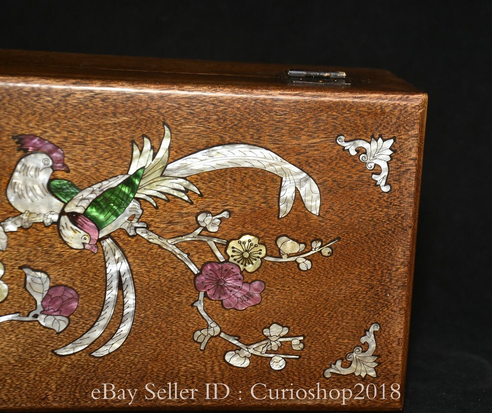 11.2" Old Chinese Huali Wood Inlaid Shell Carving Flower Bird Jewelry box . Very Rare and high Value for collection ! We are deal business on antique over 30 years now and very happy to showing our collection items on ebay for learning together. In our collection, The difference kinds of Old wood carving Sculpture or Furniture . Natural Jade Carving , Antique Hongshan Culture Statue or Pendant , Shoushan Stone carving or seals. Antique porcelain vase or vessel. Tibet Buddhism Religion Items is our specialty.We experienced, vision, provides the high-quality service for you Please add us to your Favorite seller and enjoy order. 20210522JIA Description Note: All the items in my store are genuine and original as ebay photos when you receive so Please bid with confidence and if you have any question please feel free to Email/Message me. Package will be shipped in 24 hours and 30 days return was accepted. 100% payment Guarantee ! If you have any questions, or when you want to submit a dispute case, please send an e-mail first, I will reply within 12 hours, all the problems can be solved, I accept the return money and 100% refund , so that all customers satisfaction is my request. size: Height:4 inch Width: 11.2 inch Thickness: 0.6 inch weight with packaging round 1.5 kg Shipping cost to all over the world in free cost ! Payment Only accept paypal payments. Delivery details shipping to USA : about 7-15 days to arrive. International shipping: about 10-20 days to arrive. Terms of sales A: No, no reason to accept any return. If you need to return it, you must bear the return shipping! We are trying to resolve easily. Please go ahead to contact us if you have any problem. We will resolve asap. B: Please do not leave neutral feedback or negative feedback for any reason, because we will try best to resolve well for your happy and we believe any mistake or misunderstand able to fixed. Thanks . C: honest, trustworthy, peace, to every buyer good shopping experience is our aim, wish for world peace! Combine Discount We recommend the combine shipping , If you won more items once that we will give you a 5 -20% discount off Original price ( Start from second item ) , Discount standard as follow : Buy 2-3 items once we can offer you the 10% discount on Total cost , Buy 4-6 items once we can offer you the 15% discount on Total cost , Buy 7-10 items able to get 20% discount on Total cost. Over 10 items please feel free to email us request for especially price ! Contact us Please pay within 7 days of purchase, otherwise, ebay will automatically open unpaid case. If you have any question, please contact us, we will give you the answer in a timely manner.
