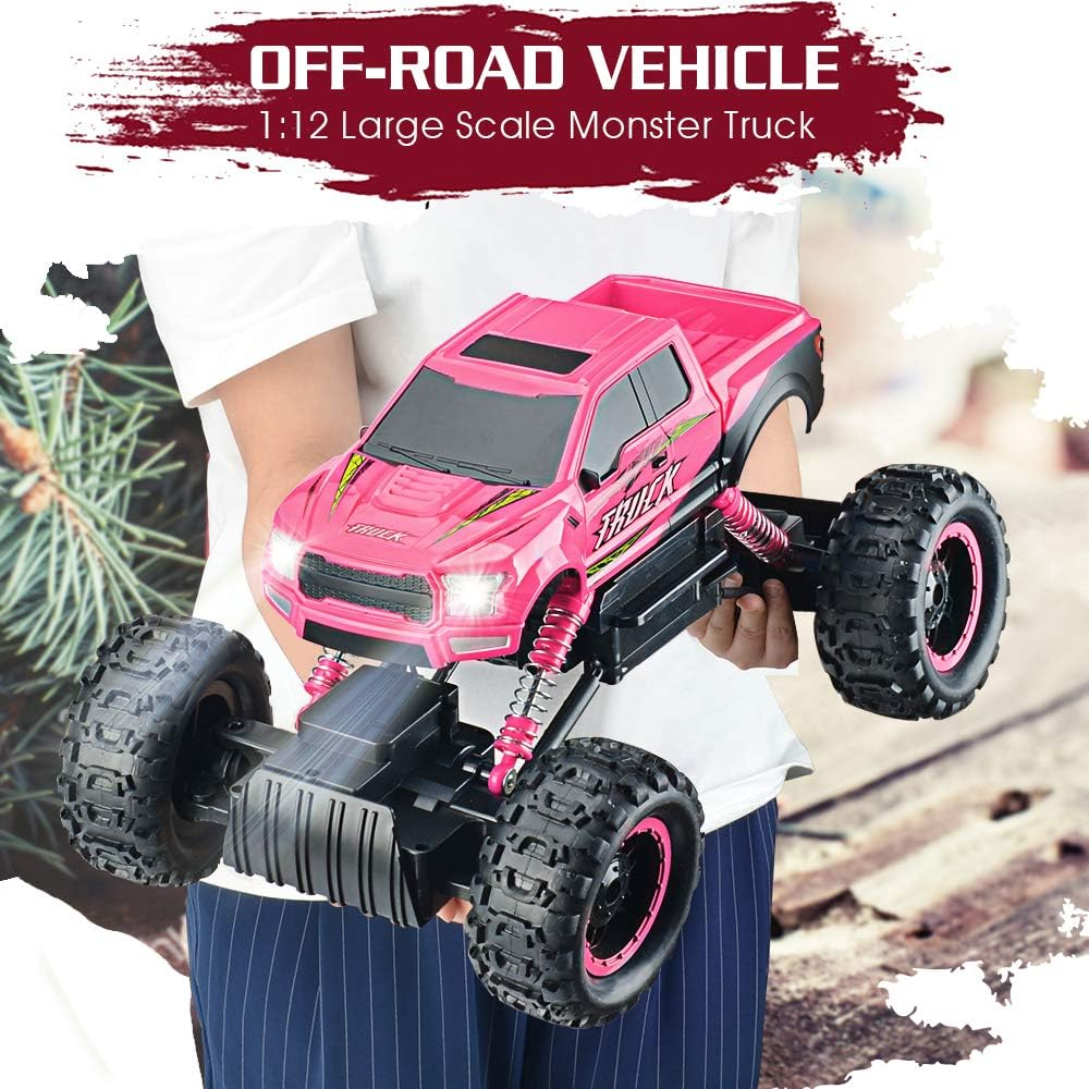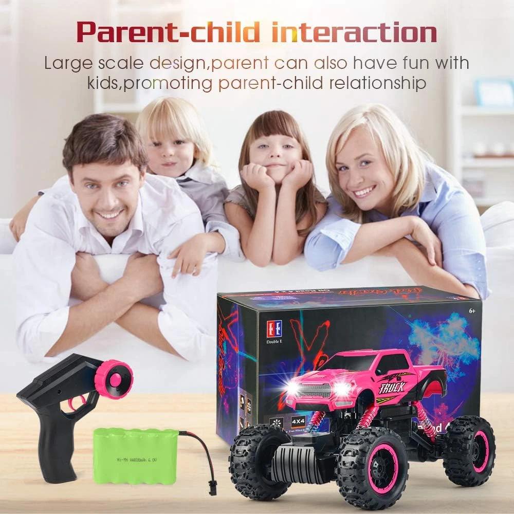 ⭐⭐⭐⭐⭐ Top Rated by Similar Buyers Realistic Off-Road Vehicle: The 1/12 large RC car looks realistic like a real thing. With anti-slip tires and shock absorbers, it can run on multiple terrains including beach, sand, rock, concrete road, etc. Special color for girls toys age 8-10 years old, gifts for girls 6 to 10 years old. Powerful Dual Motors, Anti Crash Bumper: Four-wheel drive and two built-in motors provide this monster trucks with strong power to run easily and stably on different surfase. It can even climb slope about 45-degree and over objects indoor/outdoor. The anti-collision car bumper protects the body and frame. Independent Signal, No interference: The wireless control system runs on a 2.4 GHZ frequency with a range of up to 100 feet, providing a stable signal and non-jamming function. Multiple users can play at the same time without interference. Gift Ideas for Girls: The DOUBLE E RC car comes with LED headlights and DIY stickers. You can make it what your kids like. It's a great gift idea for Chiristmas, birthday, party, and other festivals, and perfect for family time. Put your work on hold and enjoy exploring the field of automotive technology with your kids. Quality and Service Promise: DOUBLE E rc trucks are in compliance with toys dafety requirements of CPSIA and ASTM and obtained CPC certificate. We offer 30-day unconditional exchange/return and one-year part warranty. Please feel free to reach us for any concern at any time. Ships FREE from the US