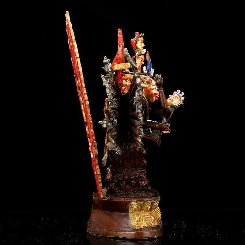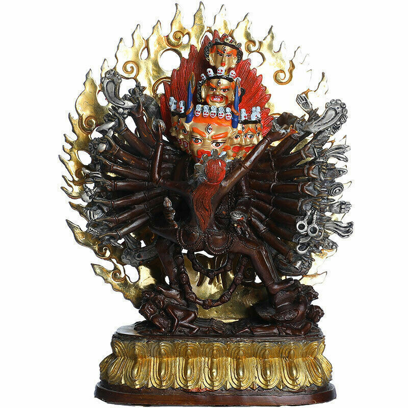 11.2" Tibetan Buddhism Nepal bronze gilt silver temple Yamantaka statue Product Description SIZE: diameter:22 High:28.5(cm) SIZE: diameter:8.6 High:11.2 (inch) Condition: Good condition Origin: China