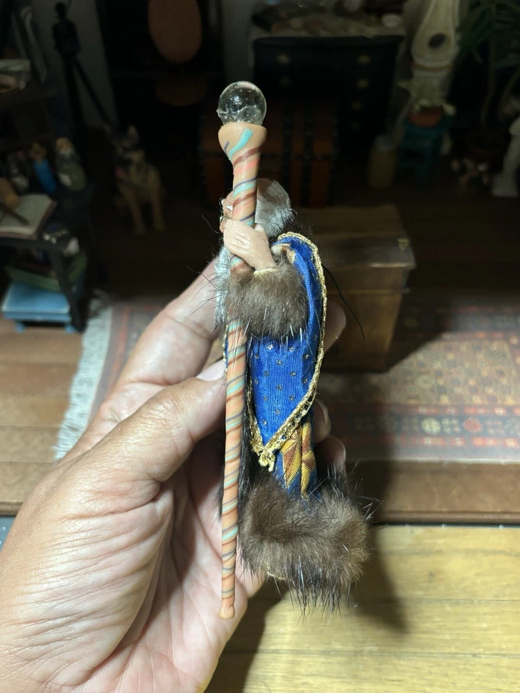 1/12th scale dollhouse miniature doll. Please see pictures for details and size. New from my collection. Never displayed. This listing is for the one doll. The other items in the background are photography props. I have other listings and happy to combine shipping. If you win, please do not pay until you have completed bidding on the other listings and request an updated invoice.