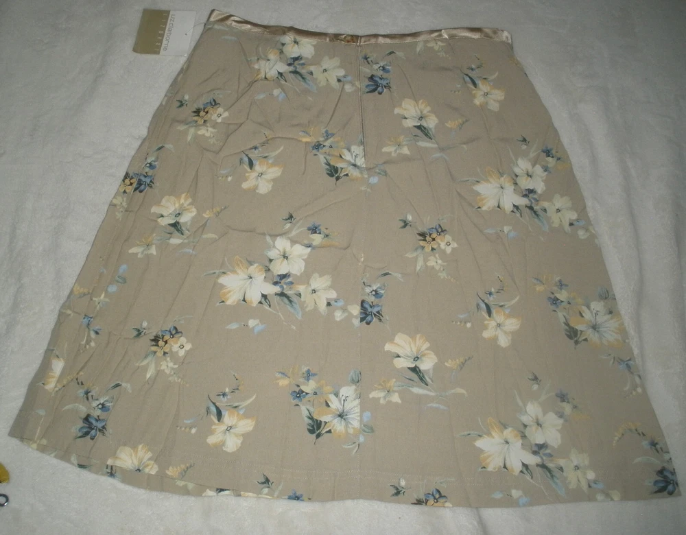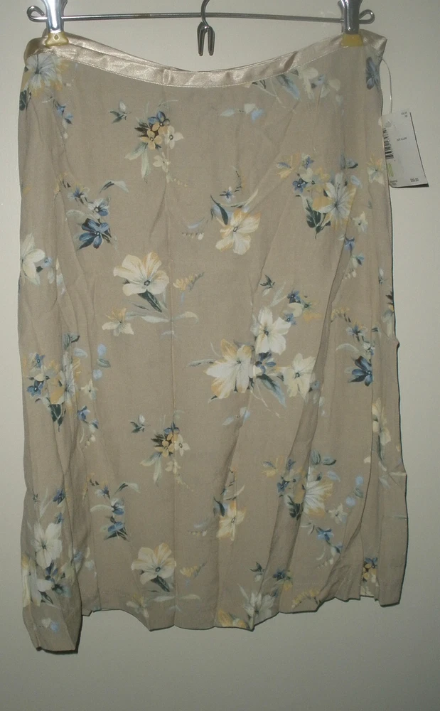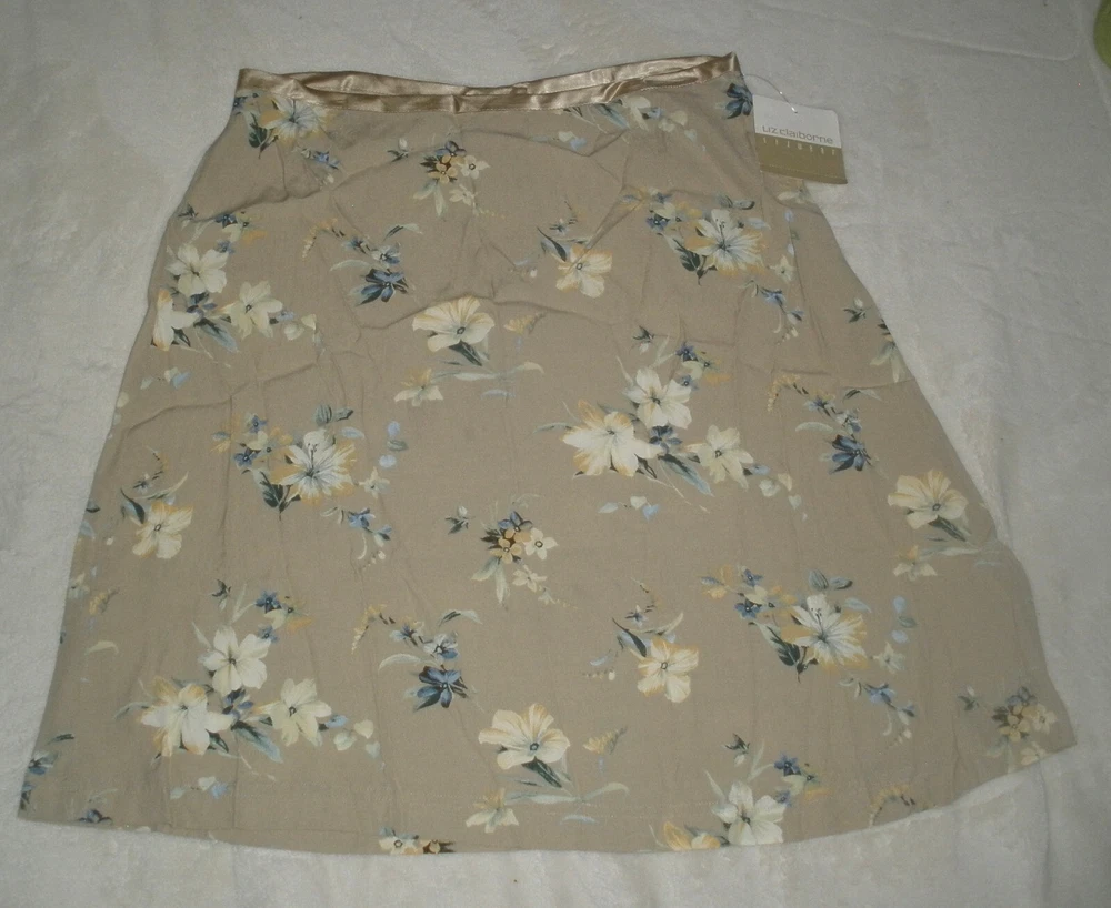 #1133 Misses skirt 10 Liz Claiborne Lizwea A-line tan satin ribbon Floral NWT