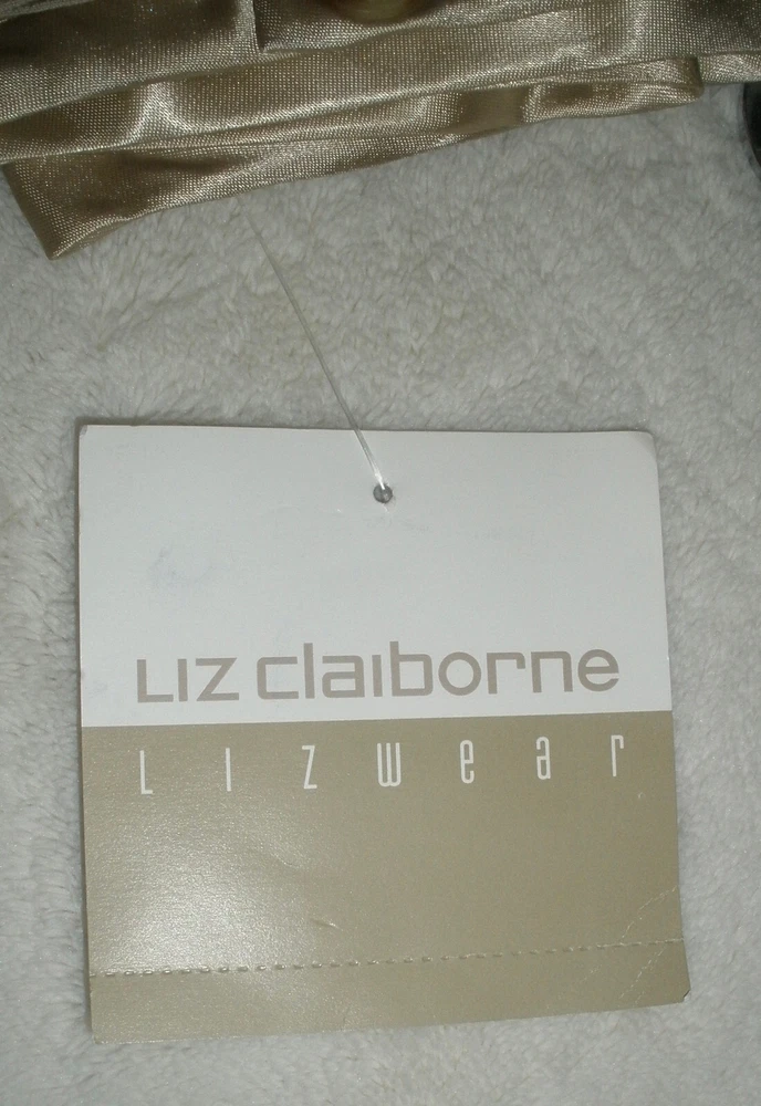 this is for Liz Claiborne Lizwear Skirt It is new with tags. It has no rips, tears or stains. IT is made of rayon The skirt is tan. It has an all over print. It has satin ribbon accent on the waistline. It has zipper down the back. IT is lightweight. Liz claiborne calls it Soft Allure. The waist measures laying flat 15" It measures down the back 22". It is a size 10 Manufacturers sizing's due vary please check measurements. If you have any questions or problems - before or after. Please message me.