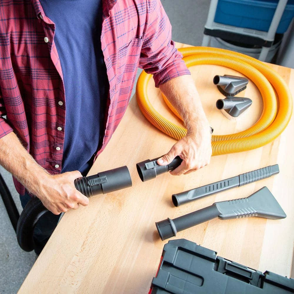 1-1/4 in. Premium Car Cleaning Kit Accessory Shop Vac Attachments for RIDGID Wet Dry Vacuums Wet dry vacuum car cleaning kit 7 convenient tools 10 ft. premium hose is 4X more durable than most shop vac hoses Adapter connects 1-1/4 in. accessories to a 2-1/2 in. hose The RIDGID Wet Dry Vac Premium Car Cleaning Kit is everything you need to keep the interior of your vehicle neat and tidy. This 7-piece auto detailing kit features a 10 ft. Premium Hose, Soft Bristle Brush, Stiff Bristle Brush, Flexible Crevice Tool, Claw Nozzle, Hose-to-Hose Connector and an adapter to connect 1-1/4 in. accessories to a 2-1/2 in. hose. In the box you ll find a flexible 10 ft. hose which is 4X more durable than a RIDGID standard hose, plus a connector to fit two hoses together for maximum reach. Also included are a soft bristle brush for easily removing dust and debris from dashboards and a stiff bristle brush for scrubbing spills off upholstery. Dirt ground into floor mats and carpet can be vacuumed up in an instant with the claw nozzle and the flexible crevice tool is great for sucking up debris from hard-to-reach spaces. For even further reach, consider adding the RIDGID 20-foot Tug-A-Long Universal wet dry Vac Hose (LA2522; sold separately) which has three-times the reach of standard wet dry vacs hoses. Appliance Category: Appliance Parts Brand Compatibility: RIDGID Brand/Model Compatibility: RIDGID Wet/Dry Shop Vacuums Included Accessories: No additional accessories included Model Compatibility: Fits RIDGID Vacuum Inlets Number of Pieces: 7 Pack Size: 1 Returnable: 90-Day Tools Product Type: Vacuum Wet/Dry Attachment & Accessory Type: Car Cleaning Kit Manufacturer Warranty: No Warranty Hose Diameter (in): 1.25 in Hose Length (ft.): 10 ft