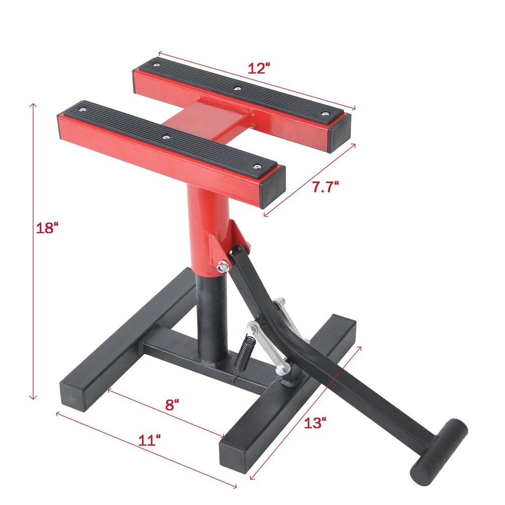 Description Specifications: Material:steel Adjustable height range: 11.5"-18" Size:11"(L)x 13"(W) x 18"(H) Maximum lifting weight:330 lbs Top plate size: 12"(L) x7.7"(W) Features: * Solid high-grade steel construction makes it not rock or twist.It fit for most Motorcycle. * You can lift and Lower the height by the lifting handle or feet.Adjustable from 11.5" to 18" * The motorcycle lift can lold up to 330 lbs,for motorcycle bikes with flat bottom. * Anti-slip rubber surface can prevent bike from slippage.It is easy to assemble according to the instructions. =========================================================== ****DOES NOT HAVE INSTRUCTION & MANUAL**** • Our products are professional auto tools. You should only purchase the tools if you are familiar with how to fix cars. • Proper use of the tools are important to prevent from any unnecessary injuries. • Heavy duty moulded storage case (may get dent or crack during shippping) Payment Payment must be received within 7 business days of auction closing. We ship to your eBay address. Please make sure your eBayl address is correct before you pay. Any special request cannot be accepted after 24 hours of payment, because most of orders will be processed instantly and same day dispatched. Shipping & Handling The items you ordered will be shipped out in 1-3 business day from Padstow , NSW,And you will receive it in about one week .It will be extended under special circumstances Return & Warranty If the item is defect when you receive it or you are not satisfied with it, please return it within 30 days for a replacement. But the items must be back in factory condition. Please contact us and double check the return address before you return it. If is item is defective in 1 months, you can return it to us. We will send you a new replacement after receiving the defective item. Feedback We maintain high standards of excellence and strive for 100% customer satisfaction! Feedback is very important to us. We request that you contact us immediately BEFORE you give us neutral or negative feedback, so that we can satisfactorily address your concerns. It is impossible to address issues if we do not know about them! About us We care about our valued buyers, if you have any questions, our Customer Service staffs will be very glad to help you. We try our best to reply to your emails as soon as possible, however, due to high volume of daily incoming emails and time zone difference, we may not be able to reply your emails immediately. Please allow 24 business hours for us to response.