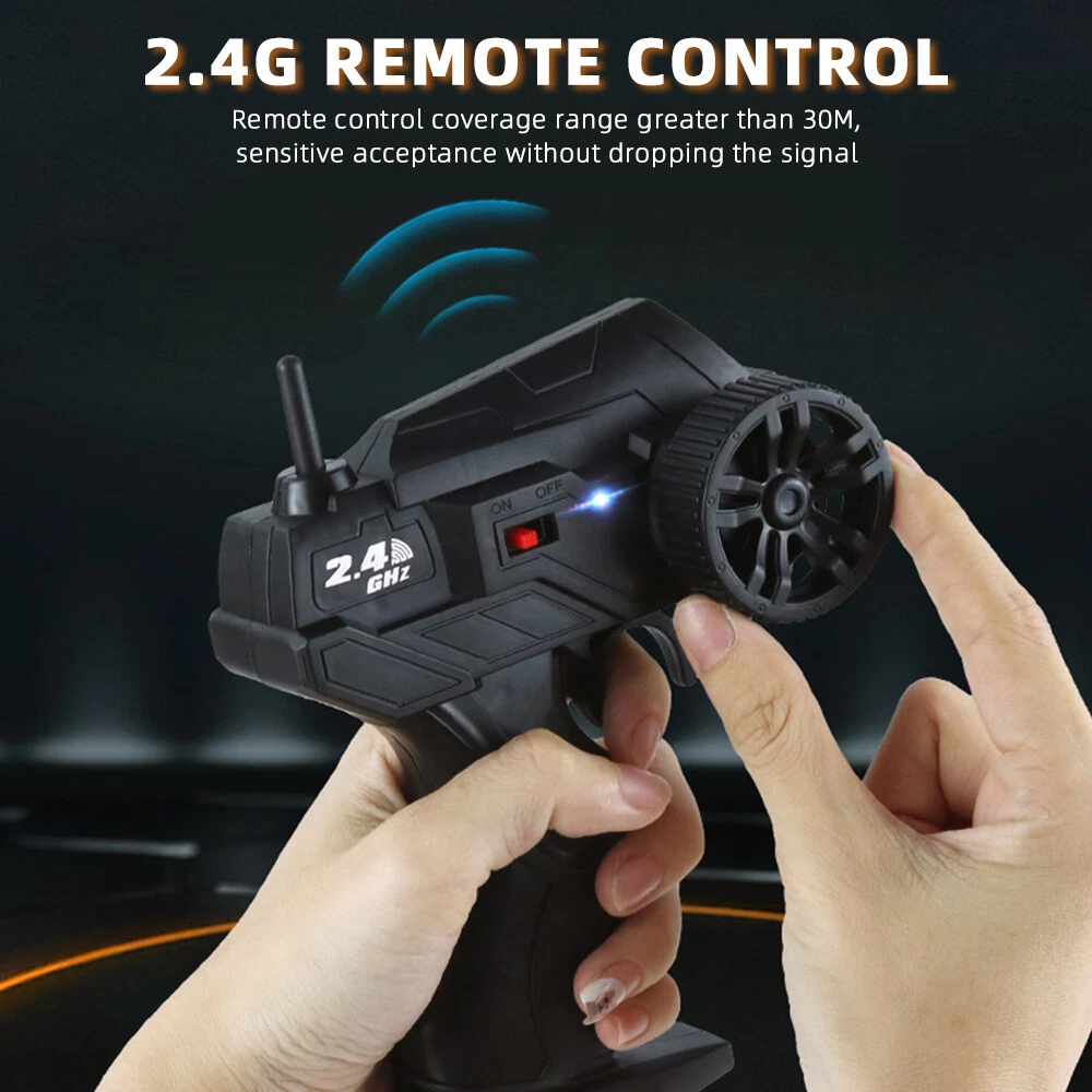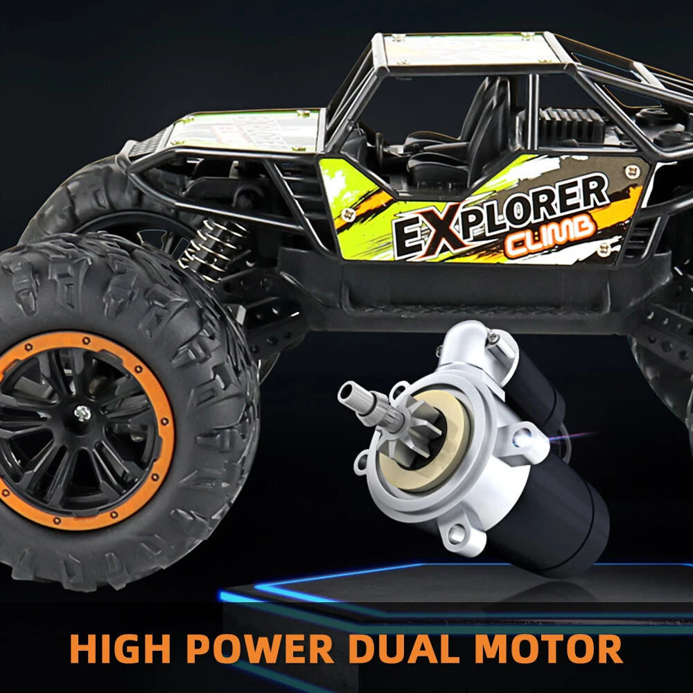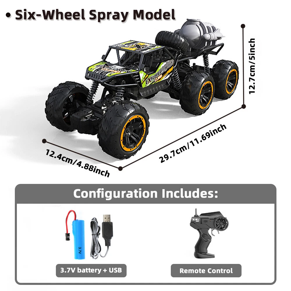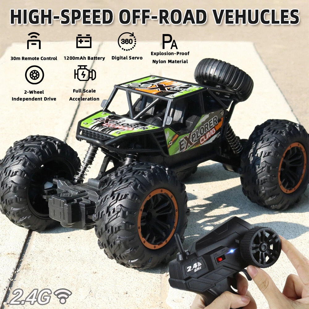 About this item Powered with superb and fast brushed RC 380 motor in unceasingly efficient drivetrain , this 4WD rc trucks Rampage speeds topping to 36 KPH, which finds operators in marvelous enjoyment. All is fulfilled in hobby class design with classic ball bearings, solid gear diff., independent suspension. This rc monster truck is durable, speedy, funny and yet affordable, which is advisable to be toys gifts for boys and adults. 2.4GHz full-function proportional radio control system suffices a stable control range within 280 feet. Reliable transmission forward, brake and reverse would never fail. Splash waterproof electronic components make a all-terrain vehicle out of this truck. No worries to run this remote control cars on grassland , sands, and bumpy grounds. Flexible and solid PVC truck body, high grip knobby off-road tires, and equipped with two long-time service 7.4V Li-Po battery packs, and one qualified USB charger, our remote control truck comes in 99% Ready-To-Run version. Specifications: Product size (cm): 22.5*14*12.5cm Body battery: 3.7V 5A 500 mA lithium battery Remote control batteries: 5AA batteries * 2 (not included) Charging time: about 60 minutes Working time: about 25 minutes or so Remote control distance: 40 meters Body ratio: 1:18 Product list : 1x remote c ontrol car 1x handle remote control 1x USB charging cable 1x 3.7V battery