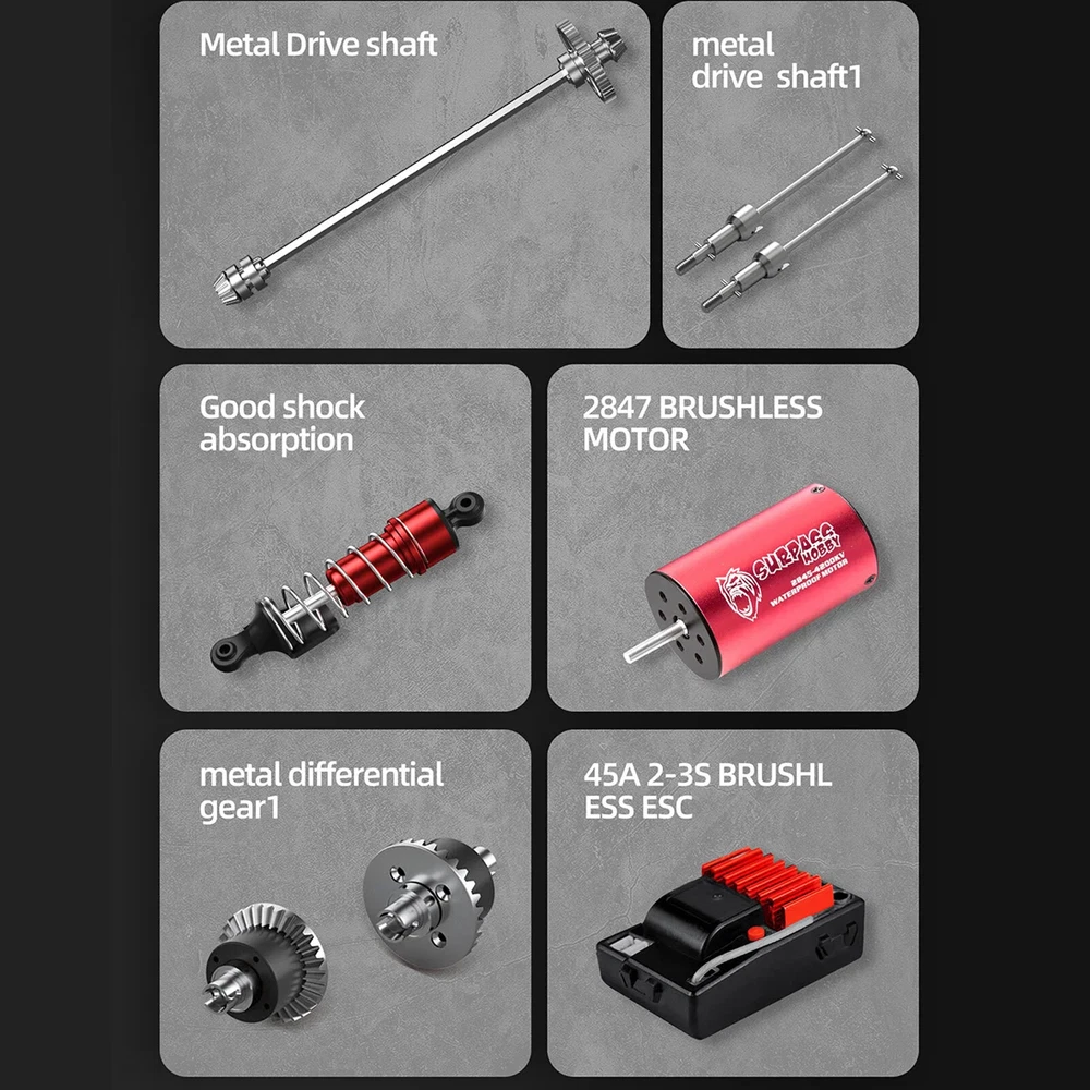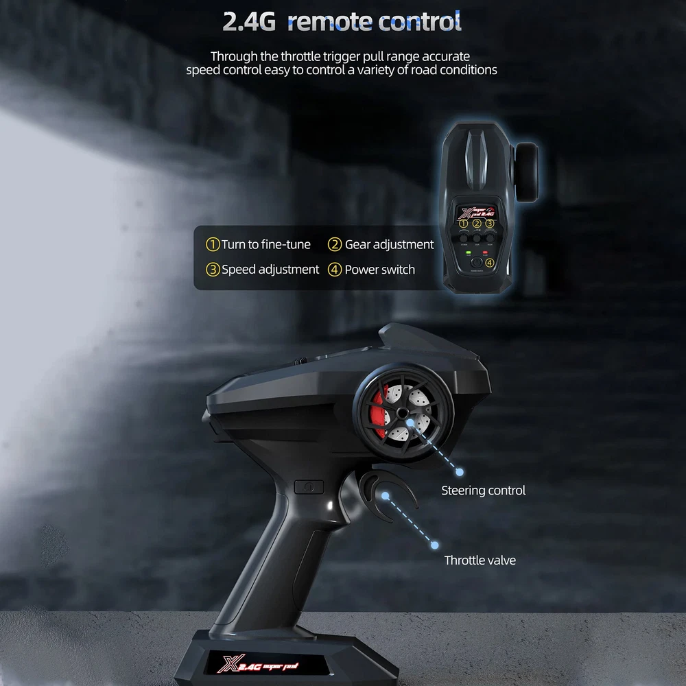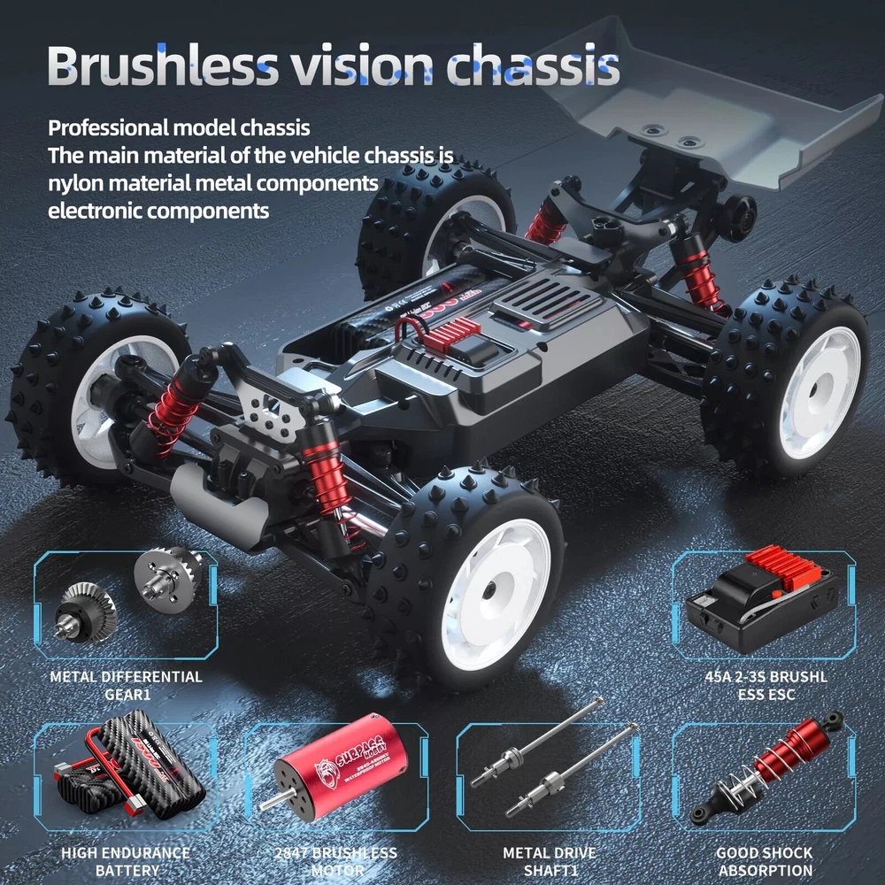 1:16 4WD RC Car Remote Control High Speed 70KM/H Brushless Monster Truck for Kid Description: Product name: Purple (with brushed) Driving speed: 40KM/h Product size: 29.5 * 20.5 * 12cm Color box size: 30 * 15 * 26.5cm Battery life: about 20 minutes Product battery: 7.4V 1100mAh Packing quantity: 6pcs Outer box size: 55 * 32 * 47cm Main functions: 1. Adopting simulation structure design, it has a real car handling feeling, achieving full proportional continuously variable transmission, high-speed driving, rapid acceleration, deceleration, braking, reverse, left turn, right turn; 2. Applicable sites: flat, sandy, muddy, grassland. 3. Four wheel drive: front and rear upright spring shock absorption, double wishbone independent suspension system; 4. 2.4G full proportion synchronous remote control system Full proportional throttle/steering; 5. Powder driving gear, powder main gear, metal front and rear code avoidance (butterfly frame), metal front bumper 6. Five line 17G digital servo; 7. 7.4V, 18650-1300mAh Li ion battery (T-plug), discharge rate 15C; Optional 7.4v 1100mAh soft pack lithium battery 8. New remote control panel function: rudder adjustment;; 9. Metal transmission shaft; 10. The car shell adopts high toughness explosion-proof PVC car shell 11. Equipped with head up wheels; Off road sharp tires with strong grip; Product Name: Green (with Brushless) Driving speed: 70KM/h Product size: 29.5 * 20.5 * 12cm Color box size: 30 * 15 * 26.5cm Battery life: about 20 minutes Product battery: 7.4V 5100mah Packing quantity: 6pcs Outer box size: 55 * 32 * 47cm Main functions: 1. Adopting simulation structure design, it has a real car handling feeling, achieving full proportional continuously variable transmission, high-speed driving, rapid acceleration, deceleration, braking, reverse, left turn, right turn; 2. Applicable sites: flat, sandy, muddy, grassland. 3. Four wheel drive: front and rear upright spring shock absorption, double wishbone independent suspension system; 4. 2.4G full proportion synchronous remote control system Full proportional throttle/steering; 5. Powder planetary gear, powder driving gear, powder main gear; Metal front and rear code avoidance (butterfly frame), metal front bumper 6. Three wire 17G digital servo, 2847 brushless motor; 7. 7.4V, 18650-1500mAh Li ion battery (T-plug), discharge rate 15C; 8. New remote control panel function: rudder adjustment;; 9. Metal front and rear differential, metal transmission dog bone, metal middle transmission shaft; 10. The car shell is made of high toughness and explosion-proof PVC. Please Note: Communication is the best way to solve the problem.Your satisfaction is our top priority. We appreciate your positive feedback! We have always been committed to providing the best service and reliable products to every customer. However, accidents may occur at times, and we understand your concerns and setbacks. Please contact us to resolve the issue before leaving negative feedback. We will reply to you as soon as possible. If there is no response within 24 hours, please check the email in your email. Our goal is to provide first-class customer service, so we usually do our best to solve any problems! (Note: Weekend Information Will Be Replied on the Next Working Day)