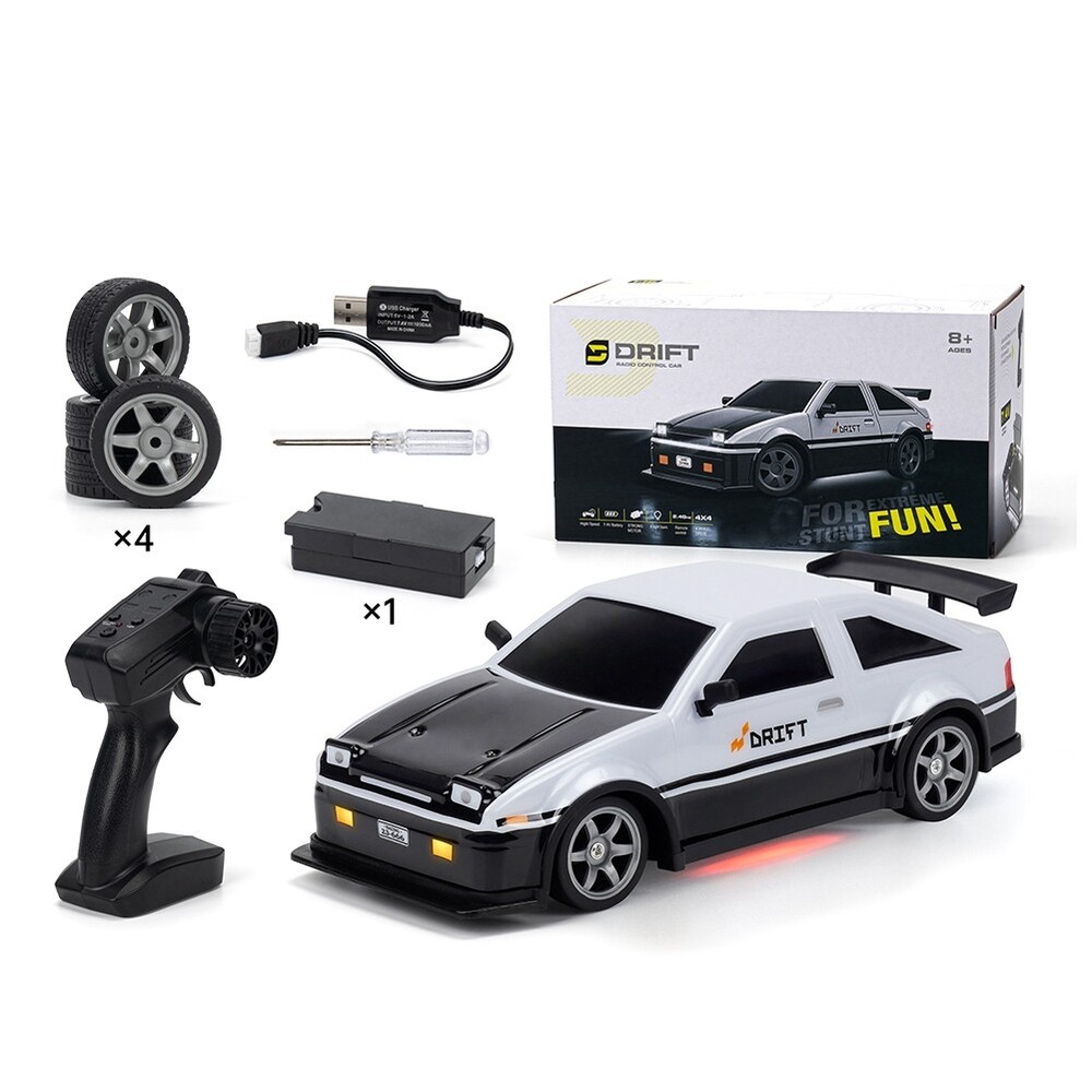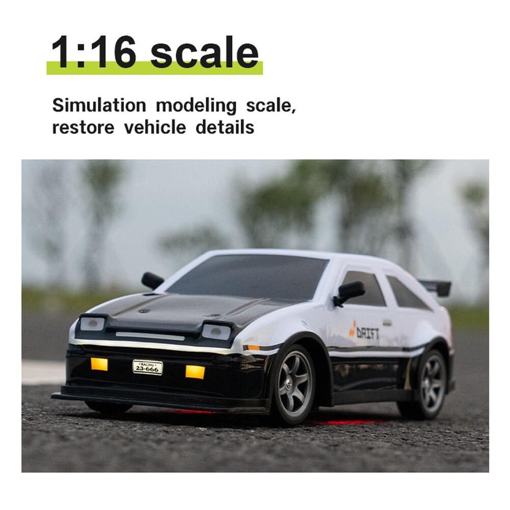1:16 RC Drift Car, 25KM/H 2.4G 4WD High Speed RC Cars for Kids, with LED6790 [High Speed RC Drift Car] 1:16 scale, This large size gives you a better control feeling, the maximum speed reaches 25KM/H, with 2.4G remote control, you can play with multiple cars without interfering with each other. [4WD and Full-Scale Throttle] Has a four-wheel drive system that distributes power rationally during the form, with more torque for smoother drifting. At the same time, it has a stepless governor (full ratio throttle), which makes the acceleration more linear and real like driving. [Long Time Use and Safe] With 7.4V 500MAH batteries that can last a total of 40 minutes. And it is modular design, easy to install. The batteries are protected by a hard case, crash and . [LED Light and Two Kinds of Tires] Equipped with headlights, taillights and underbody lights, it looks better and can be played at night. Equipped with two kinds of car tires (one drift wheel and one normal wheel), you can choose according to different terrain. [Two Speed Adjustments] You can adjust the high speed and low speed gear by remote control. Colour:White Material:PVC+Metal Size:280x140x85mm Package Contents: 1 * Remote control car 1 * Batteries (one in the car) 1 * Remote control (2xAA batteries, Not included batteries) 1 * USB charging cable 4 * Extra tires 1 * Screwdriver 1 * Instructions in Chinese and English Only the above package content, other products are not included. Note: Light reflection and different displays may cause the color of the item in the picture a little different from the real thing. The measurement allowed error is +/- 1-3cm.