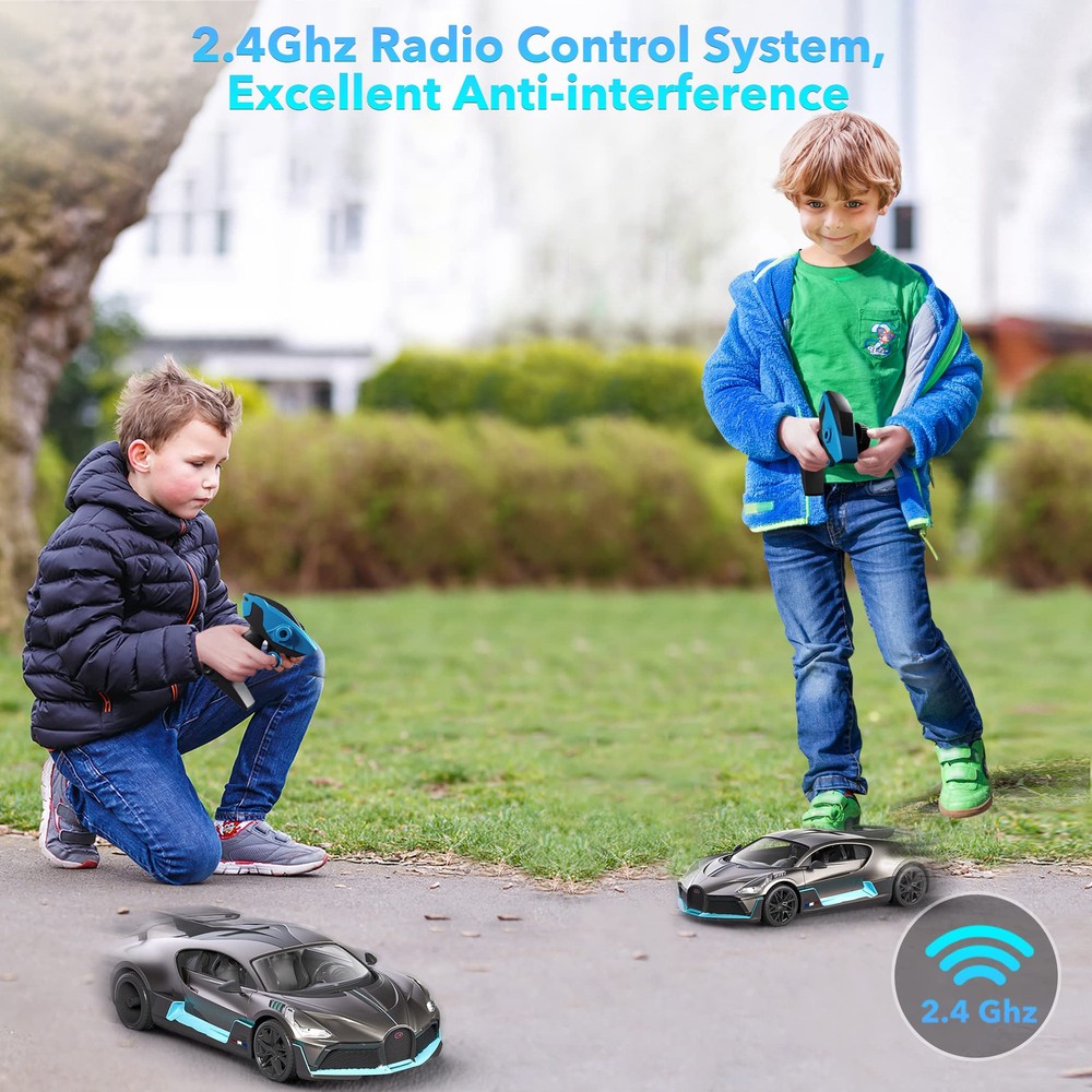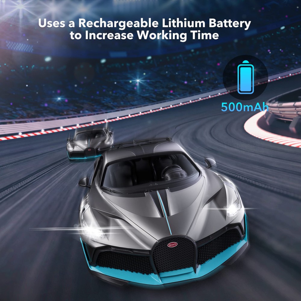 Easy to Control: We designed this Bugatti remote control car having in mind nothing but the desire to help get a glimpse of the real driving experience with this supercar. Unlike other similar rc cars, our toy car allows you to control the speed and the proportional throttle by pulling the trigger, exactly like the original car. Powerful controller: 2.4 GHz radio control system, with a built-in anti-jamming function. Many drivers can race together with no interference, so you can enjoy the fun of racing with your friends. We designed the detachable steering ring for right and left-handed drivers so that you can have the perfect operating experience controlling the Bugatti RC cars. High-Performance Rc Cars: The remote control toy car replicates to a scale of 1/16 the beautiful design of the original supercar. Our remote control car has a speed of 12km/h and it incorporates a rechargeable 7.4V 500mAh battery that delivers 40 minutes of intense driving. Proportional Steering System: There is a white wheel alignment adjuster at the bottom of the remote toy cars. Through manual adjustment, you can align the wheels correctly, so that you can better control the direction of the remote control car when racing with friends; in addition, the car can be adjusted within 200 feet from the controller. A Must for Every Car Fan: Everyone would love to drive a super-fast, expensive car and make every jaw drop when passing by. Our remote control car is a genuine Bugatti Divo replica, designed to offer you a very close to reality experience and make you feel like a professional race car driver.
